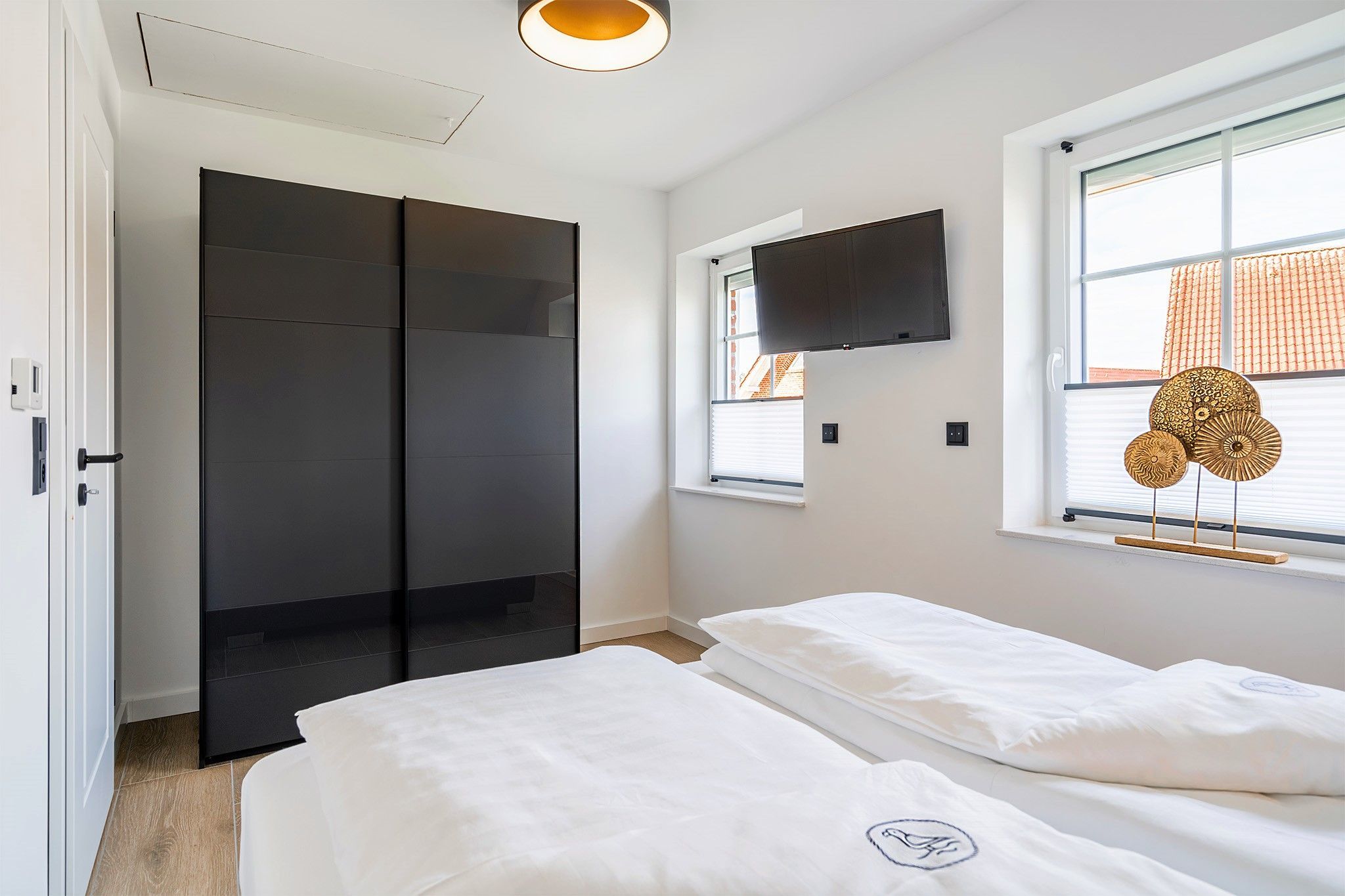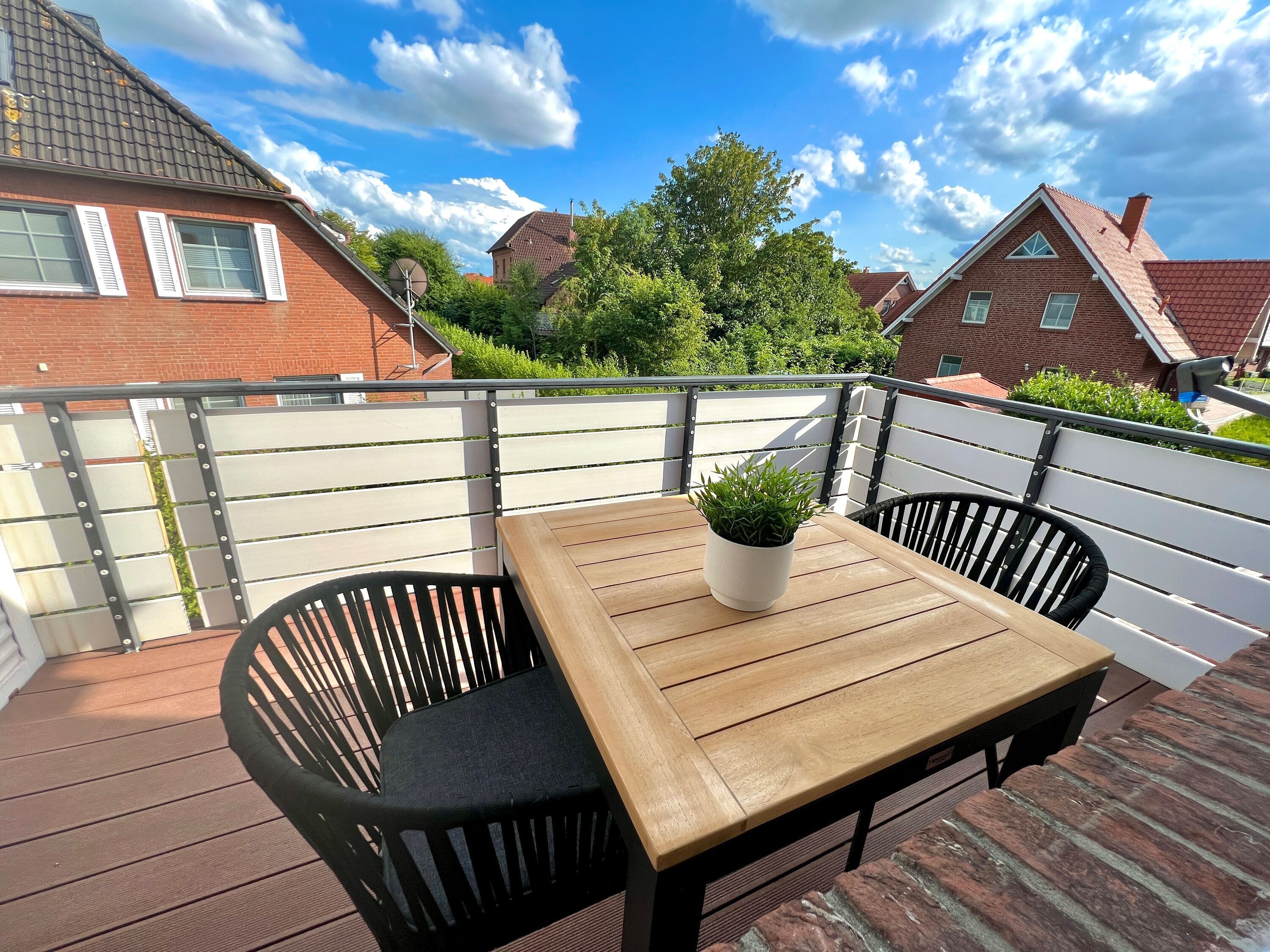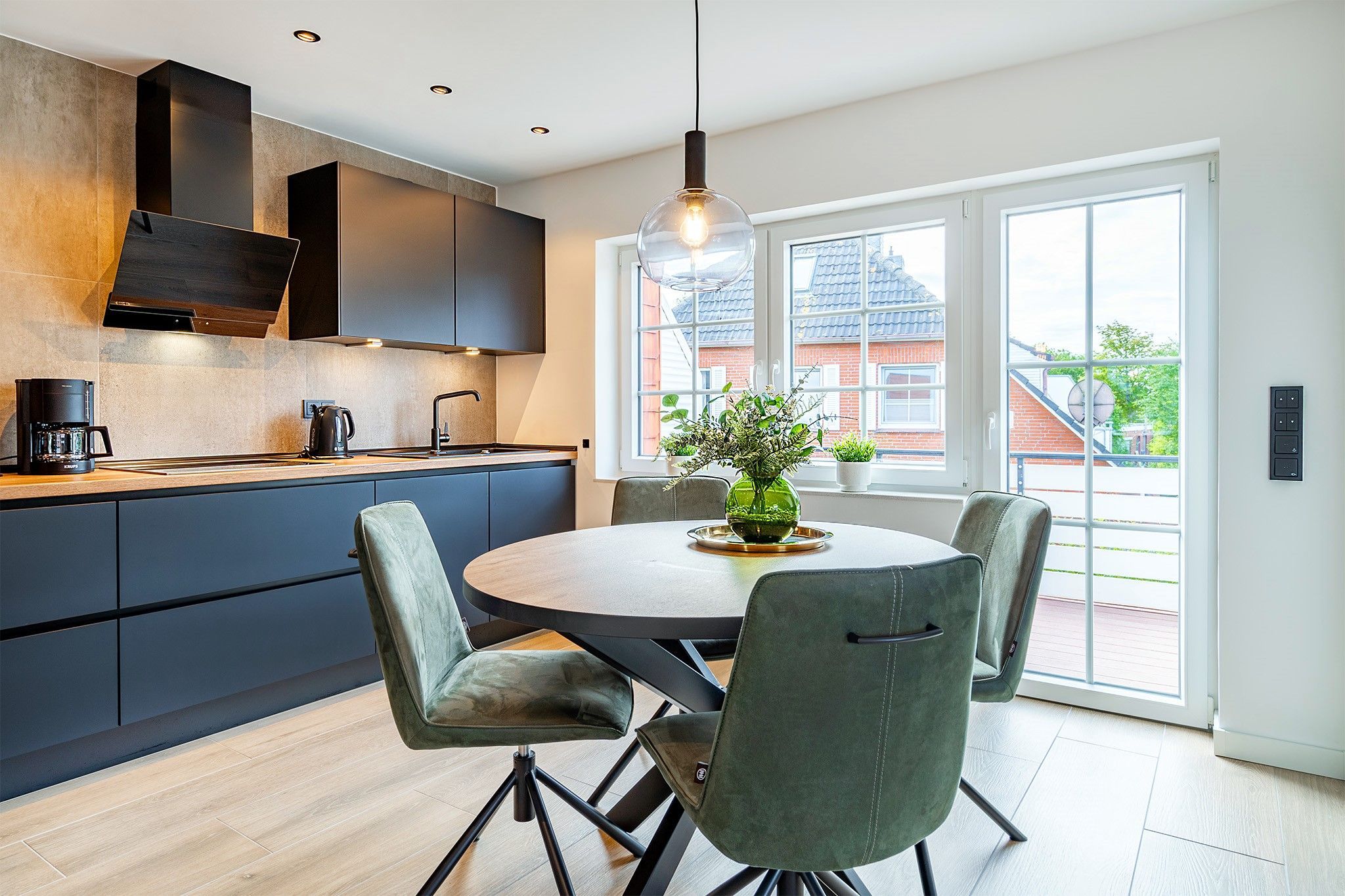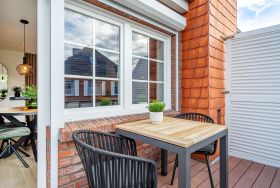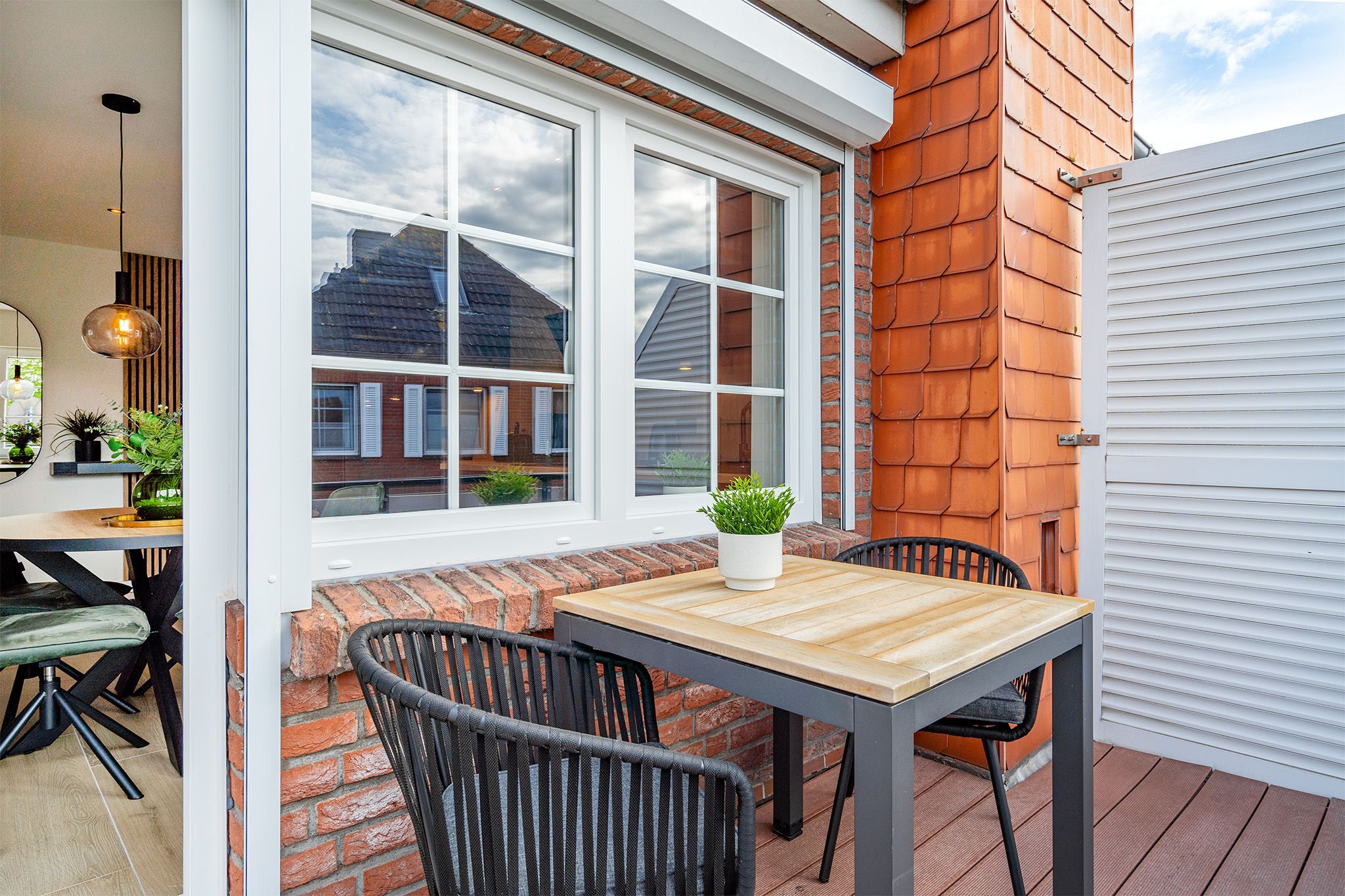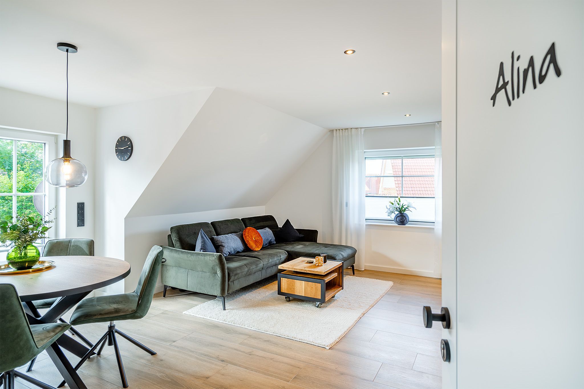 Unsere Ferienwohnung Alina liegt in einem beliebten und traditionellen Ferienhausgebiet von Greetsiel und erstrahlt nach einer aufwändigen und umfangreichen Renovierung in neuem Glanz. Die moderne und äußerst hochwertige Einrichtung im lichtdurchfluteten und großzügigen Wohn-Ess-Bereich wird Ihnen sicher ebenso gefallen wie das Schlafzimmer mit seinem gemütlichen Boxspringbett. Neben einem geräumigen Tageslicht-Bad verfügt die Wohnung auch über einen Abstellraum. Sie liegt im Obergeschoss des Hauses mit vier Wohneinheiten und verfügt somit über einen großen Balkon, der mit Balkonmöbeln ausgestattet ist. Selbstverständlich steht Ihnen auch ein eigener Parkplatz am Haus zur Verfügung.