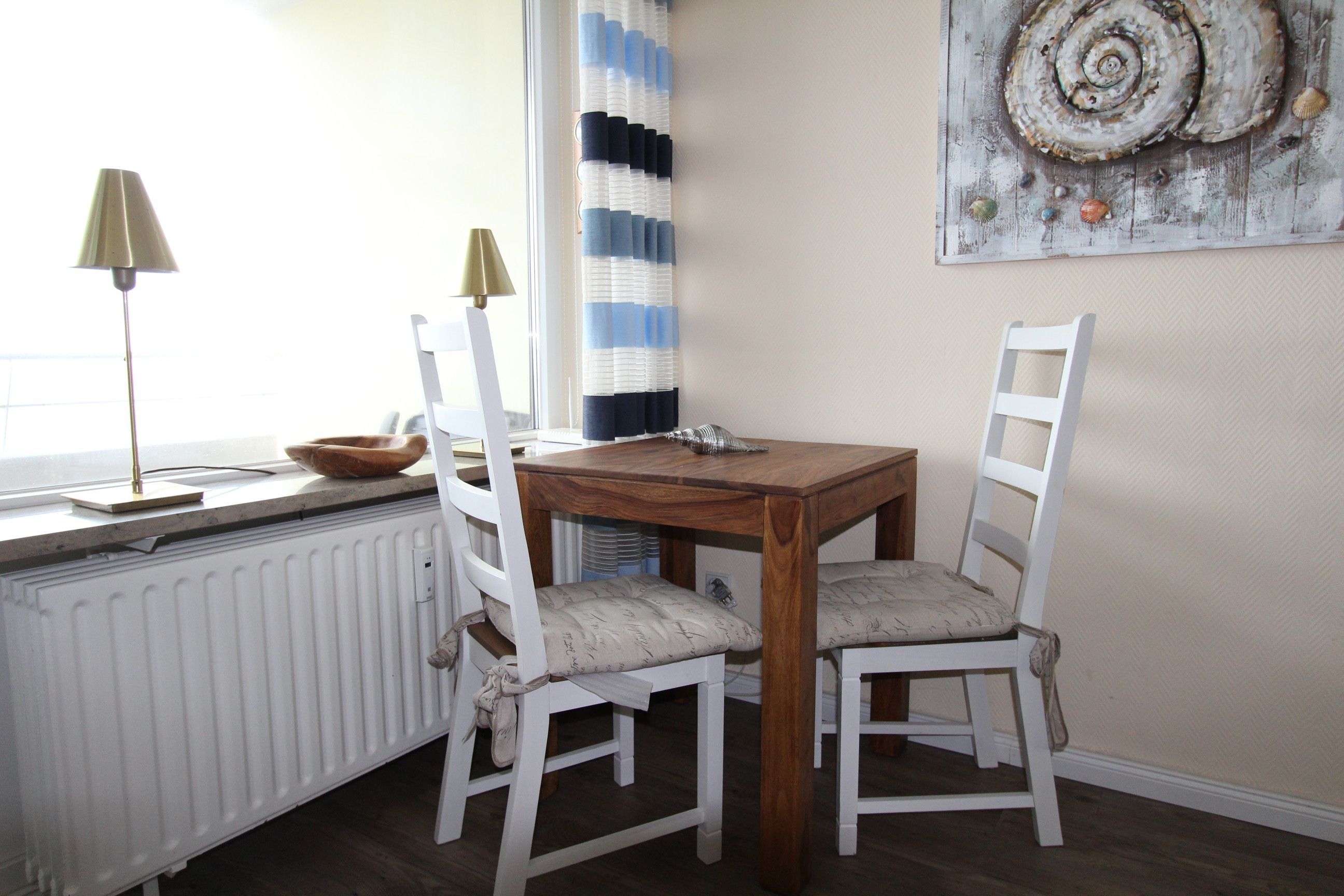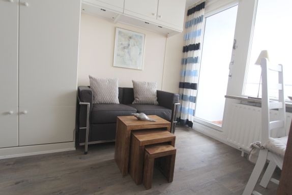 Kleine, aber sehr feine Einzimmerwohnung in der 6. Etage im Haus Metropol mit herrlichem Blick über den Strand und die Nordsee. Wohn-/Schlafraum mit vorgelagertem Westbalkon und Balkonmöbeln. In dieser Wohlfühloase stehen ihnen Einzelschrankbetten, eine Couch sowie ein Essplatz mit 2 Stühlen an Fenster zur Verfügung. Der Designfussboden in Holzoptik ist nicht nur hygienisch, sondern bietet auch Vorteile für Hausstauballergiker. Das Badezimmer verfügt über eine Dusche und einen Fön. In der Einbauküche im Flur mit Mikrowelle, Ceranfeld und zusätzlicher Senseo Kaffeepad Maschine können sie sich selbst verpflegen. Zur technischen Ausstattung gehört: ein moderner Flachbildfernseher, ein Blueray Player und ein Radio mit CD Spieler. Der WLAN Hotspot (WEG Haus Metropol - Passwortfrei - ohne Gewähr) steht ihnen kostenfrei zur Verfügung. Die Größe dieser Nichtraucherwohnung beträgt ca. 25 m².