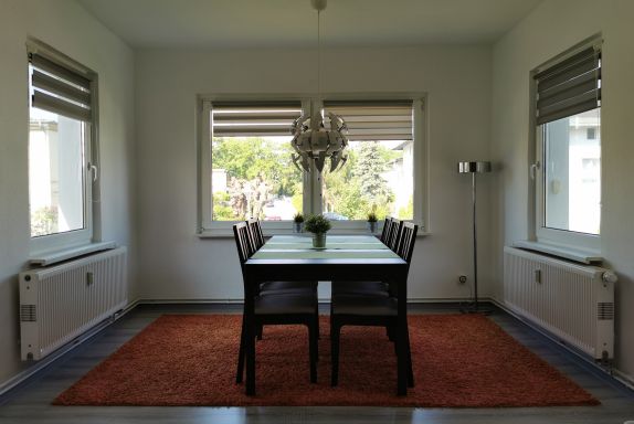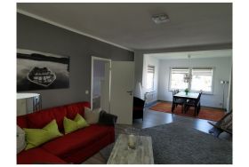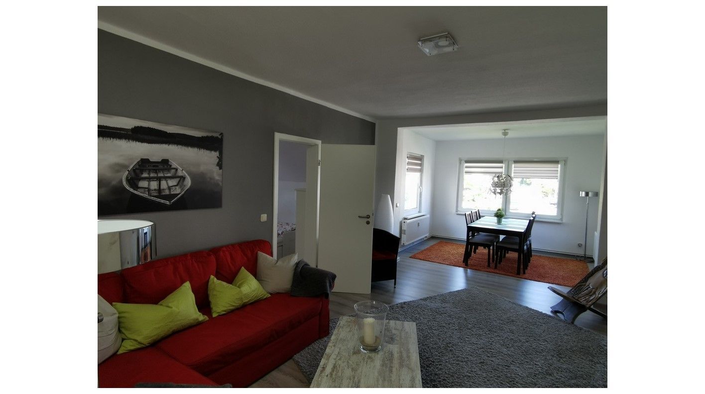 Die Ferienwohnung besitzt ein komfortables Schlafzimmer mit einem Doppelbett und zwei weitere Schlafzimmer mit je einem Einzelbett (einmal 0.90mx2.00m und einmal 1.40mx2.00m). Der großzügige und moderne Wohn- und Essraum ist mit einem Fernseher ausgestattet, so können Sie sich gut in der Wohnung entspannen. WLAN ist verfügbar. Die Küche besitzt sie einen Kühlschrank mit Tiefkühlfach, einen Geschirrspüler, einen Elektroherd sowie einen Wasserkocher und eine Kaffeemaschine. Im Bad befindet sich eine Dusche. Im Außenbereich bietet ein großer Garten viel nutzbaren Platz um das schöne Wetter zu genießen. Ein PKW-Parkplatz ist selbstverständlich vorhanden.