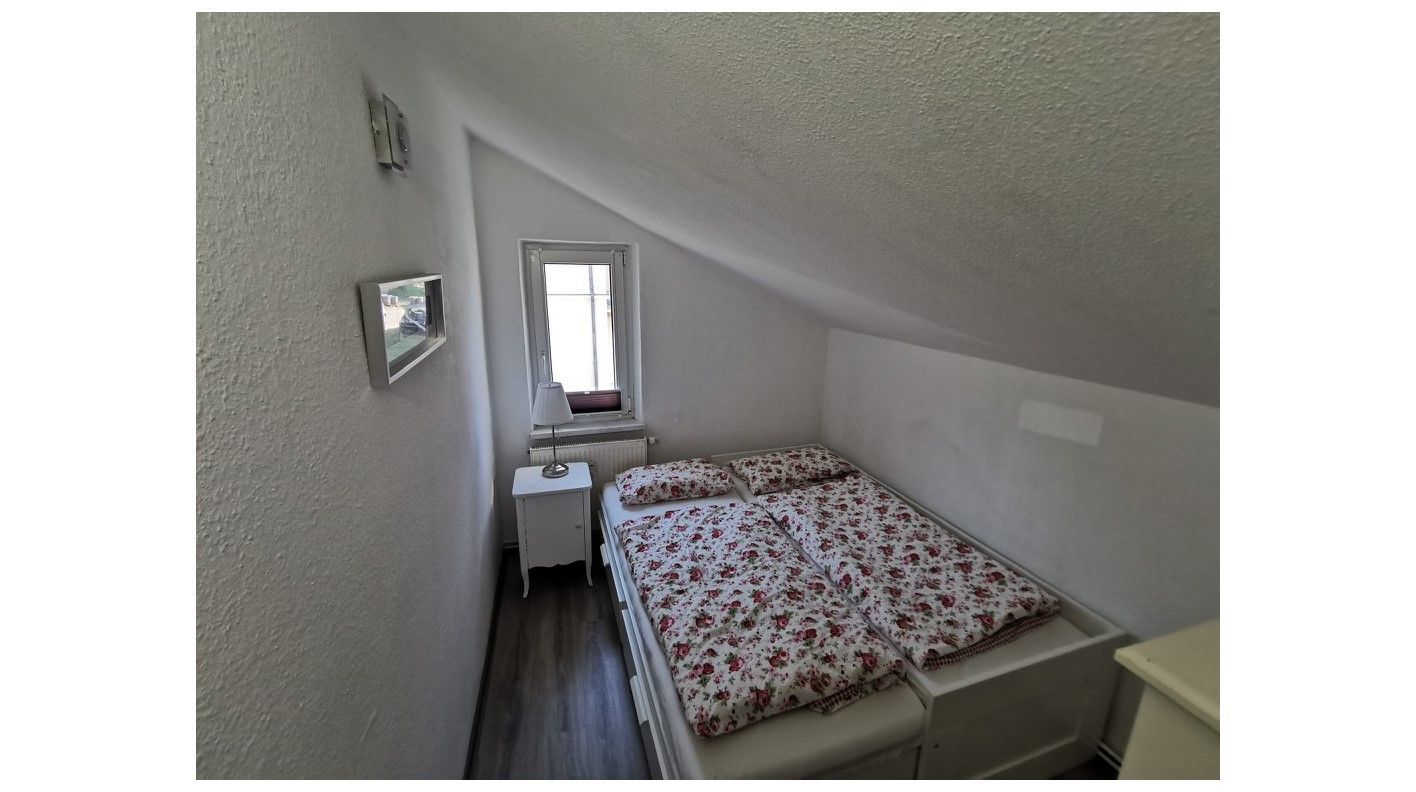 Im Obergeschoß des Hauses befindet sich die Wohnung Storchenest. Hier finden bis zu 5 Personen ihren Platz. Auf 80 m² befinden sich drei Schlafzimmer, ein Wohnzimmer, eine Küche und ein Bad mit Dusche.