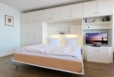 Einzimmerwohnung in der 8. Etage im Haus Metropol mit herrlichem Blick über den Strand und das Meer. Der kombinierte Wohn-/Schlafraum mit vorgelagertem Westbalkon (inkl. Loungemöbeln) verfügt über ein Doppelschrankbett, einen Essplatz am Fenster mit 3 Stühlen sowie ein bequemes, großes Sofa und einen Fernsehsessel. Laminatboden wurde in der ganzen Wohnung verlegt. Das Badezimmer mit Dusche hat einen beheizten Handtuchtrockner und vor allem viel Stauraum und Abstellfläche für ihre persönlichen Dinge. In der separaten Küche mit Geschirrspüler, Cerankochfeld, Mikrowelle und Backofen können sie sich selbst verpflegen. Zur technischen Ausstattung dieser Nichtraucherwohnung gehört: ein Flachbildfernseher, eine Sony Bluetoothanlage mit CD Player. Ein freies WLAN Netzwerk (WEG Haus Metropol - Passwortfrei - ohne Gewähr) steht ihnen kostenfrei zur Verfügung. Wohnungsgröße: ca. 42 m².