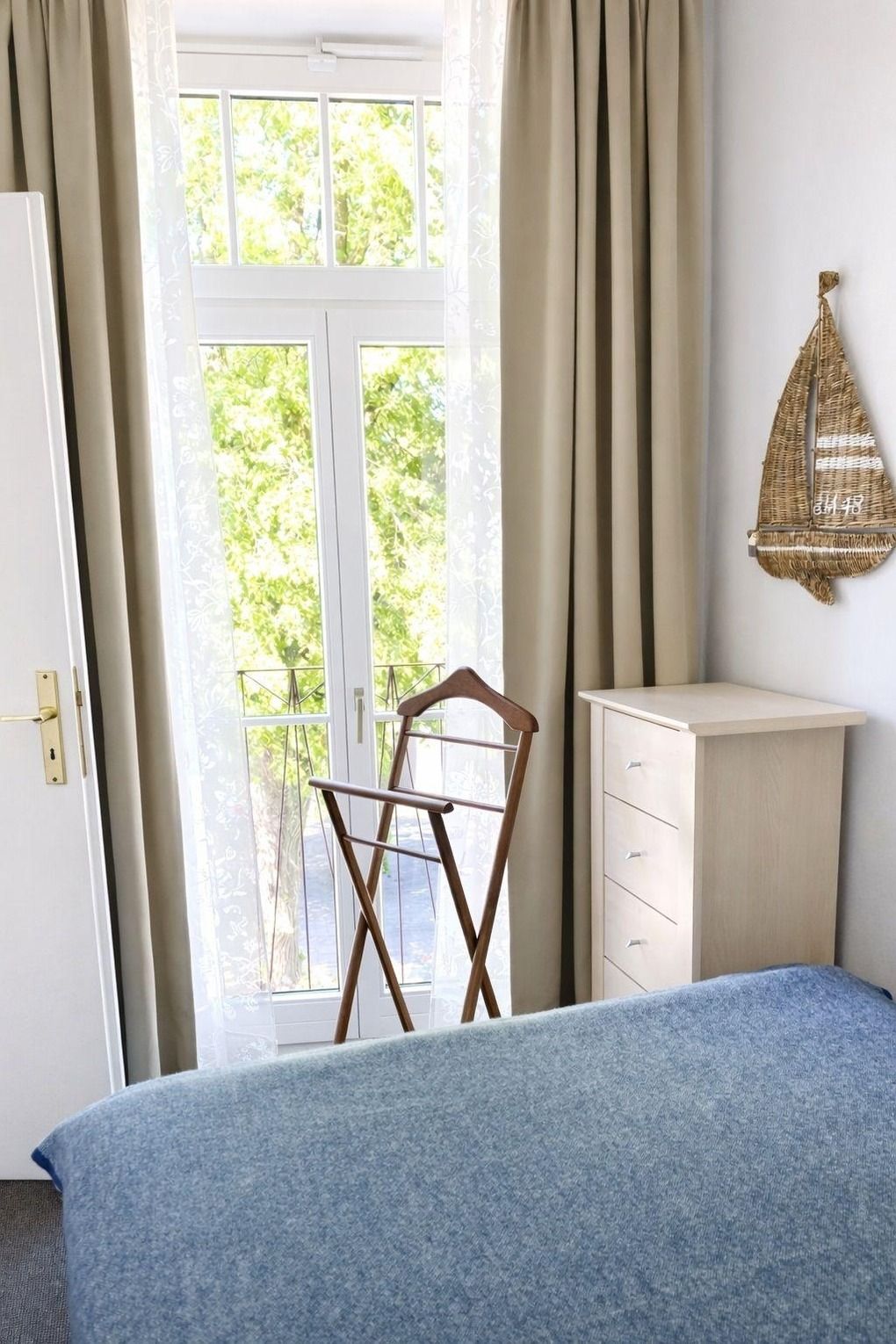 Es steht ein kleines, aber sehr schönes zweites Schlafzimmer zur Verfügung mit bequemem 1,40 x 2,00 m-Bett und bodentiefem Fenster. Ideal für Paare, die ein separates Schlafzimmer wünschen.