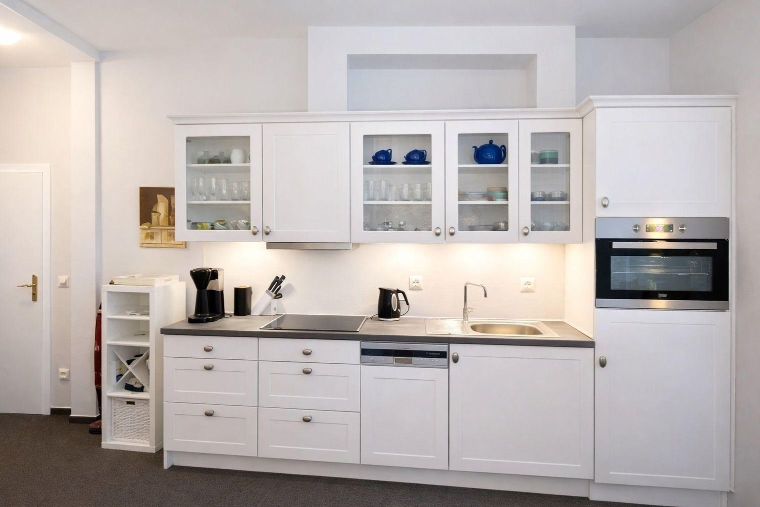 Die moderne Einbauküche im Landhausstil ist voll ausgestattet. Hier müssen Sie für die Zubereitung Ihrer Mahlzeiten auf nichts verzichten.