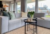 Über eine Wendeltreppe ist das Untergeschoss zu erreichen, das über bodentiefe Fenster und große begehbare Lichtschächte verfügt, sodass für ausreichend Tageslicht gesorgt ist. Hier befinden sich Schlafzimmer 2 mit einem Boxspringbett (180x200) und Schlafzimmer 3 mit einem Einzelbett (120x200). Die Fenster sind mit Vorhängen versehen, um die Räume abzudunkeln. Zwischen den Schlafräumen ist ein weiteres Bad untergebracht, ausgestattet mit einer kleinen bodenebenen Dusche, kleinem Waschbecken, WC, Handtuchtrockner und Fenster. Die notwendige Hebeanlage für dieses Bad ist im Erdreich unter dem Schlafzimmer 2 verbaut. Bei vollständiger Füllung, ist ein kurzes Abpumpgeräusch wahrnehmbar.