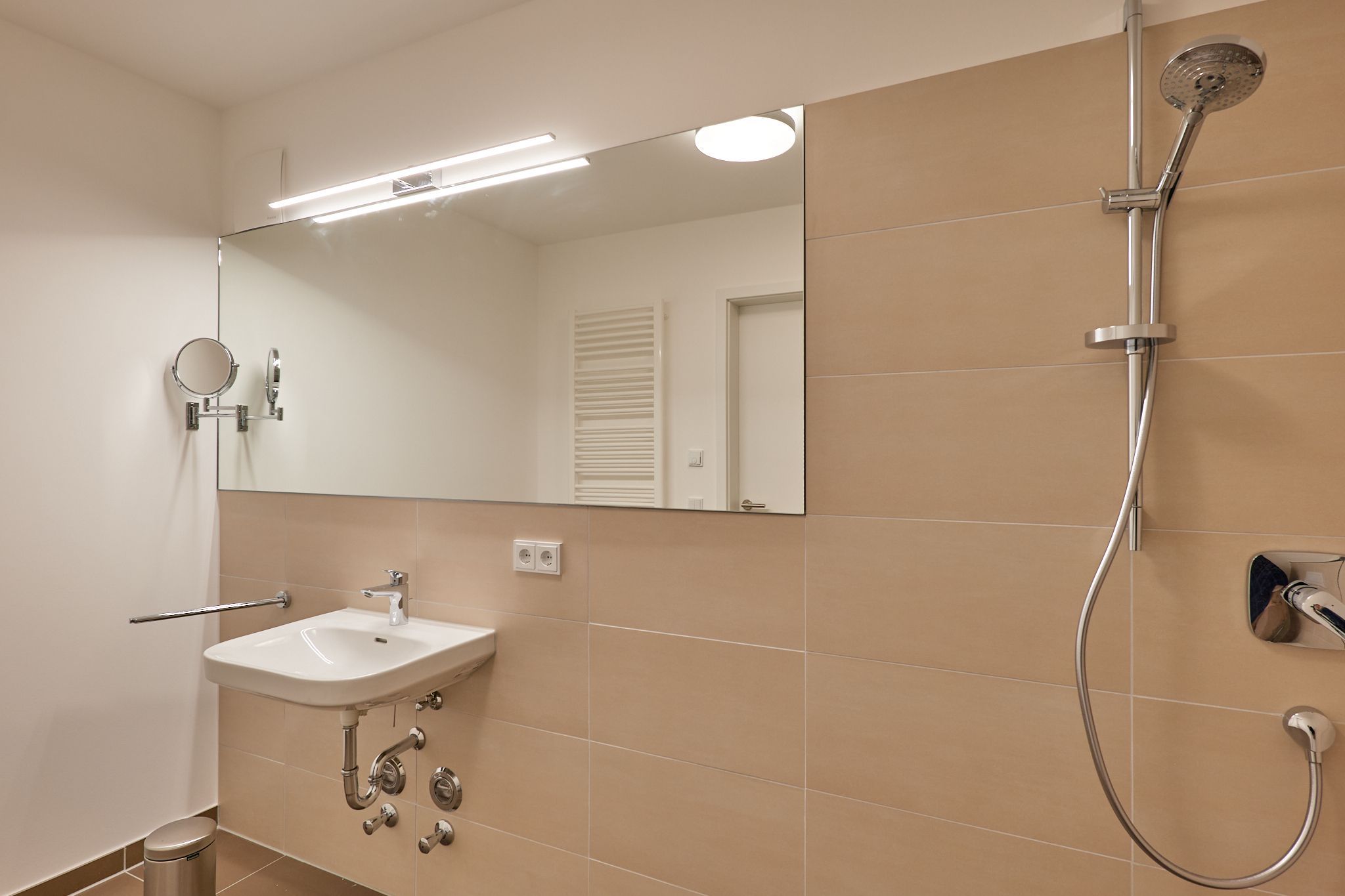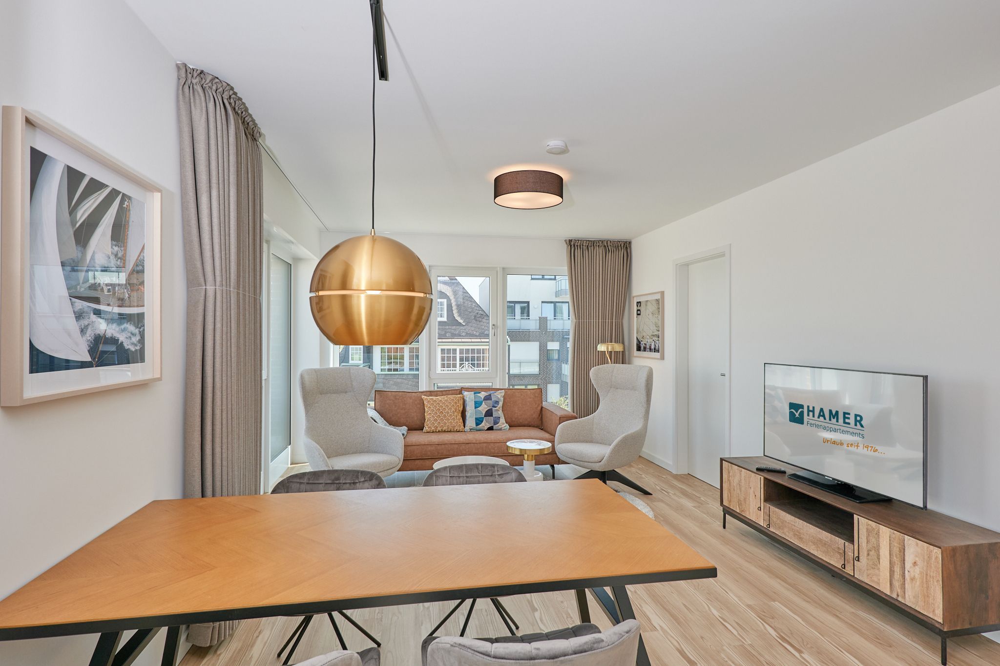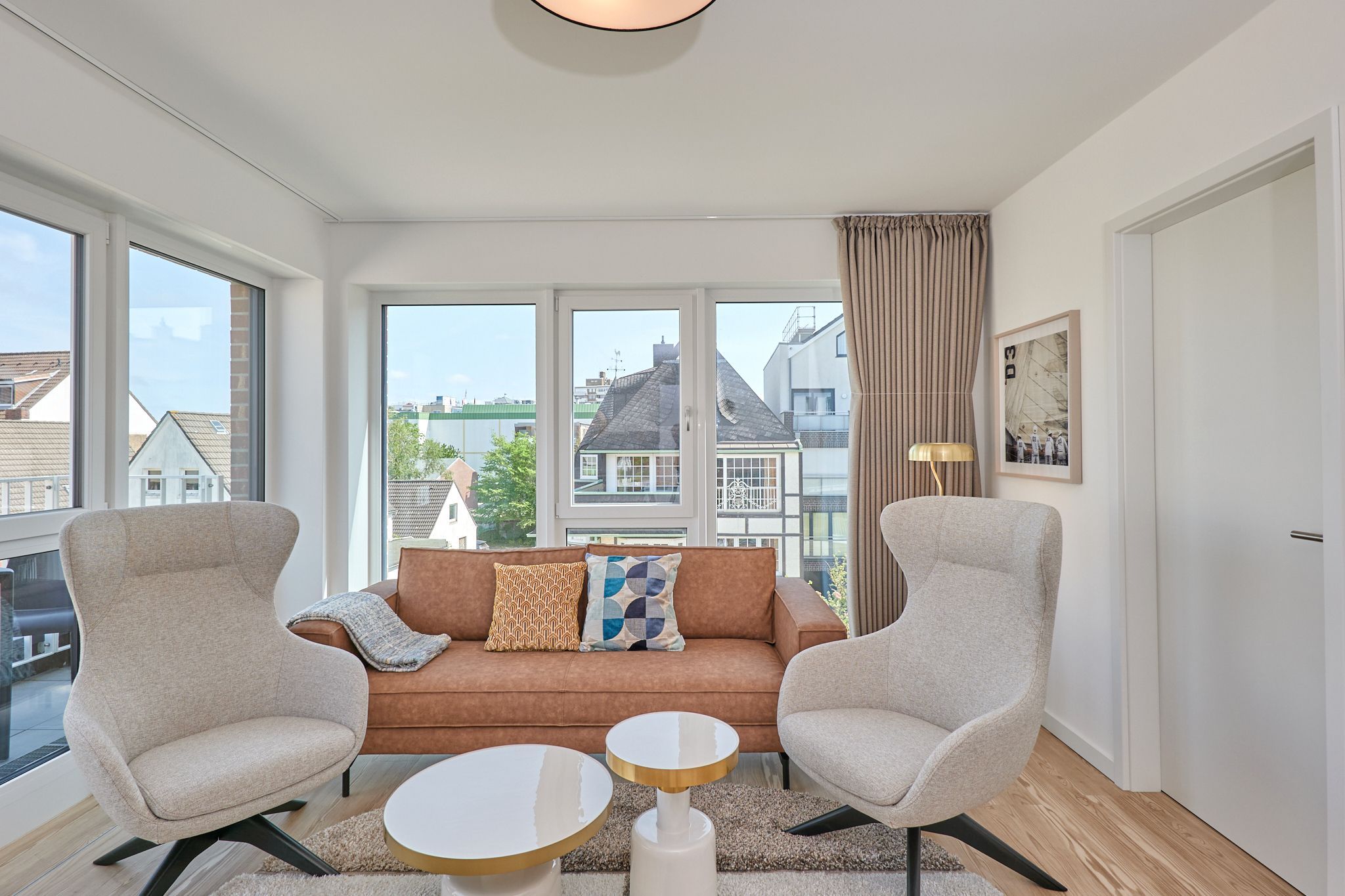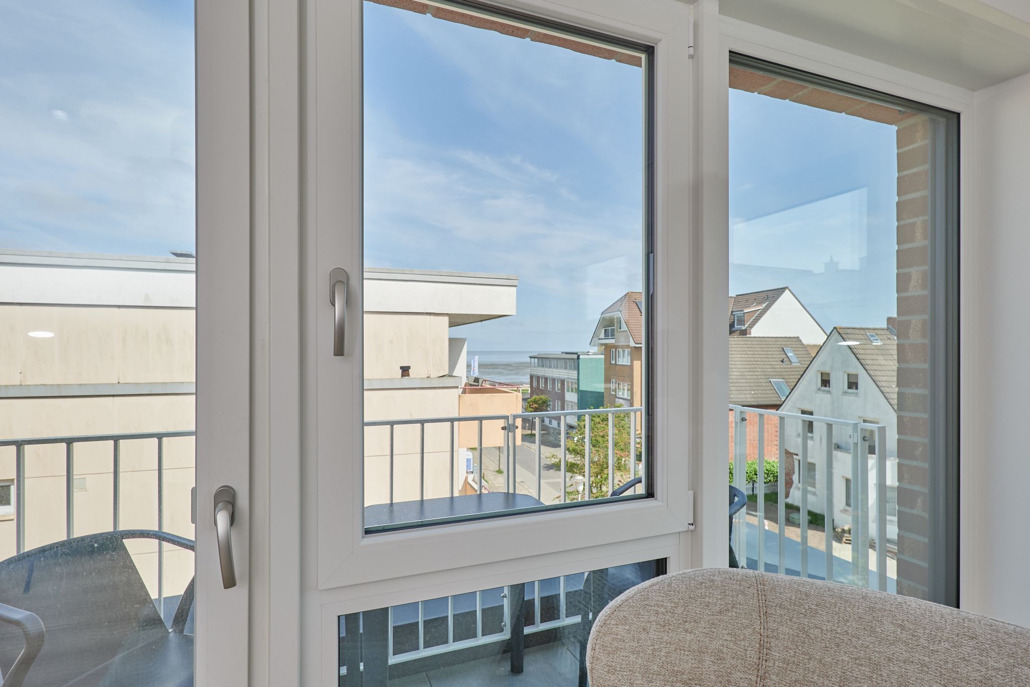 Neubau Mai 2023! Sehr schöne, moderne 3-Raum-Wohnung bis 4 Pers. voll ausgestattet auf ca. 80 m² in der 3.Etage gelegen, 2 Schlafzimmer (1x Doppelbett, 1x 2 Einzelbetten) und Außenjalousien an allen Fenstern, ebenerdige Dusche/WC, Wohnzimmer mit großer Küchenzeile (Backofen, Geschirrspüler, Mikrowelle) u. Teilseesicht, 2x Kabel-TV, Radio, kostenfreies W-LAN-Internet, kleiner Balkon (nord) mit Teilseesicht, Personenaufzug, reservierter Pkw-Stellplatz in der Tiefgarage inkl., es sind keine Haustiere erlaubt und natürlich Nichtraucher. Durchfahrtshöhe Tiefgarage: 2,05m.