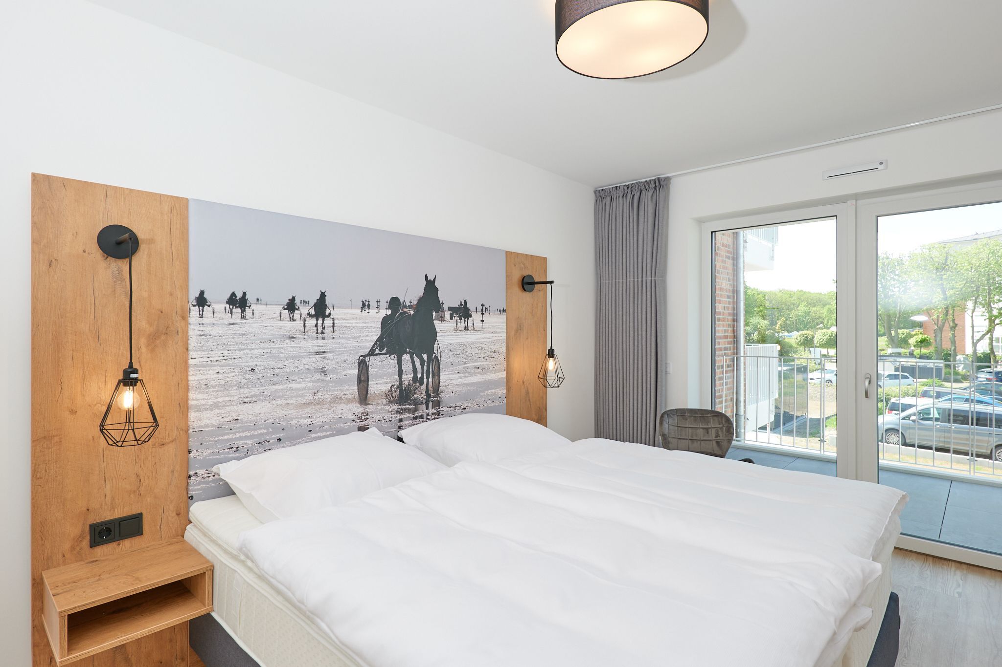Neubau Mai 2023! Sehr schöne, moderne 3-Raum-Wohnung bis 4 Pers. voll ausgestattet auf ca. 99 m² in der 2.Etage gelegen, 2 Schlafzimmer mit komfortablen Doppelbetten (Bettwäsche inkl.) und Außenjalousien an allen Fenstern, ebenerdige Dusche/WC, Wohnzimmer mit großer Küchenzeile (Backofen, Geschirrspüler, Mikrowelle), 3x Kabel-TV, Radio, kostenfreies W-LAN-Internet, großer Balkon (west) mit Teilseesicht, Personenaufzug, reservierter Pkw-Stellplatz in der Tiefgarage inkl., es sind keine Haustiere erlaubt und natürlich Nichtraucher. Durchfahrtshöhe Tiefgarage: 2,05m.