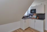 Neubau Mai 2023! Sehr schöne, moderne 2-Raum-Wohnung bis 2 Pers. voll ausgestattet auf ca. 49 m² in der 3.Etage gelegen, 1 Schlafzimmer mit komfortablen Doppelbett (Bettwäsche inkl.) und Außenjalousien an allen Fenstern (Veluxfenster mit Rollo innen), ebenerdige Dusche/WC, Wohnzimmer mit Küchenzeile (2 Platten, Mikrowelle/Backkombi, Geschirrspüler) 2x Kabel-TV, Radio, kostenfreies W-LAN-Internet, großer Balkon mit Teilseesicht (nord/west), beide Zimmer mit Dachschrägen, Personenaufzug, die Wohnung ist barrierefrei erreichbar, reservierter Pkw-Stellplatz in der Tiefgarage inkl., es sind keine Haustiere erlaubt und natürlich Nichtraucher. Durchfahrtshöhe Tiefgarage: 2,05m.