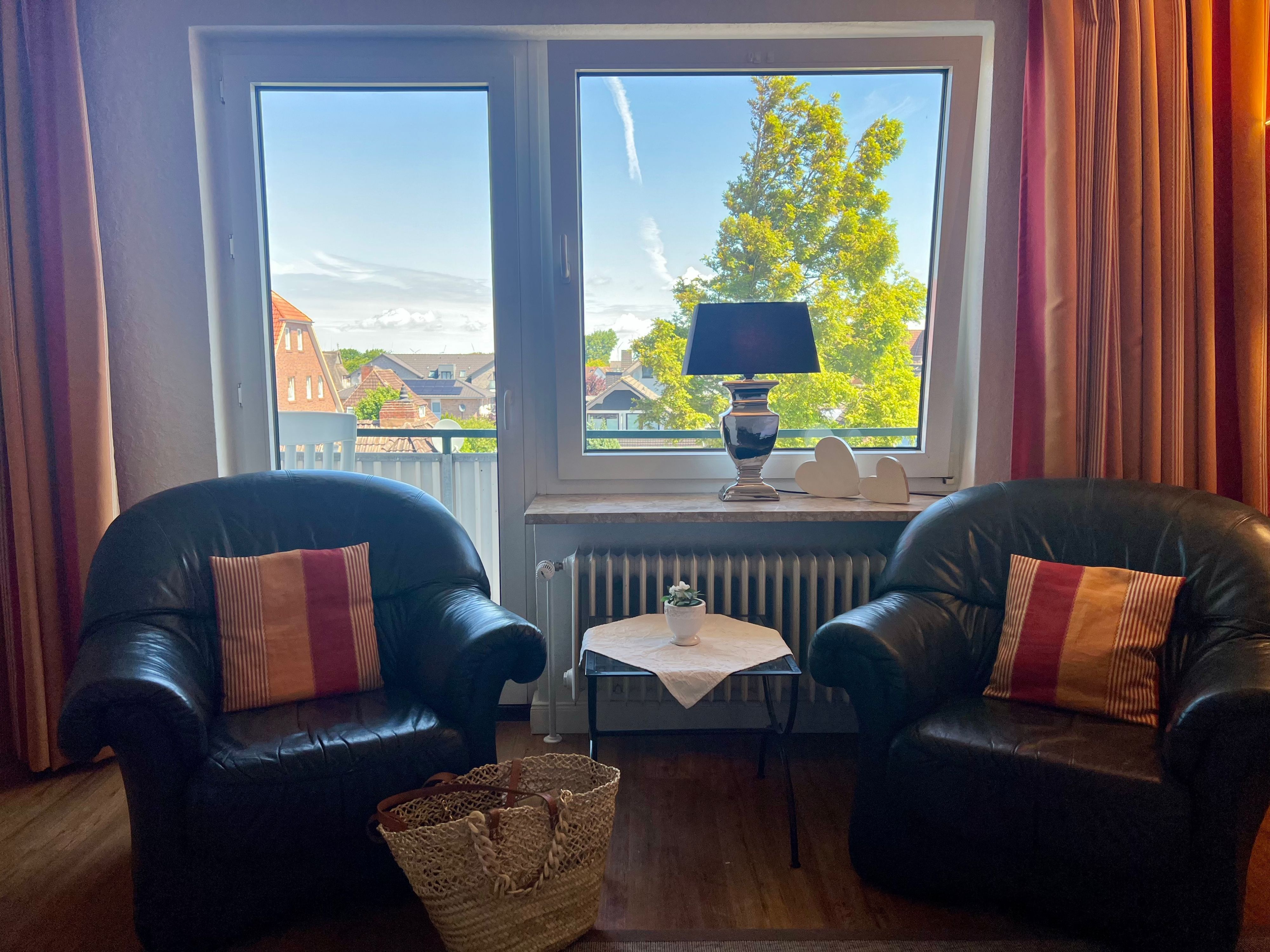 • Kombinierter Wohn-Schlafraum mit gemütlichen Sesseln, Eßtisch mit Stühlen, Flachbild-SAT-TV, Stereoanlage. Doppelbett.