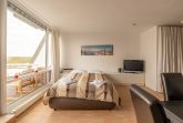 Die 46qm große Ferienwohnung liegt im dritten Stock der Appartement-Anlage Fliegender Holländer. Sie verfügt über einen 12qm großen Balkon (mit Markise) in südwestlicher Lage, so dass Sie auch abends die Sonne in vollen Zügen im Strandkorb oder auf den 2 Stühlen mit Tisch genießen können. Der Wohnbereich ist mit einem Parkettfußboden ausgelegt und geschmackvoll eingerichtet. Es steht Ihnen ein Ecksofa als Sitzgelegenheit zur Verfügung, welches zusätzlich für eine dritte Person zur Schlafcouch umgebaut werden kann. Das Bett hat die Maße 140 x 200. Das Appartement verfügt über einen Fernseher (mit Kabel-TV) und ein Radio.