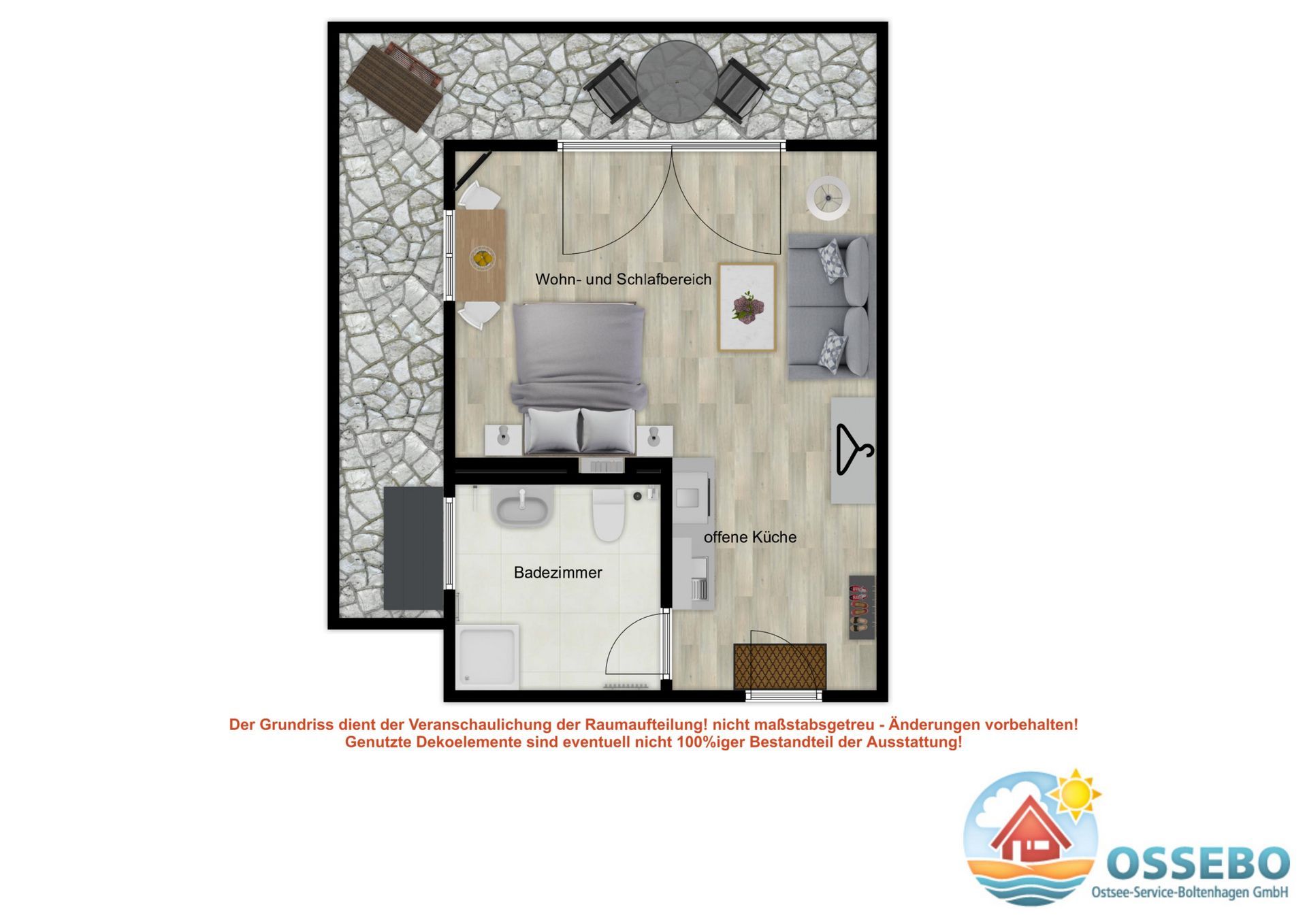 Die liebevoll eingerichtete 1-Zimmer-Wohnung befindet sich im 2.Obergeschoss und bietet Ihnen auf etwa 35qm Wohnfläche eine tolle Aufenthaltsmöglichkeit für Ihren Ostseeurlaub zu Zweit.