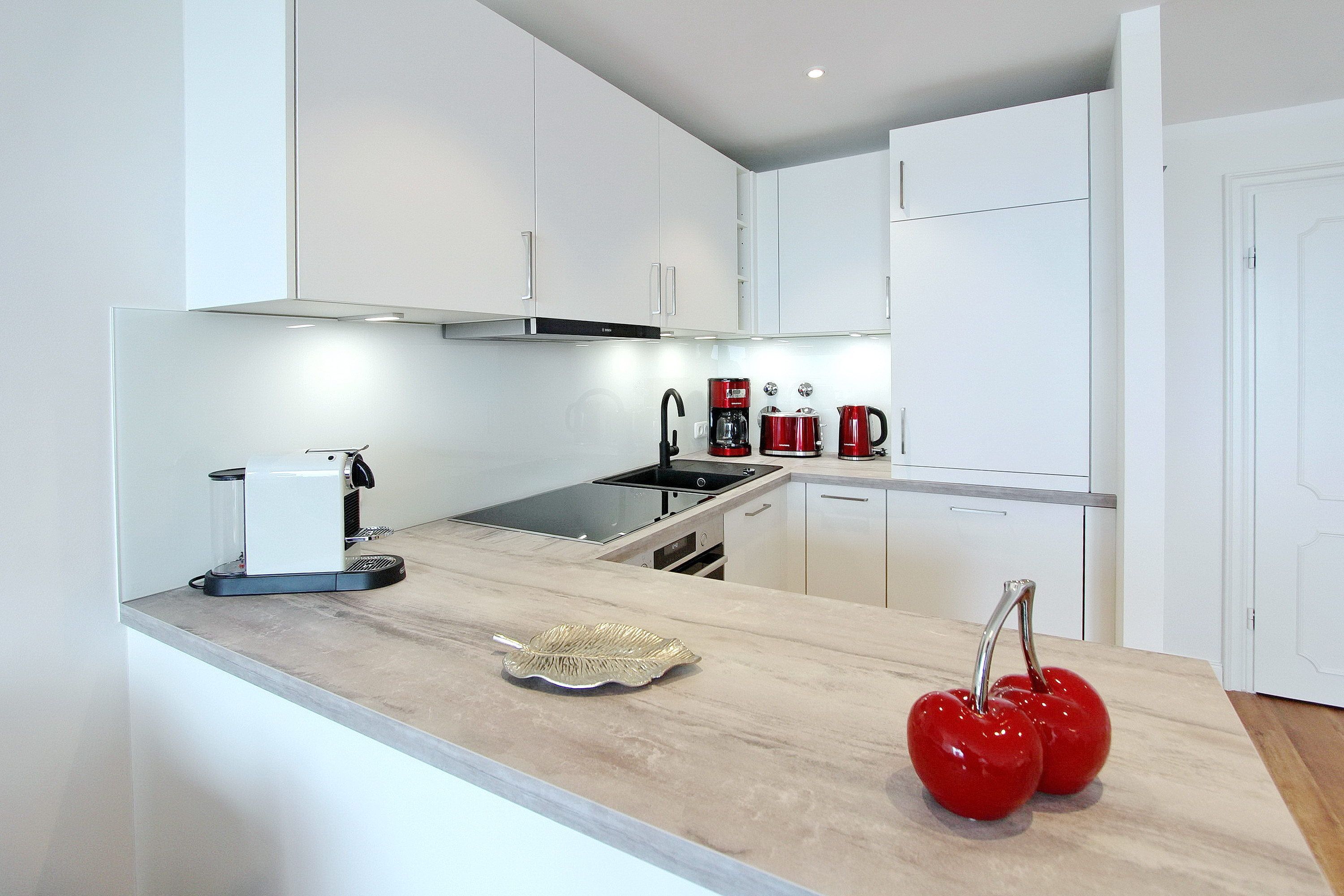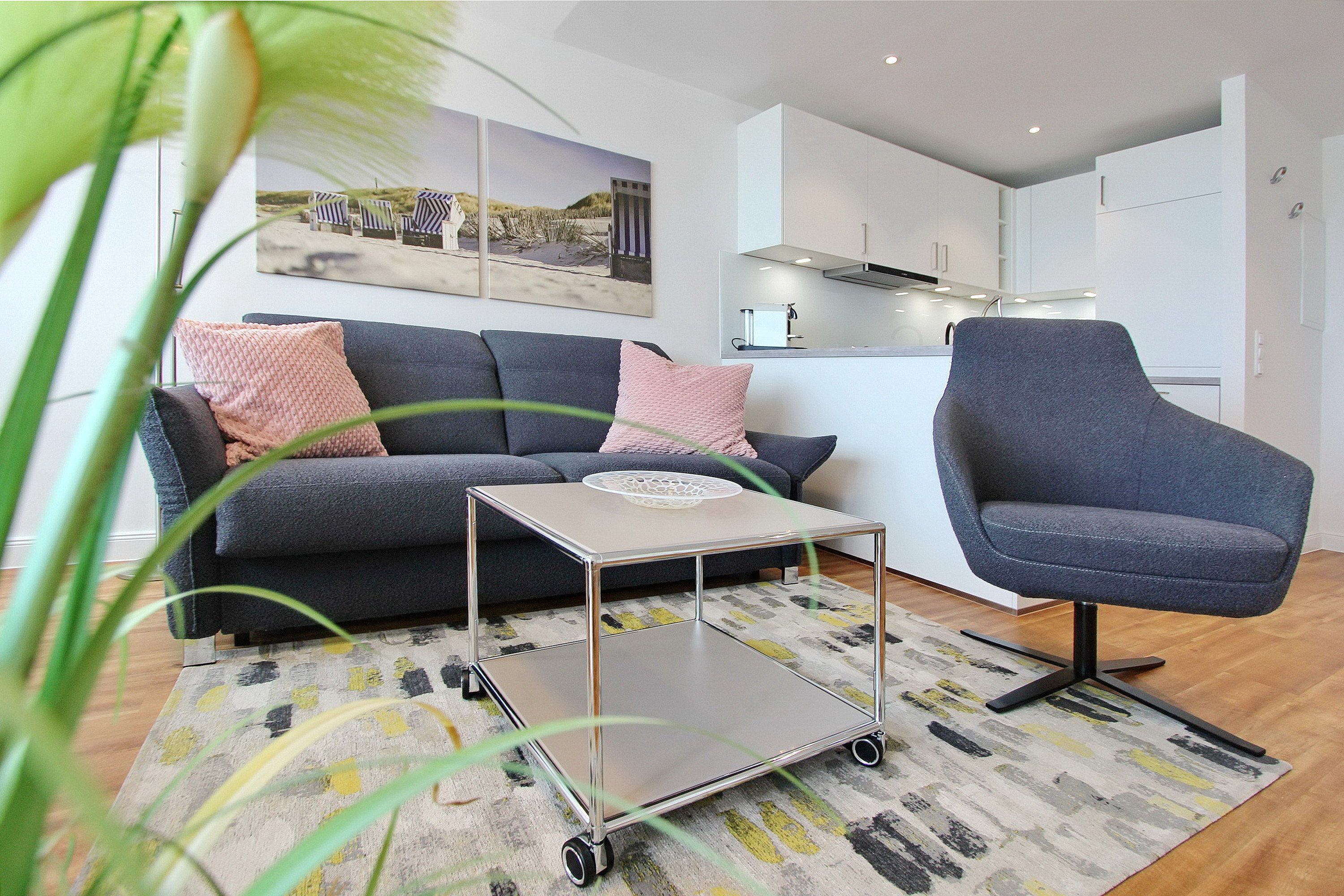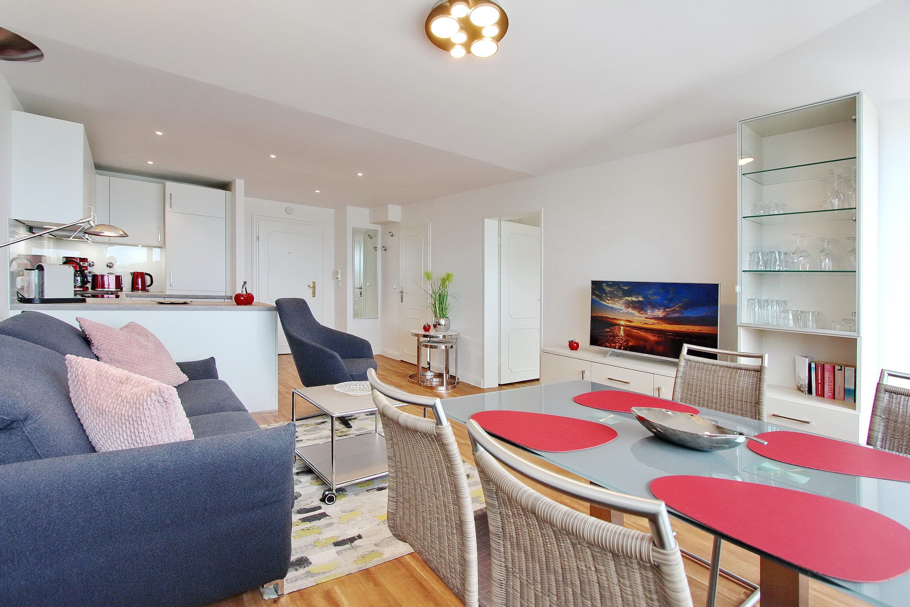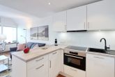 Exklusive 2-Zimmer-Wohnung in der 14. Etage des Haus Metropol mit einer großen vorgelagerten Dachterrasse von der man einen traumhaften Blick auf die Nordsee genießen kann. Der Wohnraum ist mit einer gemütlichen Couchgarnitur mit Schlaffunktion, einem Sessel, einem Smart-TV, einem Radio und einem Essplatz mit 4 Stühlen am Fenster ausgestattet. Im Schlafzimmer, welches über einen direkten Zugang zum Badezimmer mit Dusche und Badewanne verfügt, findet man ein feststehendes Doppelbett, einen großen Kleiderschrank und einen zusätzlichen Smart-TV vor. Zusätzlich gehört zur Wohnung ein separates Gäste-WC. Die neue offene moderne Küche ist mit einem 4 Platten-Cerankochfeld, Backofen, Kühlschrank mit Gefrierfach und einer Geschirrspülmaschine ausgestattet. Nichtraucherwohnung. Der Eigentümer verfügt über einen eigenen Internetanschluss (Zugangsdaten in der Wohnung) der kostenfrei zu nutzen ist. Der Aufzug im Haus Metropol geht nur bis zur 13. Etage - die 14. Etage (Penthouse) ist dann über eine Treppe erreichbar. Wohnungsgröße ca. 67 m².