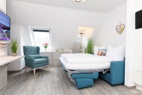 Alle Ferienwohnungen in diesem familien- und kinderfreundlichen Haus sind geschmackvoll und sehr komfortabel eingerichtet. Ob Familien und Paare finden hier alles vor, was für einen schönen und erholsamen Urlaub nötig ist. Und viel(es) Mee(h)r.