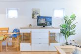 Dieses kleine aber feine Sommerhaus lässt keine Wünsche offen, wenn Sie mit Ihrer Familie gemeinsam Zeit genießen möchten. Das Schlafzimmer ist liebevoll eingerichtet und befindet sich im 1. Obergeschoss. Es ist mit einem Doppelbett (2x90x200cm) und einem geräumigen Kleiderschrank eingerichtet. Zusätzlich gibt es in der oberen Etage eine Doppelschlafcouch für 2 Personen. Das Erdgeschoss ist ebenfalls großzügig und elegant möbliert. Der offen gestaltete Wohnraum bietet eine Essecke sowie eine komplette Wohnlandschaft, die mit einem Flatscreen ausgestattet ist.