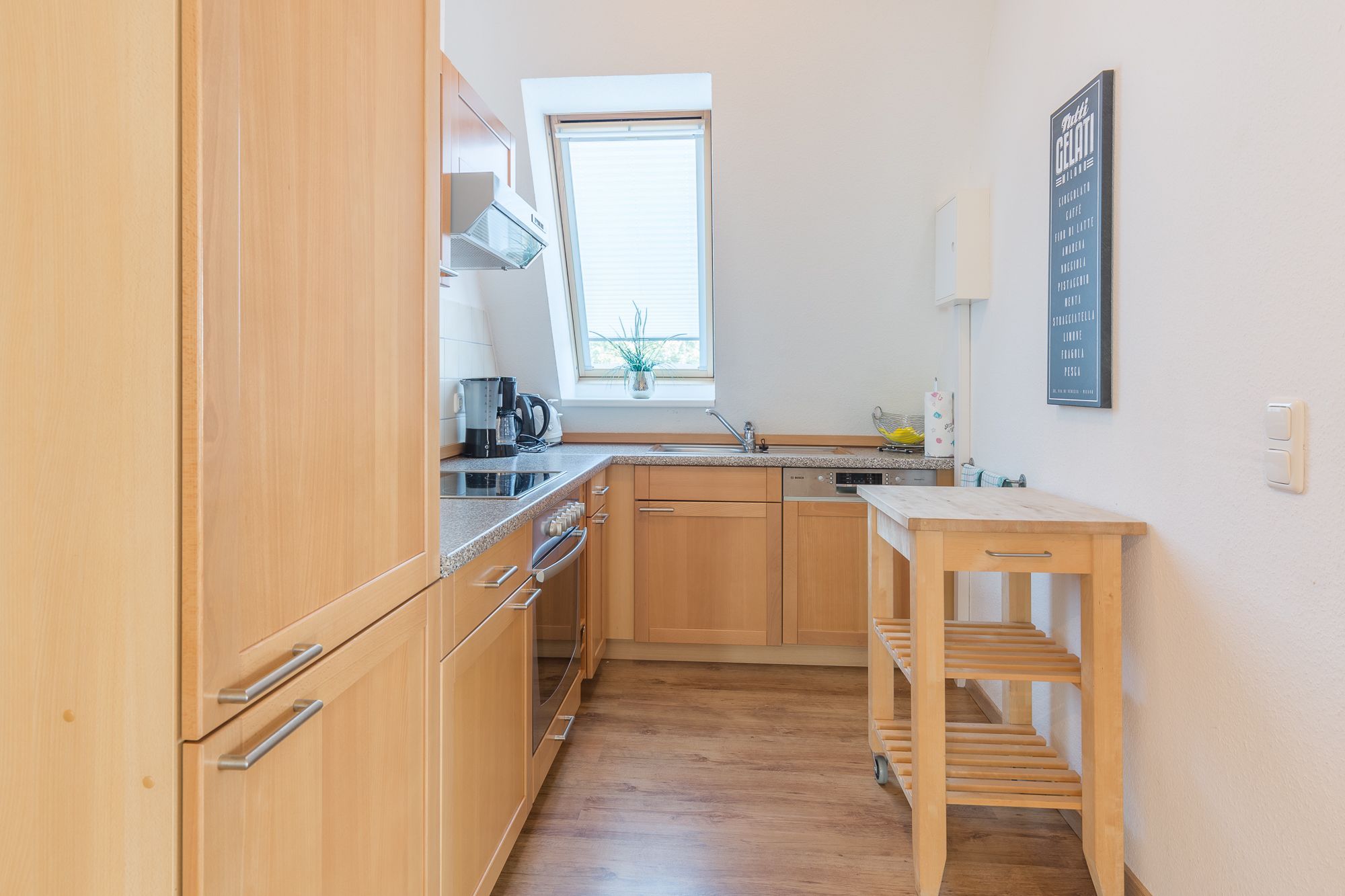 Die Ferienwohnung Atelier ist eine 3-Zimmer-Ferienwohnung für bis zu 4 Personen. Sie ist 68 qm groß und liegt im 3. OG. Die Wohnung hat ein Wohnzimmer mit Dachterasse , zwei Schlafzimmer, Küchenzeile, Vollbad mit Badewanne, Dusche und WC und ein separates Gäste-WC. Ein kostenloser Stellplatz für Ihr Auto befindet sich direkt hinter dem Haus.