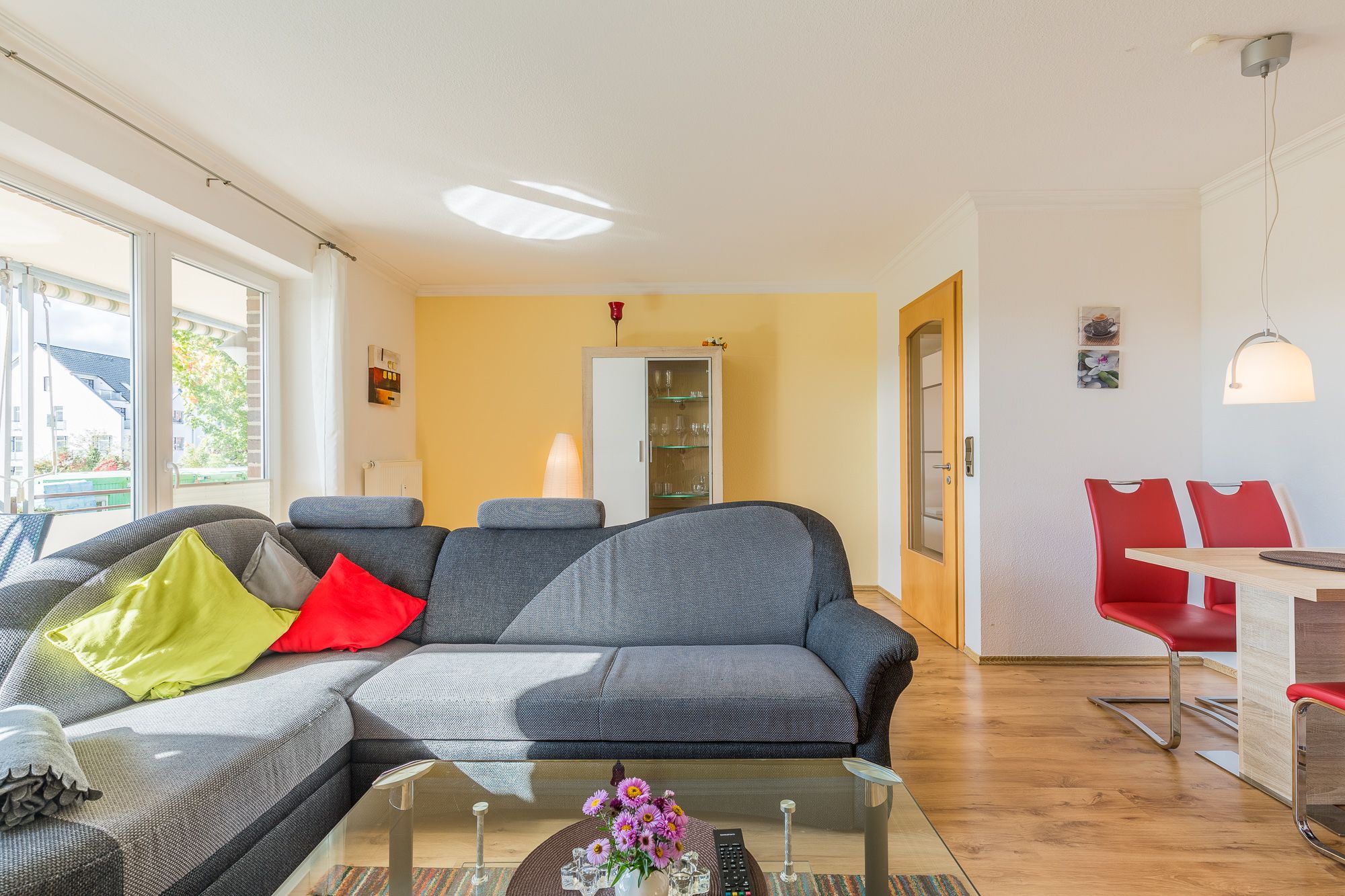 Die gemütliche helle Ferienwohnung Schila befindet sich im Hochparterre des Hauses Ostseeallee 18. Ein großer zusammenhängender Balkon , der vom Wohn- und dem Schlafzimmer begehbar ist, stellt das besondere Highlight der Wohnung dar und bietet dem Gast einen sonnigen Aufenthalt.