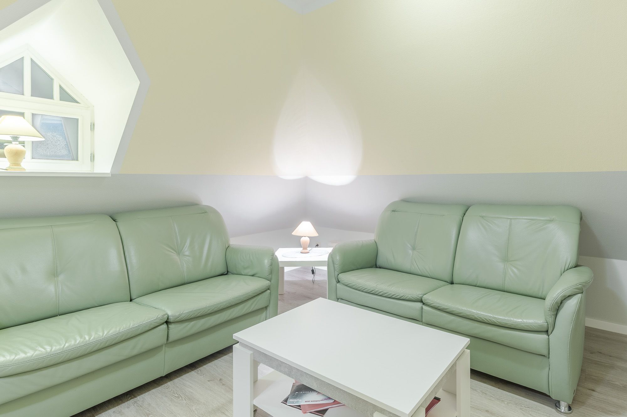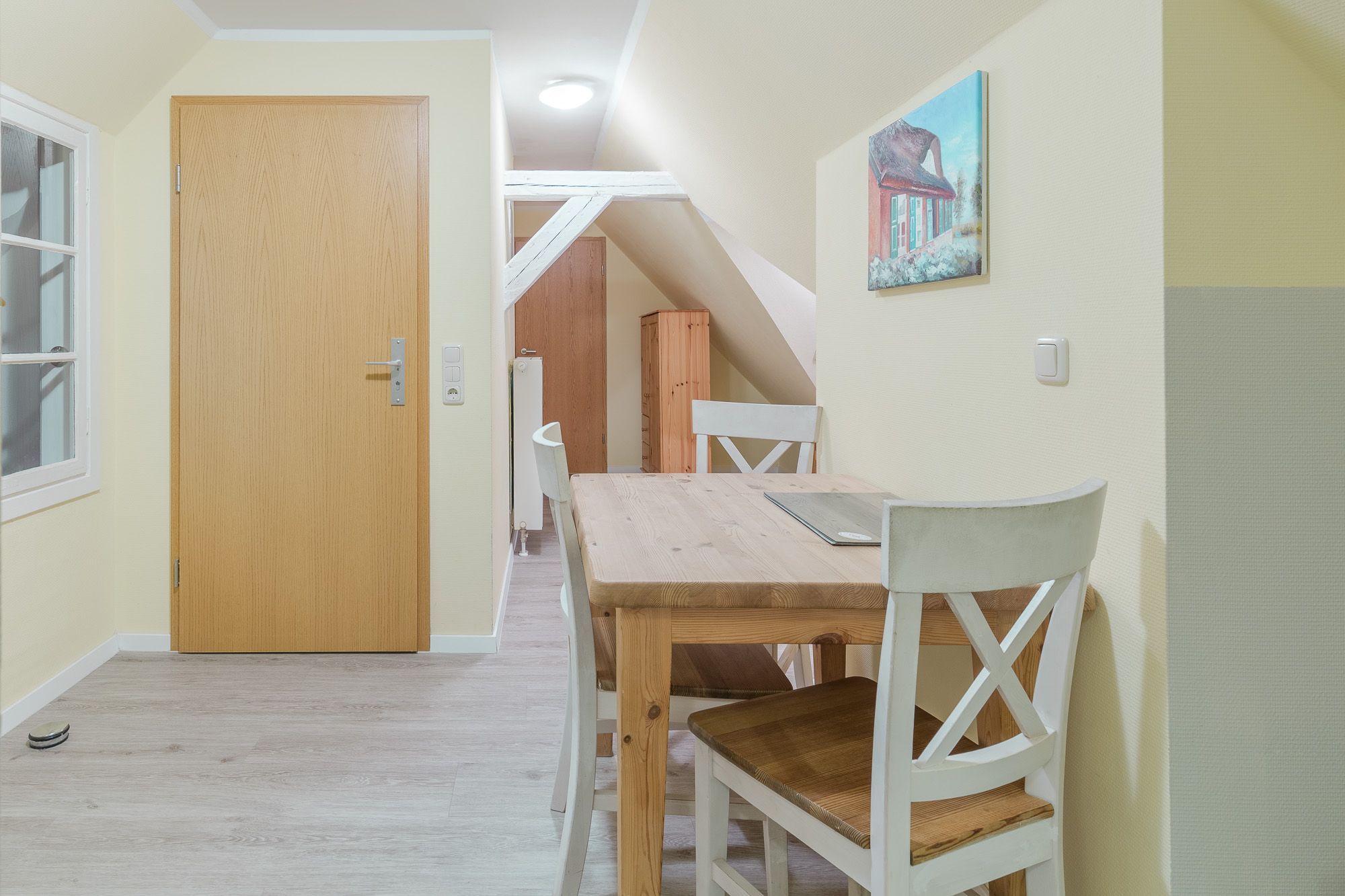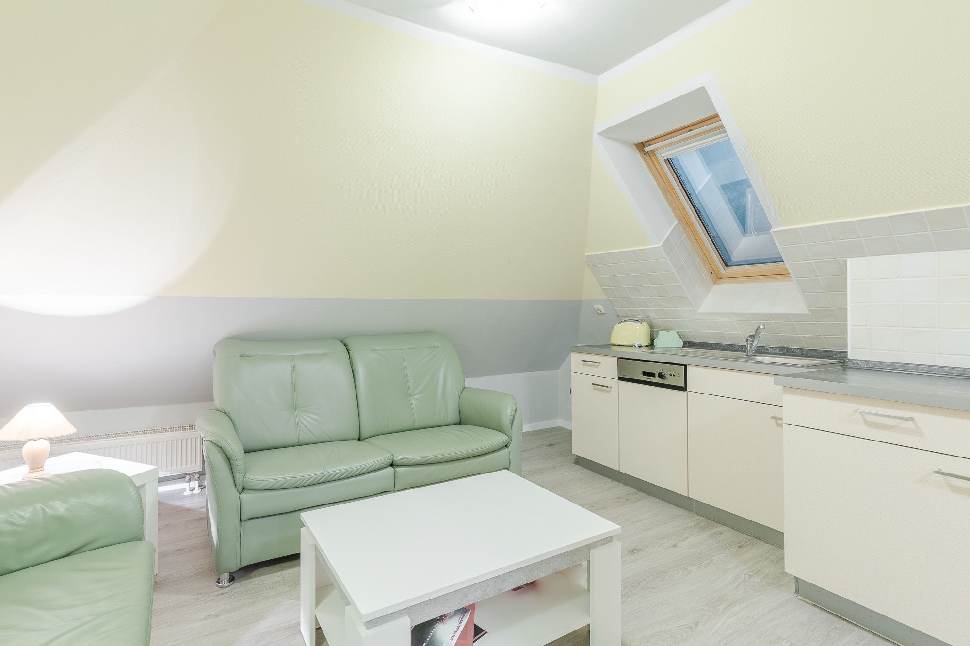 Die Wohnung 8 im 2. Obergeschoss bietet mit einem Wohnzimmer, einem separaten Schlafzimmer sowie einem offenen Schlafbereich zum Wohnzimmer Platz für 4 Personen.