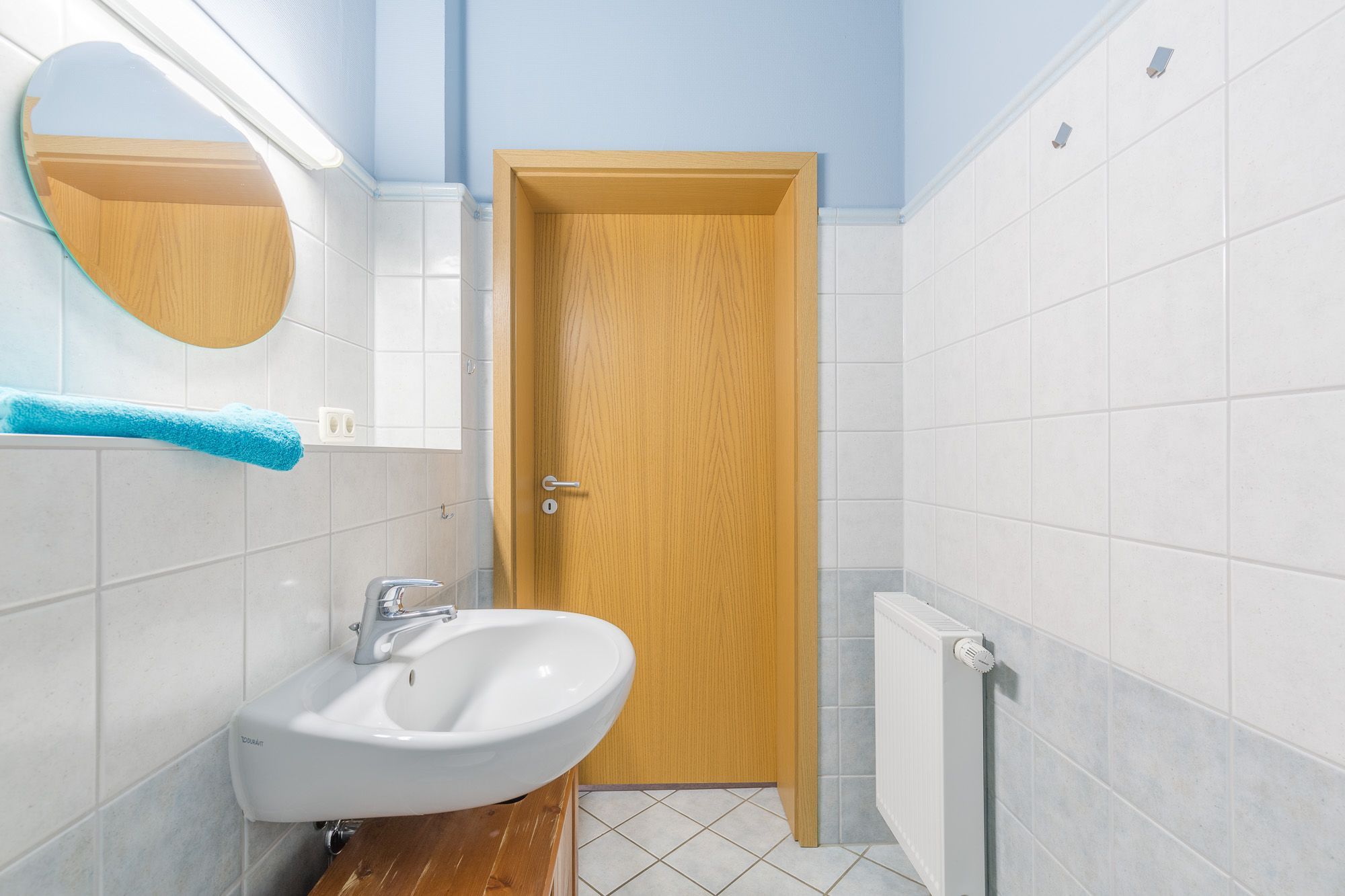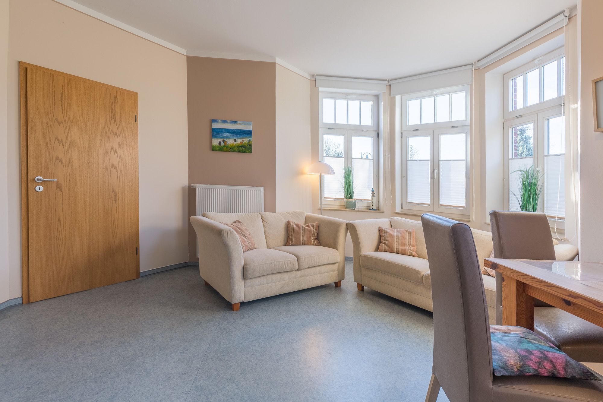 Die Wohnung 3 im Erdgeschoss bietet mit einem großen Wohnzimmer und einem separaten Schlafzimmer Platz für maximal 2 Personen. Sie verfügt über eine offene, komplette Küchenzeile im Wohnzimmer mit Geschirrspülmaschine, Backofen, 4-Platten-Herd und Kühlschrank sowie ein Badezimmer mit Dusche und WC. Den großen Garten mit Grillmöglichkeit können alle Gäste des Hauses gern nutzen. Ihren PKW können Sie auf dem Innenhof abstellen. Zusätzlich stellen wir Ihnen 2 Fahrräder kostenfrei zur Verfügung (Zustand und Verfügbarkeit ohne Rechtsanspruch). Das Mitbringen von Haustieren ist erlaubt. Hier berechnen wir einen Mehraufwand von 10,00 Euro pro Tag. Nutzung der Waschmaschine möglich.