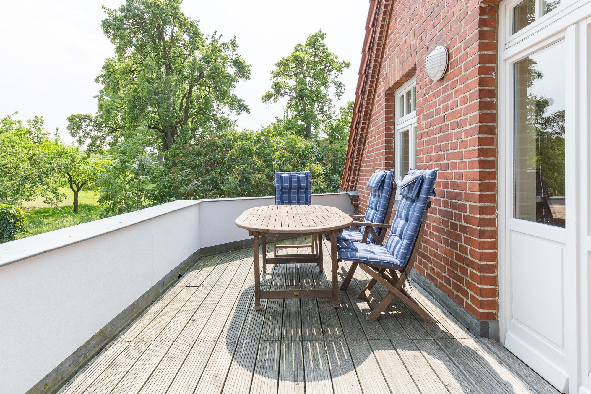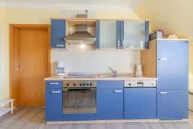 Sie verfügt über einen großen Flachbild-TV, eine separate Küche mit Geschirrspülmaschine, Backofen, 4-Platten-Herd und Kühlschrank sowie ein Badezimmer mit Dusche und WC. Die Wohnung zeichnet sich besonders durch die hübsche kleine Dachterrasse aus, die Genießen und Entspannen im Liegestuhl einlädt. Ihren PKW können Sie zur Gartenseite abstellen. Einen Parkzettel zur Kennzeichnung im Auto erhalten sie in unserem Büro für 5,- Pfand.