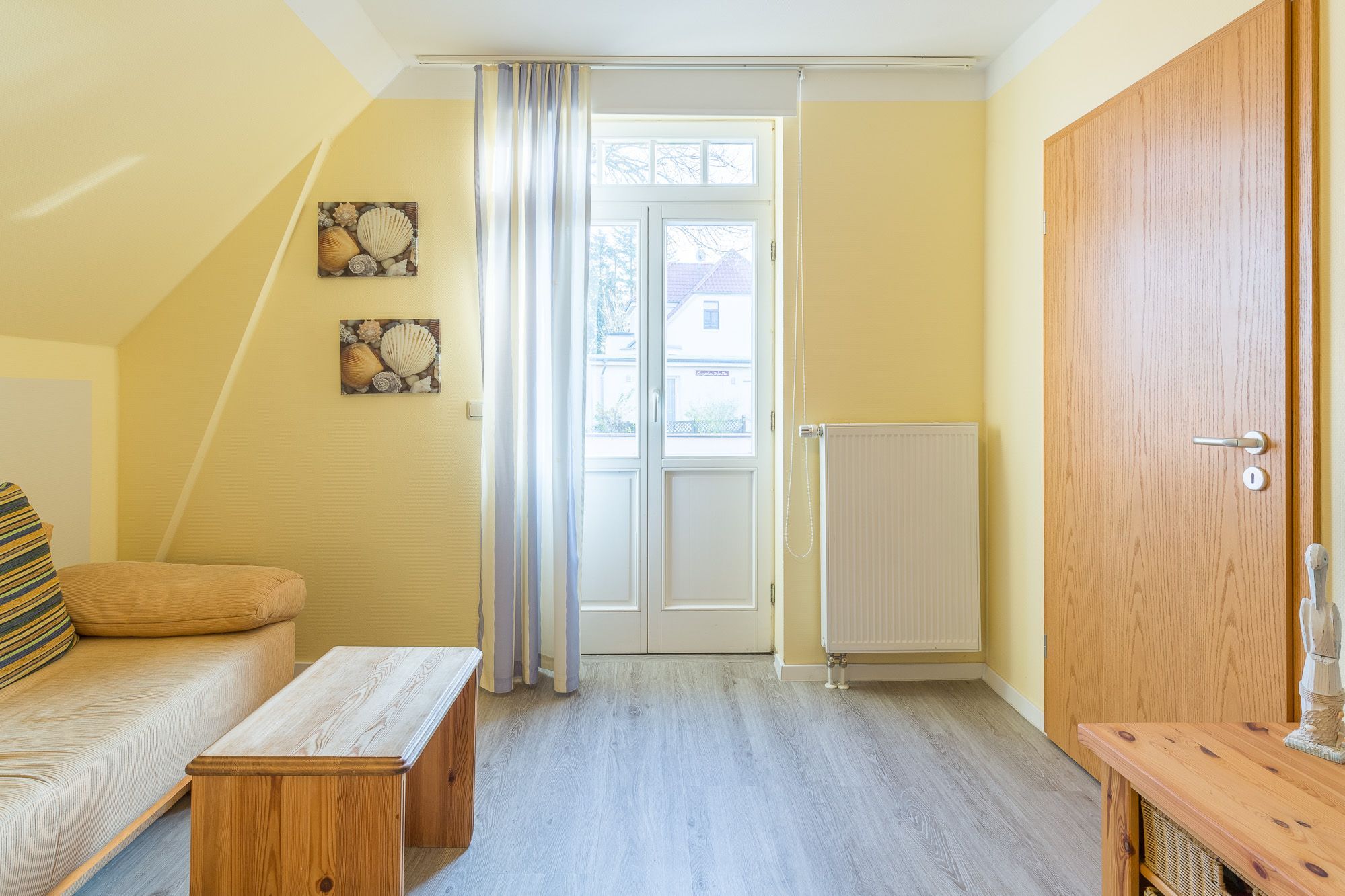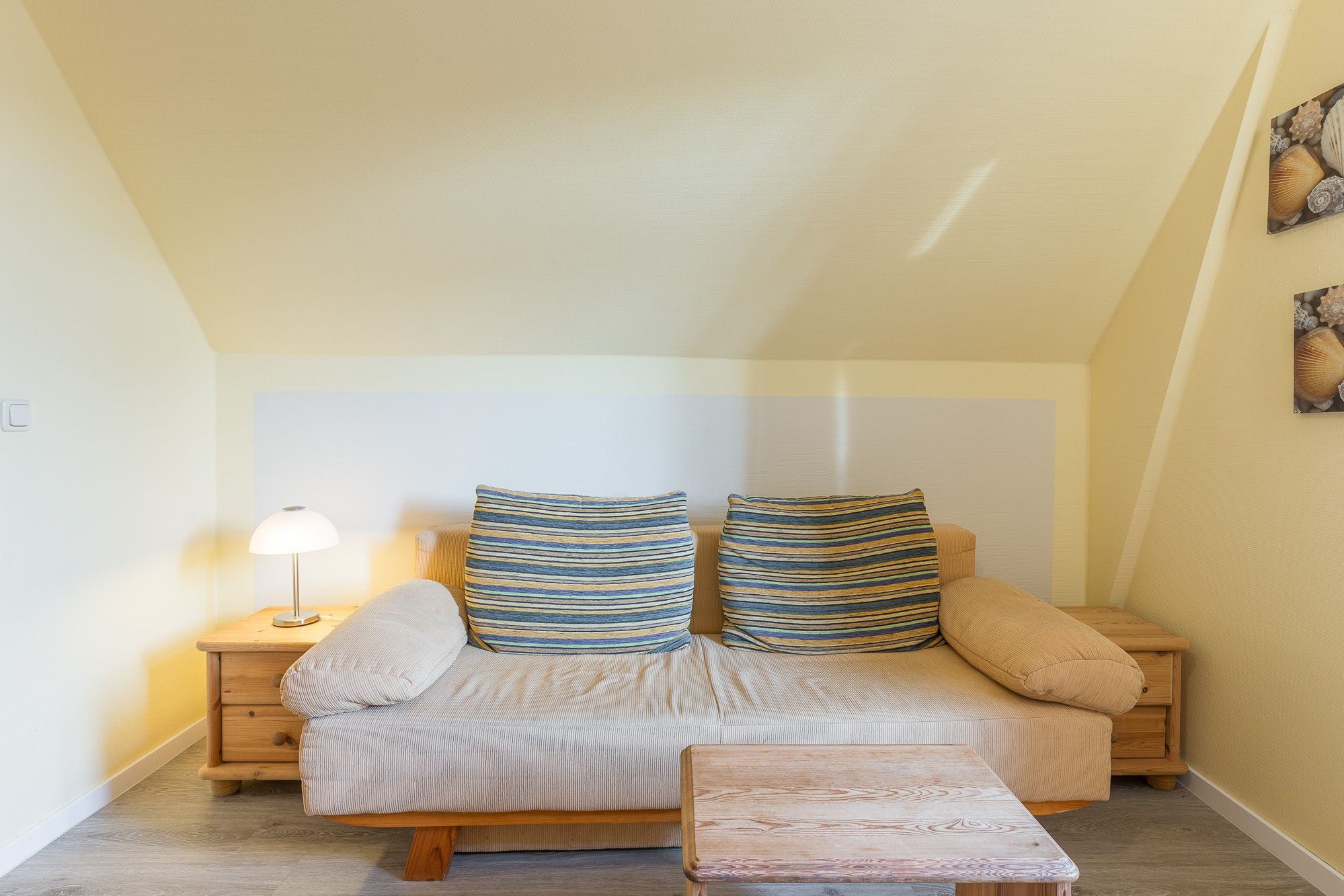 Die Ferienwohnung 07 im 1. Obergeschoss bietet mit einem Wohnzimmer mit Schlafcouch und einem separaten Schlafzimmer Platz für 3 Personen.