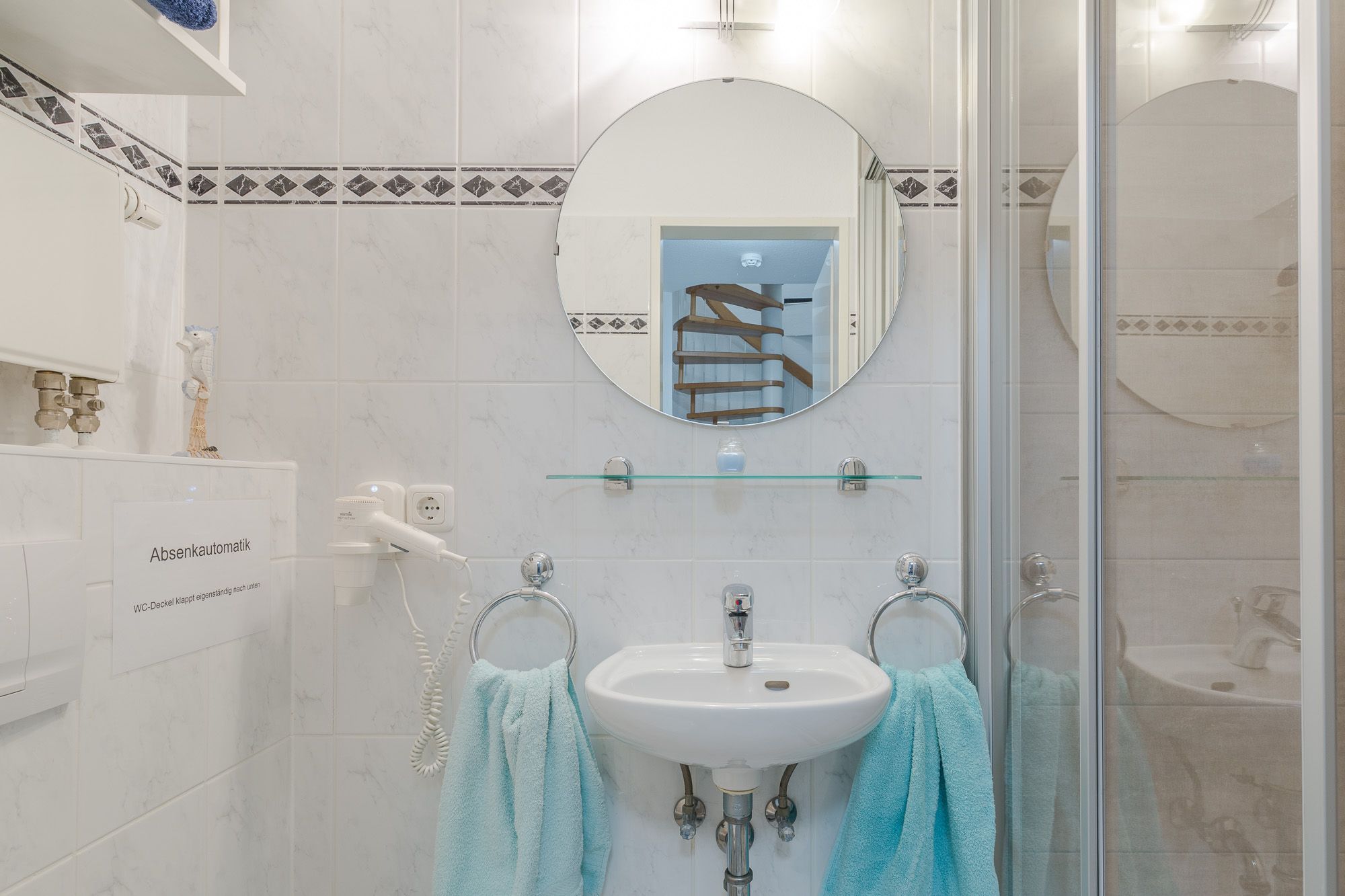 Die Maisonette-Wohnung befindet sich im 2. und 3. OG und sie ist bequem mit einem Fahrstuhl direkt aus der Tiefgarage zu erreichen. Über eine Wendeltreppe ist das DG erreichbar. Beide Ebenen verfügen je über einen Balkon und von beiden Balkonen können Sie den tollen Seeblick genießen. Die Ferienwohnung 41 in der Residenz Likedeeler ist für bis zu 4 Personen ausgestattet. Auf der unteren Ebene (2. OG) befindet sich das große Wohnzimmer mit der offenen moderne Küche (inkl. Einbauküche mit Geschirrspüler, Mikrowelle, Backofen und Cerankochfeld) und einem schönen Essbereich. Vom Wohnzimmer aus können Sie den Balkon betreten. Auch ein großer Flur und ein Duschbad sind auf dieser Ebene vorhanden. Der obere Bereich ist freundlich und hell gestaltet. Hier befinden sich ein Schlafzimmer mit einem Doppelbett (180 x 200 cm) und Flatscreen-TV, ein zweites Schlafzimmer mit 2 hintereinander stehenden Einzelbetten (2 x 90 x 200 cm) und der Zugang zum zweiten Balkon. Auch ein weiteres Duschbad ist vorhanden.