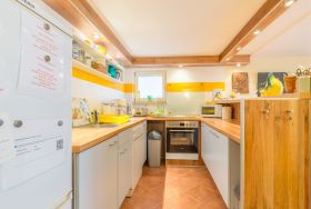 Die Ferienwohnung im Haus Sterntaucher bietet Platz im Erdgeschoss /Untergeschoss mit ein paar flachen Stufen absteigend für maximal 4 Personen. Ein großzügiger Wohn-Essbereich mit integrierter Küche lädt zum Wohlfühlen ein.