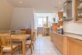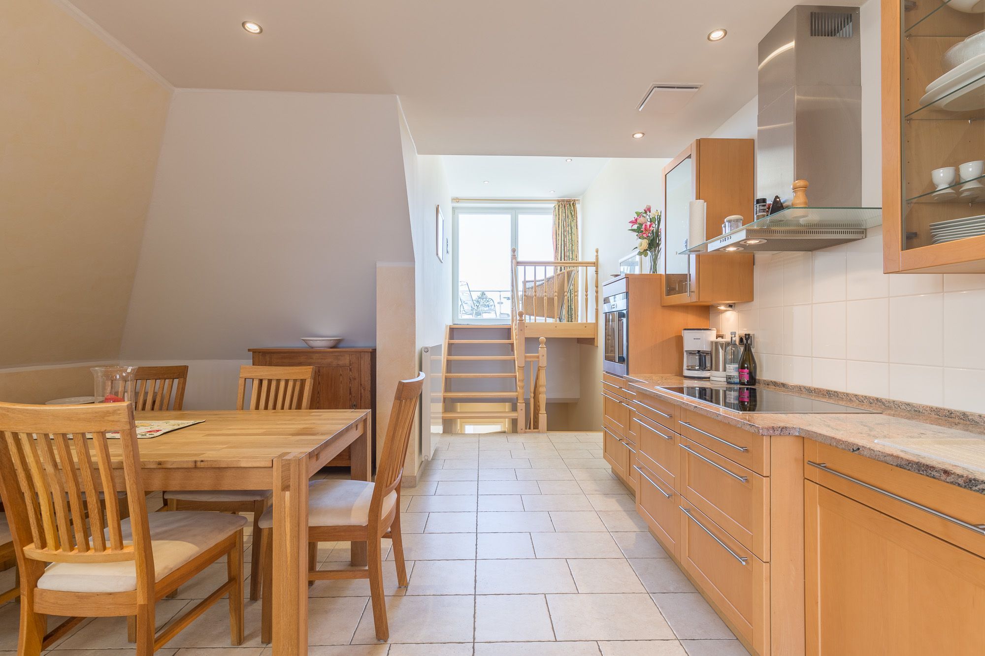 Die Maisonette-Ferienwohnung 10 liegt im 2. + 3. Obergeschoss zur Seeseite und ist 69 qm groß. Sie ist modern und mit hochwertigen Möbeln ausgestattet und verfügt über eine komfortable Küchenzeile mit Backofen, Geschirrspülmaschine und Mikrowelle sowie ein Bad mit Dusche und WC und einem separaten Gäste-WC.