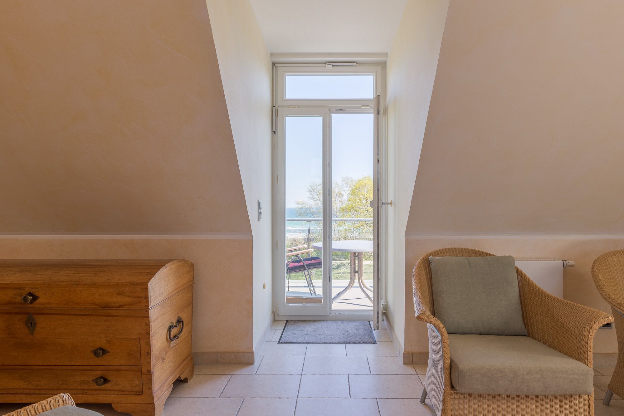 Das Wohnzimmer bietet Ihnen einen offenen und weiten Blick in Richtung Ostsee. Der großzügige Balkon mit Seeblick ist nur eines der vielen Highlights Ihres Appartements. Eine weitere kleine Dachterrasse ist ein sonniger Platz mit Blick über die großzügige Anlage. Die zwei separaten Schlafzimmer bieten allen Komfort und erholsame Ruhe.