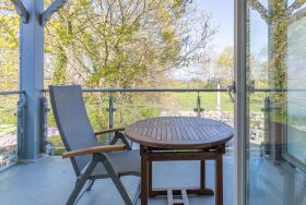 Das Wohnzimmer bietet Ihnen einen offenen und freundlichen Blick über die Gartenanlage in Richtung Ostsee. Der großzügige Balkon ist nur eines der vielen Highlights Ihres Appartements.