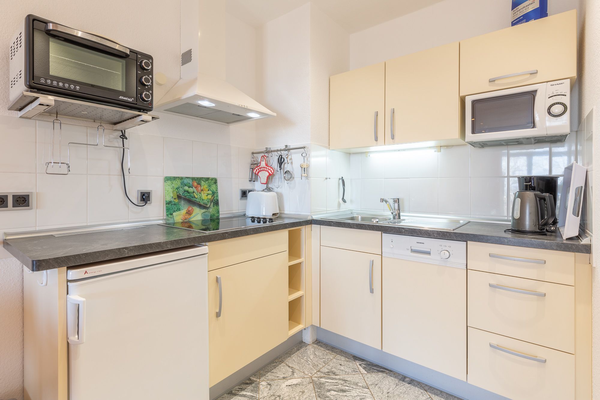 Die Ferienwohnung 7 liegt im 1. Obergeschoss zur Seeseite mit wunderschönem freien Meeresblick und ist 45 qm groß. Sie ist modern und mit hochwertigen Möbeln ausgestattet und verfügt über eine komfortable Küchenzeile mit Herd, Geschirrspülmaschine und Mikrowelle sowie ein Bad mit Waschbecken, ebenerdiger Dusche und WC.