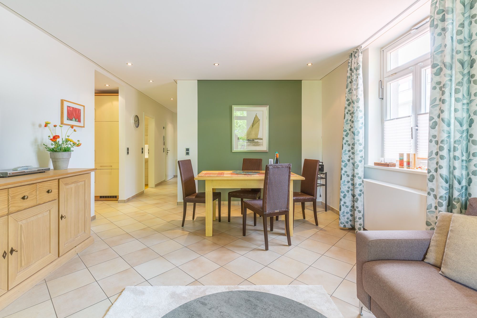 Die Ferienwohnung Nr. 15 liegt im 2. Obergeschoss zur Seeseite und ist 44 qm groß. Sie ist modern und mit hochwertigen Möbeln ausgestattet und verfügt über eine komfortable Küchenzeile mit Backofen und Geschirrspülmaschine sowie ein komfortables Duschbad mit WC.
