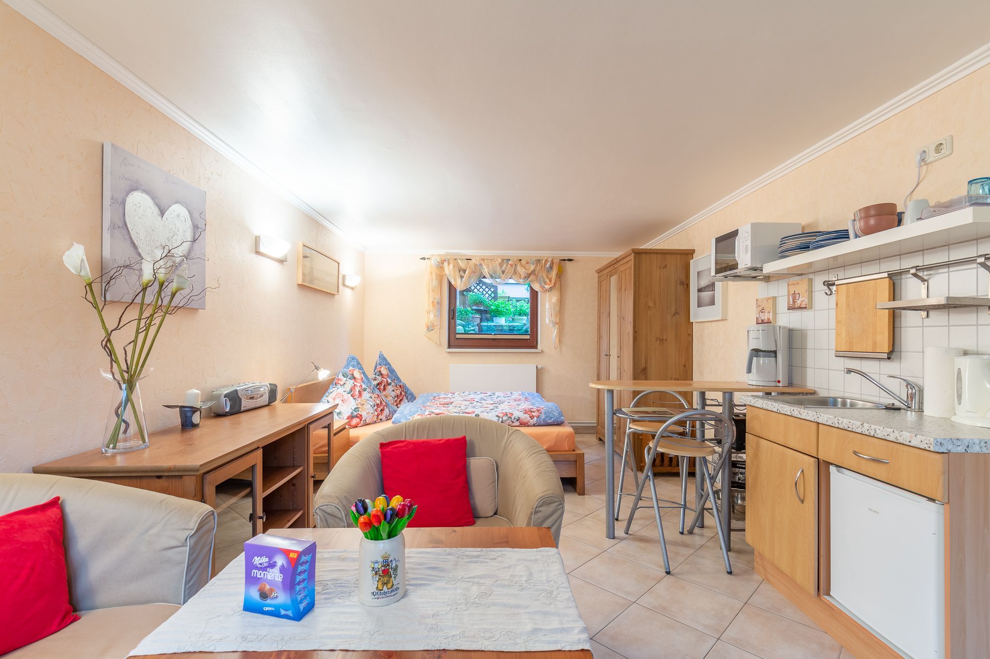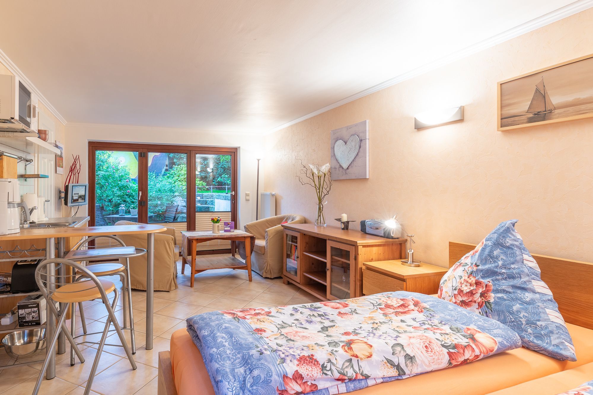Das 1-Zimmer-Ferienappartement Giewald im Souterrain befindet sich im Zentrum von Boltenhagen und ist etwa 800 m vom Strand entfernt. Das Appartement bietet mit einem Doppelbett im Schlafzimmer Platz für bis zu 2 Personen. Es verfügt über eine Küchenzeile mit Mikrowelle und Kaffeemaschine. Die Terrasse mit Sitzgelegenheit lädt zum Genießen und Verweilen ein.