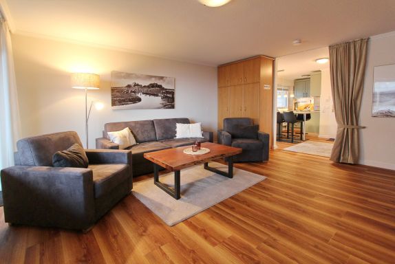 Diese mit Liebe zum Detail, gemütliche, modern eingerichtete 1 Zimmer Wohnung wurde kürzlich komplett saniert, befindet sich im Haus am Meer in der 1. Etage zur Nord-/Westseite und ist nur wenige Schritte vom Zentrum, der Friedrichstraße und vom Hauptstrand entfernt. Sie verfügt über 2 Balkone, einen zur Nordseite, einen zur Westseite, die jeweils mit Balkonmöbeln mit Sitzauflagen versehen sind. Vom Westbalkon aus haben Sie einen eingeschränkten Blick auf die Nordsee. Der Designbodenbelag in Holzoptik gibt dem kombinierten Wohn-Schlafraum mit Einzelschrankbetten und einem Schlafsofa sowie 2 großen Sesseln, Wärme und Gemütlichkeit und ist besonders angenehm für Allergiker. Das moderne Badezimmer mit einer sehr großen Spiegelfront verfügt über eine Dusche, einen Kosmetikspiegel und Fön. Der offene Küchenbereich mit angeschlossenem Küchentresen für 4 Personen ist ein optischer Hingucker und es fehlt an nichts. Geschirrspüler, Mikrowelle, Backofen und Ceranfeld gehören zur Ausstattung der Küche. Der Eigentümer verfügt über einen eigenen Internetanschluss (Zugangsdaten in der Wohnung) den Sie kostenfrei nutzen können. Arbeiten, streamen ... alles kein Problem. Zur Technischen Ausstattung gehört ein: Smart TV und eine Stereoanlage mit CD Player und Radio. Diese Nichtraucherwohnung hat eine Größe von ca. 48 m².