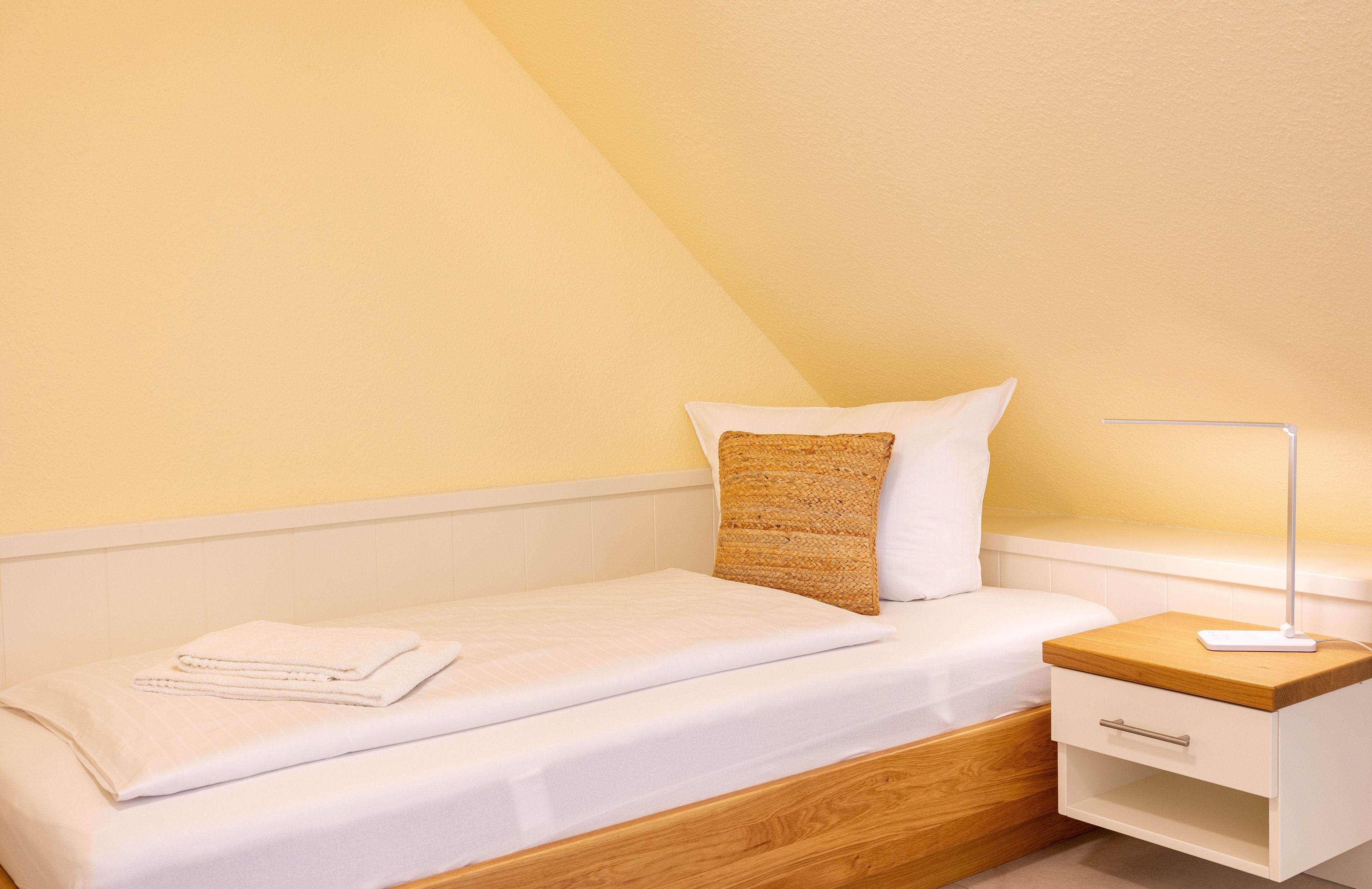 Zwei separate Schlafzimmer mit geräumigen Einbauschränken stehen Ihnen zur Verfügung. Sie finden dort einmal ein Doppelbett, sowie ein Einzelbett mit Schreibtisch vor. So können Sie Ihren Urlaub mit viel Platz zu dritt oder entspannt zu zweit genießen.