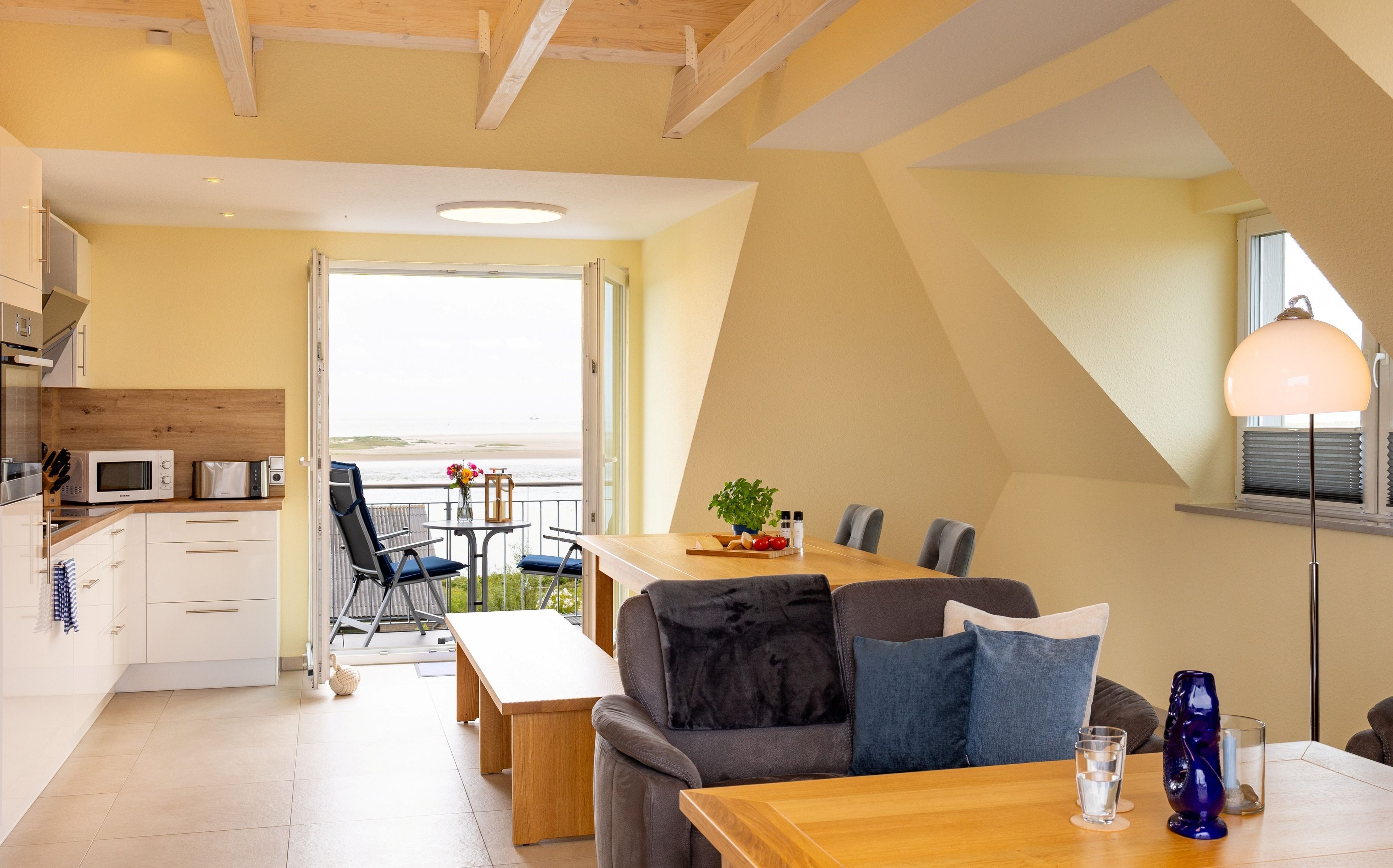 Die in 2023 im Dachgeschoss des neu gebauten Haus Egel fertig gestellte Ferienwohnung bietet hochwertigen, durchdachten und allumfassenden Komfort. Meerblick umgibt Ihren Aufenthalt aus allen Fenstern.