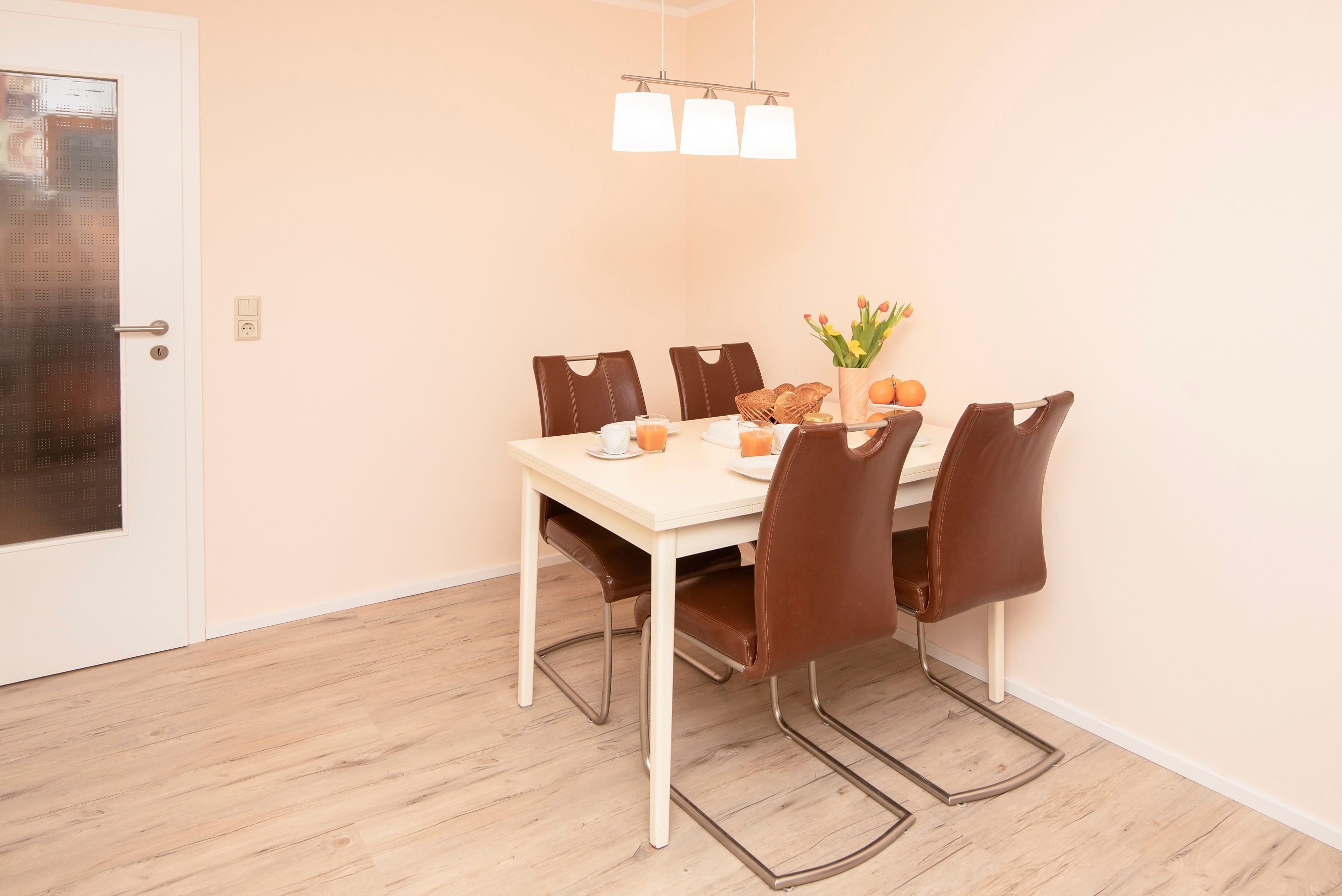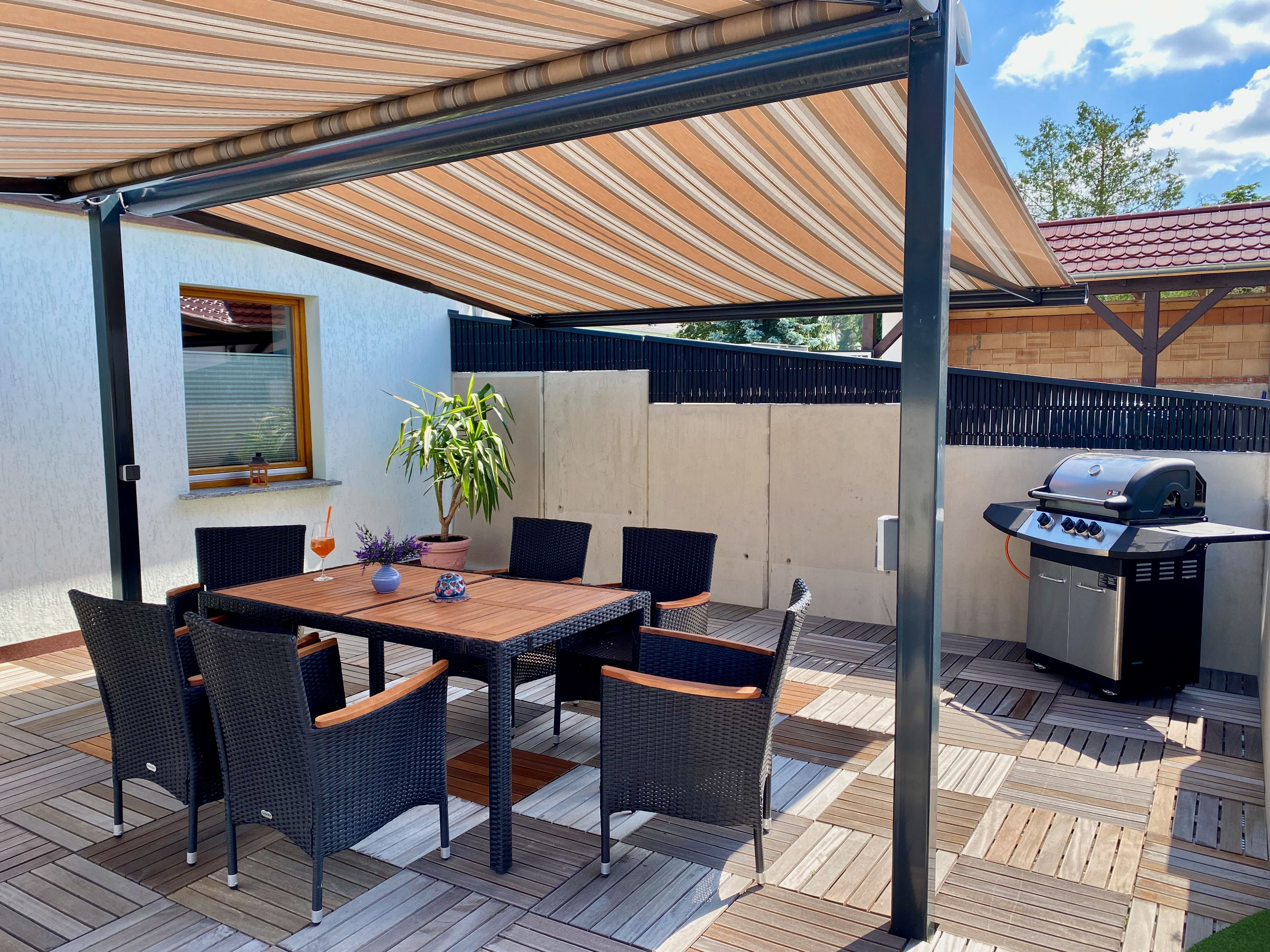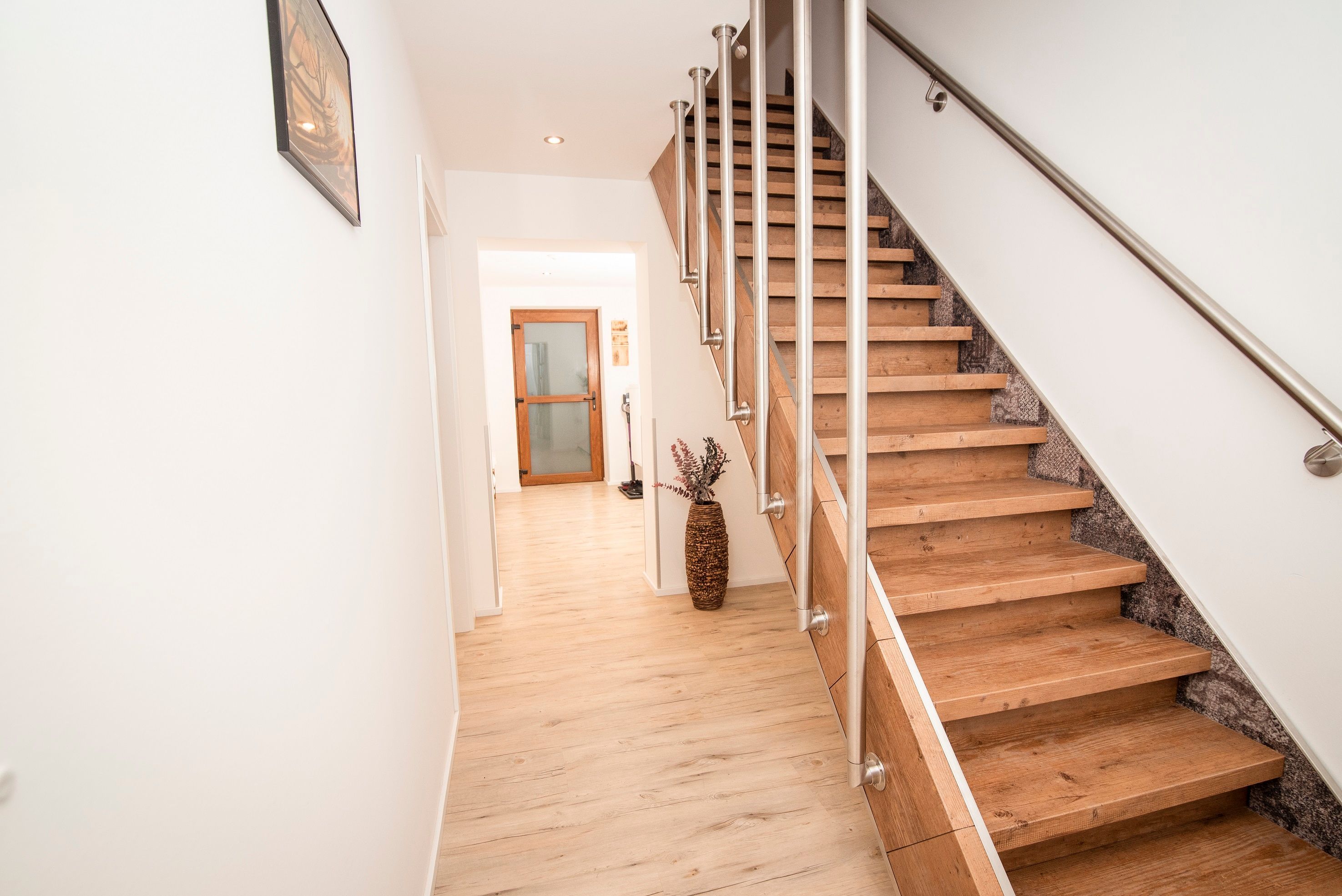Im Erdgeschoss befinden sich eine moderne, komplett eingerichtete Küche, ein Wohnzimmer und ein Bad mit Dusche/WC. Ein Kinderstuhl ist bei Bedarf vorhanden. In der oberen Etage befinden sich ein Bad mit Dusche/WC, 2 Schlafzimmer mit je einem Doppelbett. Ein weiteres Gästebett sowie ein Kinderbett sind bei Bedarf vorhanden. Auf der 60 m² großen Terrasse mit freistehender Markise können Sie Ihr Frühstück genießen. Dort laden auch Sonnenliegen zum Entspannen ein. Nach einer Tagestour kehren Sie am Abend in Ihr gemütliches Zuhause auf Zeit zurück und lassen je nach Lust und Laune beim Grillen mit dem Gasgrill oder einfach beim Beisammensitzen in der abendlichen Ruhe den Tag erholt ausklingen. Und sollte es einmal regnen - kein Problem. Dann legen Sie einen Lese- oder Spieletag ein. Unsere kleine Bibliothek und unsere Familienspiele laden Sie dazu ein.