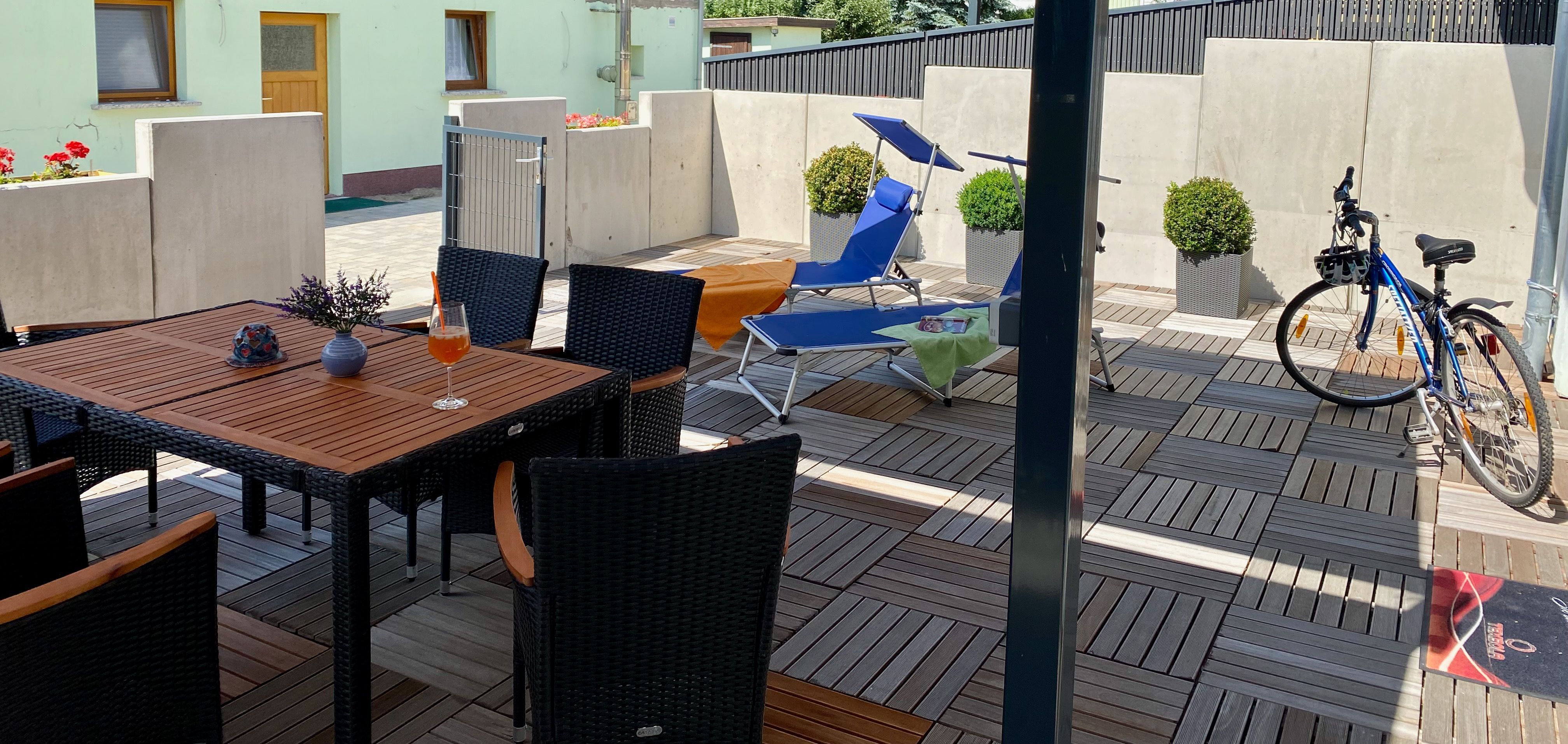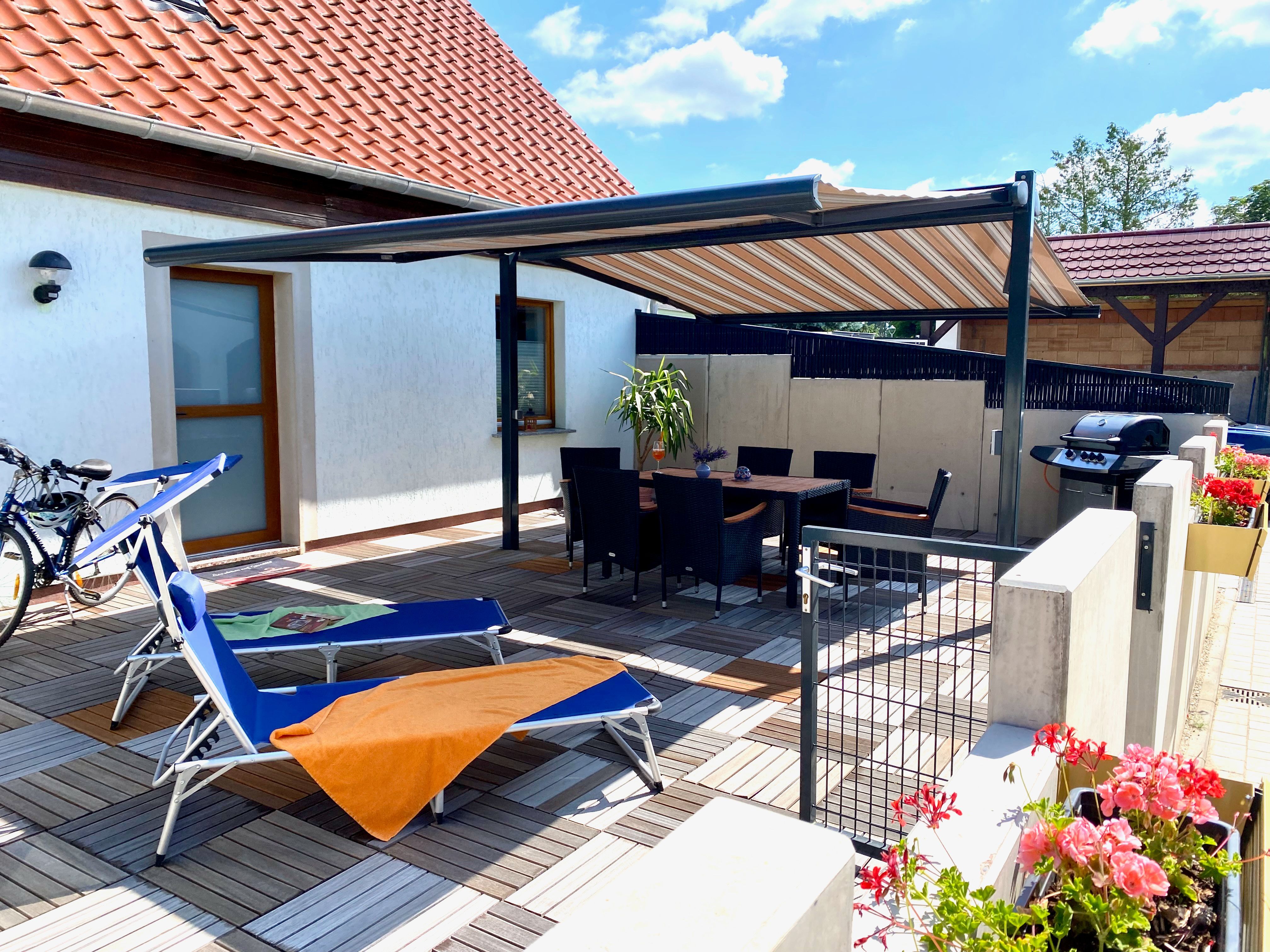 Sie suchen Entspannung und Ruhe im Urlaub? ... dann ist unser 2023 neu ausgebautes und modernisiertes Ferienhaus auf dem Land genau das Richtige für Sie. Der einstige Bauernhof bietet Ihnen heute in 90 m² ein gemütliches, familienfreundliches Ferienhaus über 2 Etagen in ruhiger Lage. Im Erdgeschoss befinden sich eine moderne, komplett eingerichtete Küche, ein Wohnzimmer und ein Bad mit Dusche/WC. Ein Kinderstuhl ist bei Bedarf vorhanden. In der oberen Etage befinden sich ein Bad mit Dusche/WC, 2 Schlafzimmer mit je einem Doppelbett. Ein weiteres Gästebett sowie ein Kinderbett sind bei Bedarf vorhanden. Auf der 60 m² großen Terrasse mit freistehender Markise können Sie Ihr Frühstück genießen. Dort laden auch Sonnenliegen zum Entspannen ein. Nach einer Tagestour kehren Sie am Abend in Ihr gemütliches Zuhause auf Zeit zurück und lassen je nach Lust und Laune beim Grillen mit dem Gasgrill oder einfach beim Beisammensitzen in der abendlichen Ruhe den Tag erholt ausklingen. Und sollte es einmal regnen - kein Problem. Dann legen Sie einen Lese- oder Spieletag ein. Unsere kleine Bibliothek und unsere Familienspiele laden Sie dazu ein. Die Anreise von der Bundesstraße direkt nach Neuendorf A würden wir Ihnen nicht empfehlen. Diese Straße ist mit ihren kleinen Wackersteinen sehr holprig und uneben, deshalb nur im Schritttempo befahrbar. Daher unser Tipp: Nehmen Sie den Umweg von ca. 5 km über Ducherow in Kauf. Ihr Auto wird es Ihnen danken. Da es in Neuendorf A keine Einkaufsmöglichkeit gibt, nutzen Sie die Gelegenheit des Umweges und nehmen im Einkaufscenter in Ducherow gleich den ersten Einkauf für Ihren Kühlschrank mit. Haustiere: Kleine Hunde bis 40 cm Höhe sind erlaubt und müssen mit der Buchung kostenpflichtig angemeldet werden. Größere Hunde und sonstige Haustiere bedürfen der vorherigen Anfrage. Rauchen ist im Haus nicht erlaubt.