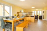 Der weitläufige Wohnbereich wird durch zwei bequeme Sofas bereichert und geht fließend in den Essbereich über.