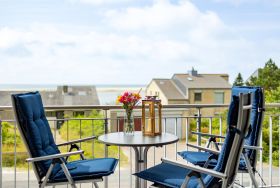 Ein weiter Horizont zeigt sich Ihnen vom Balkon aus mit Blick auf die Nordsee und Südspitze des Amrumer Kniepsandes.
