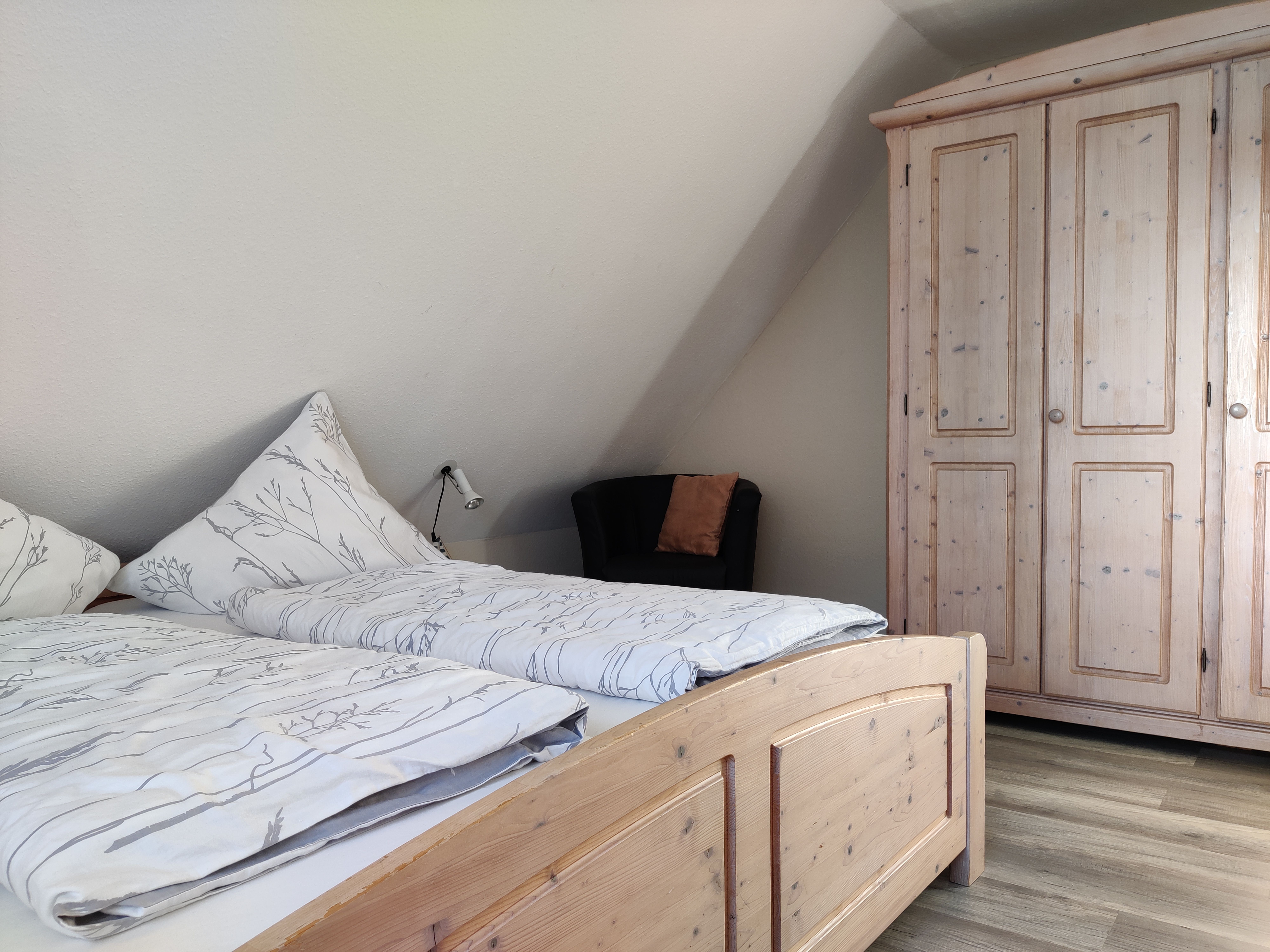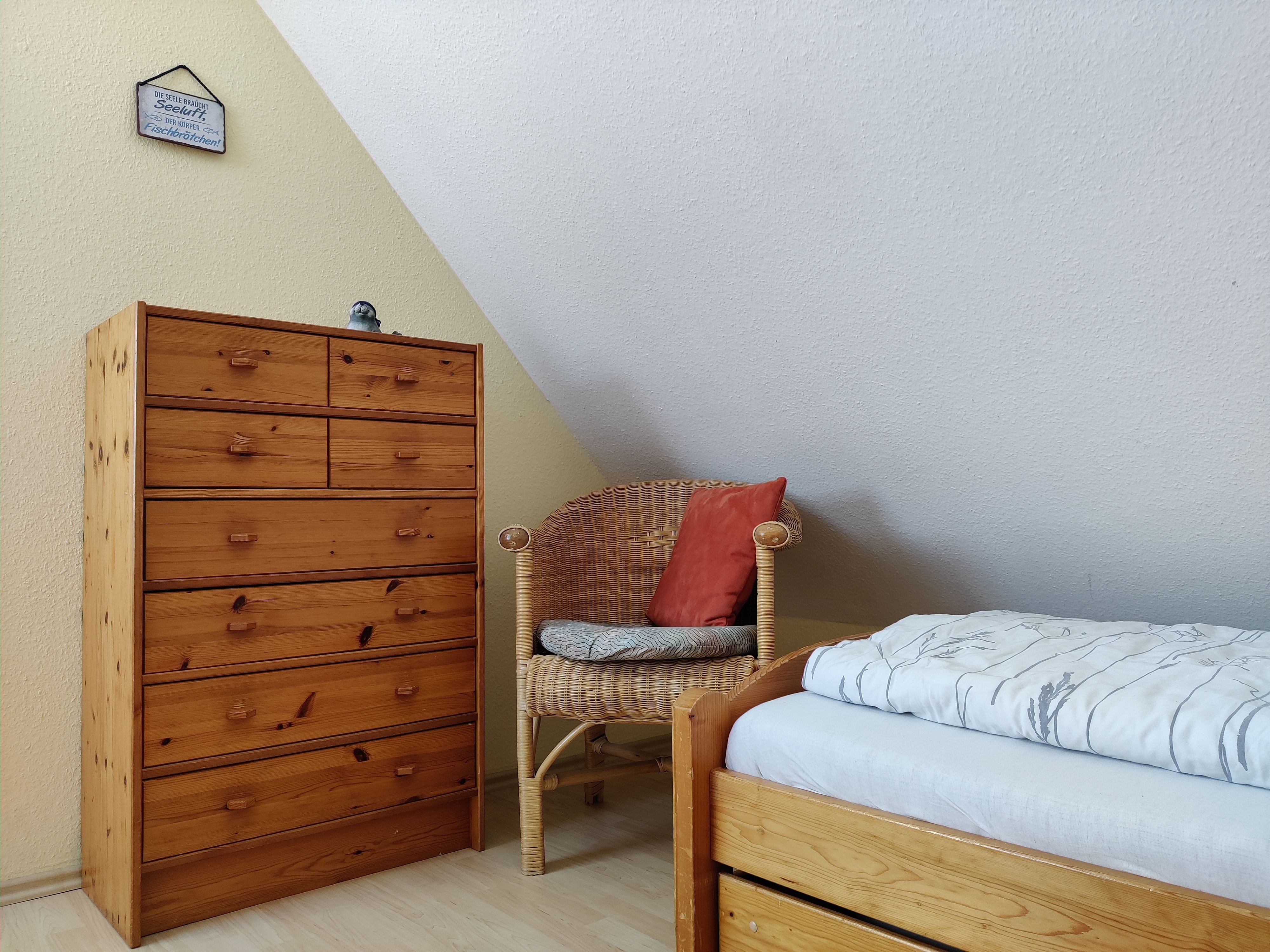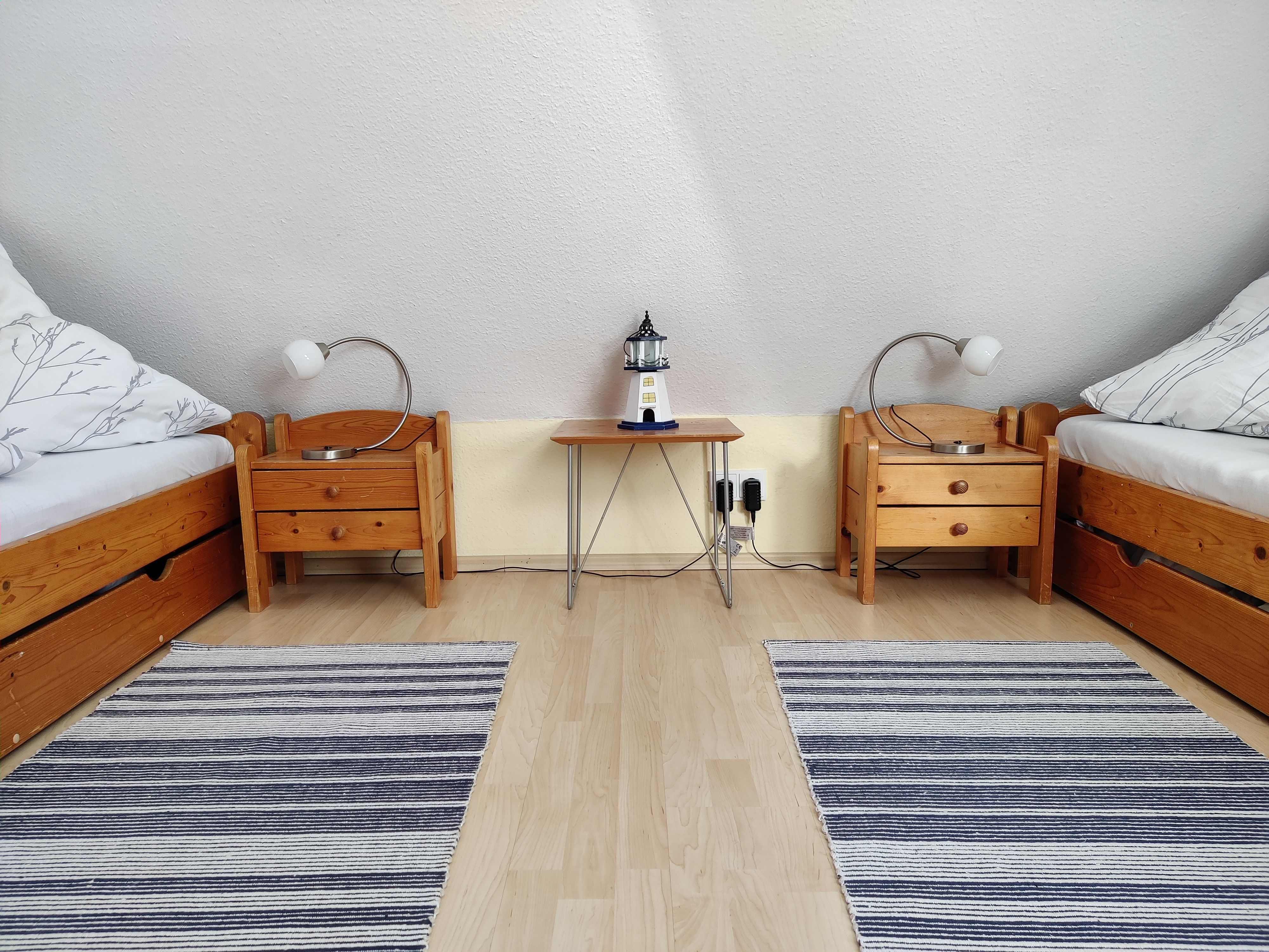 Ausgebauter Spitzboden mit zwei Einzelbetten (je 90cm x 200cm) sowie Kommode