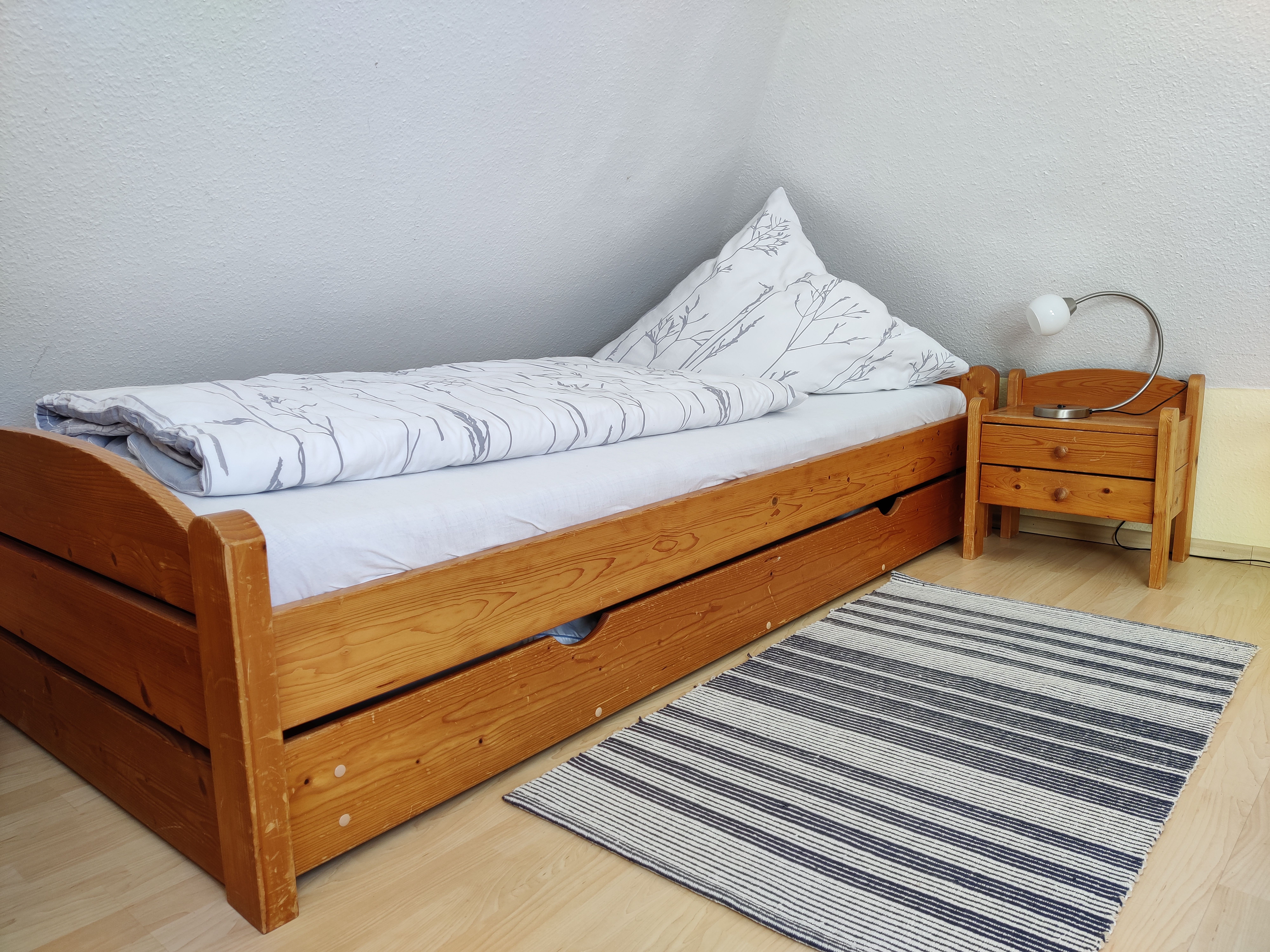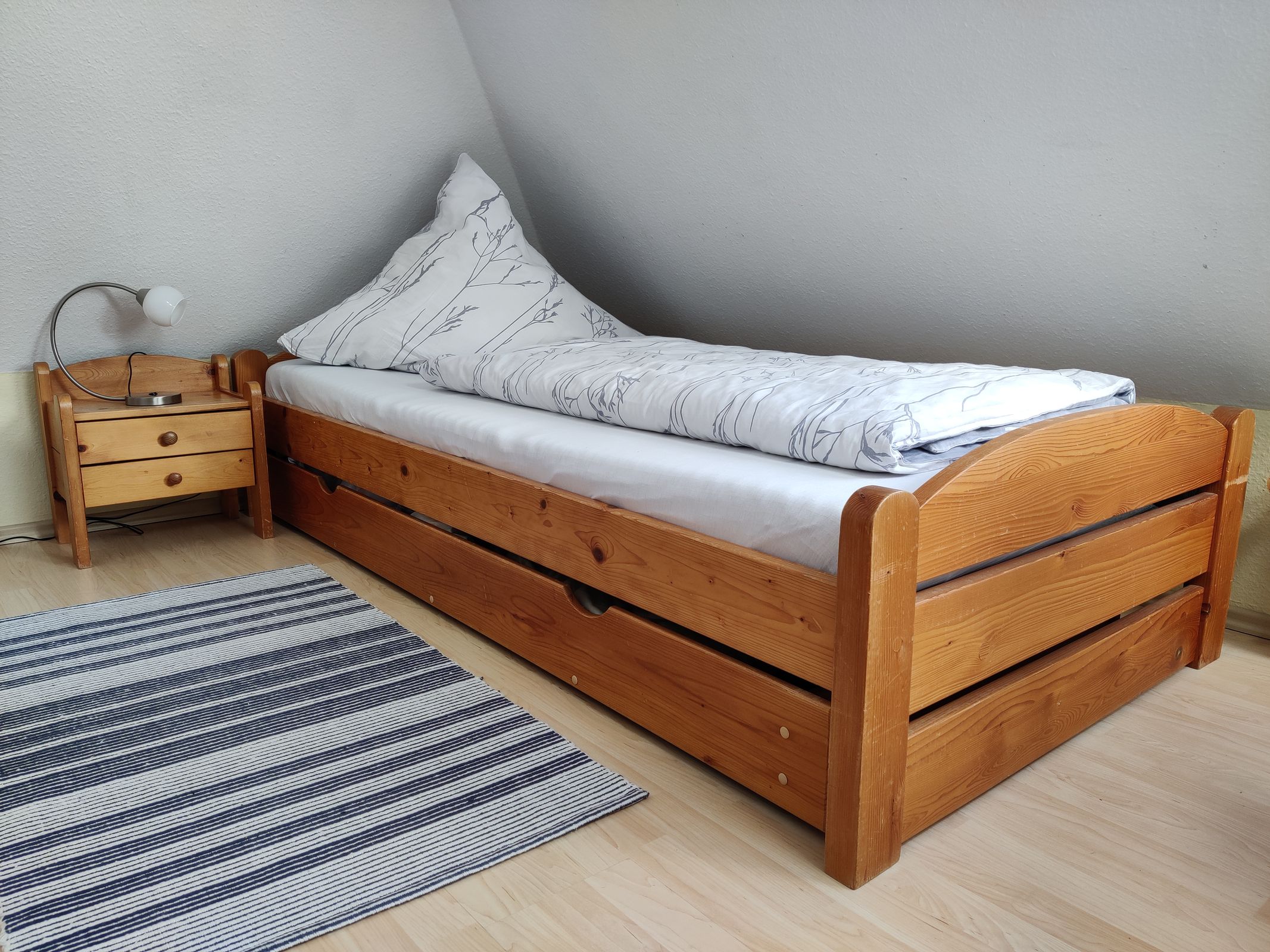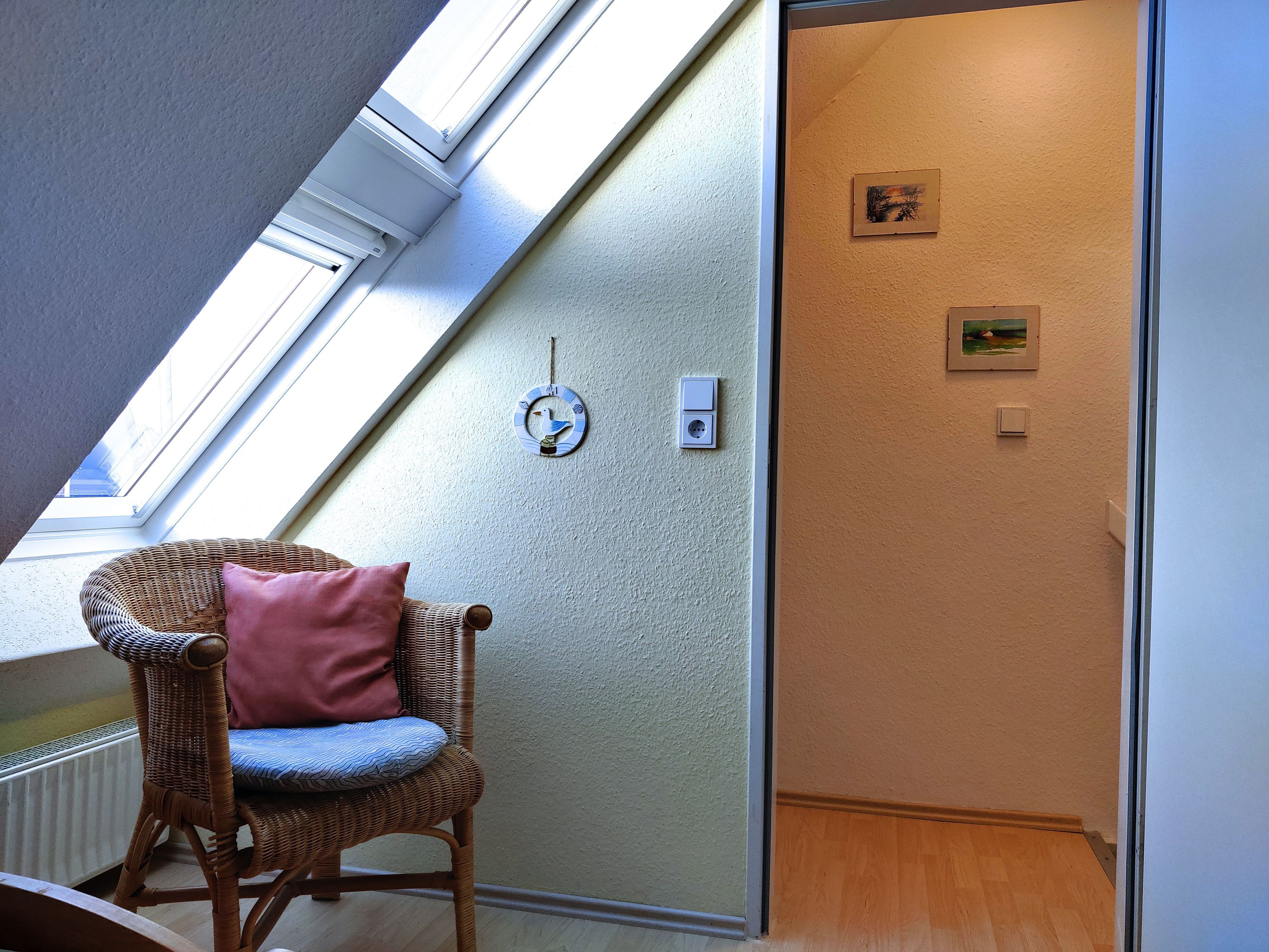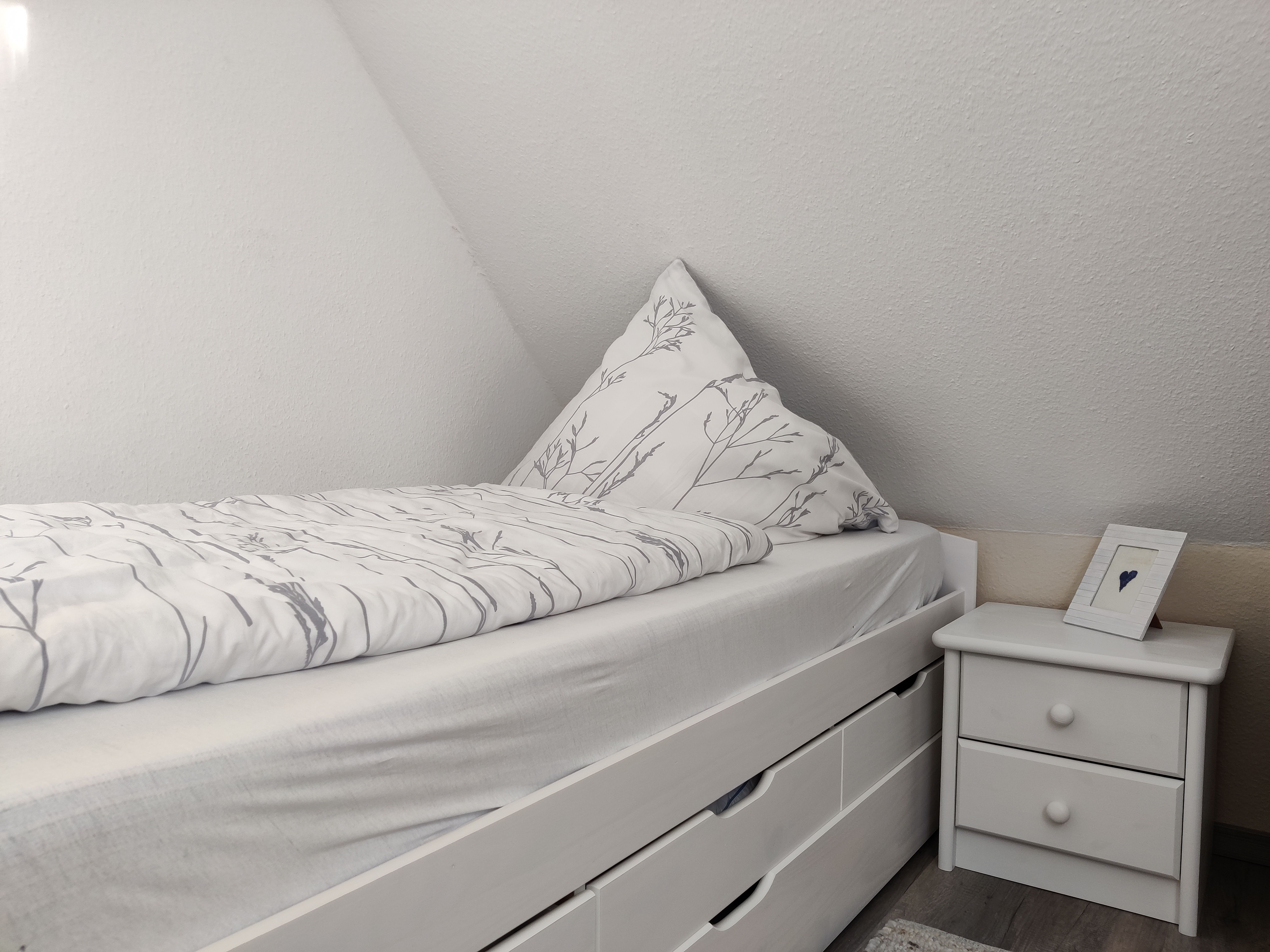 Ausgebauter Spitzboden mit zwei Einzelbetten (je 90cm x 200cm) sowie Kommode