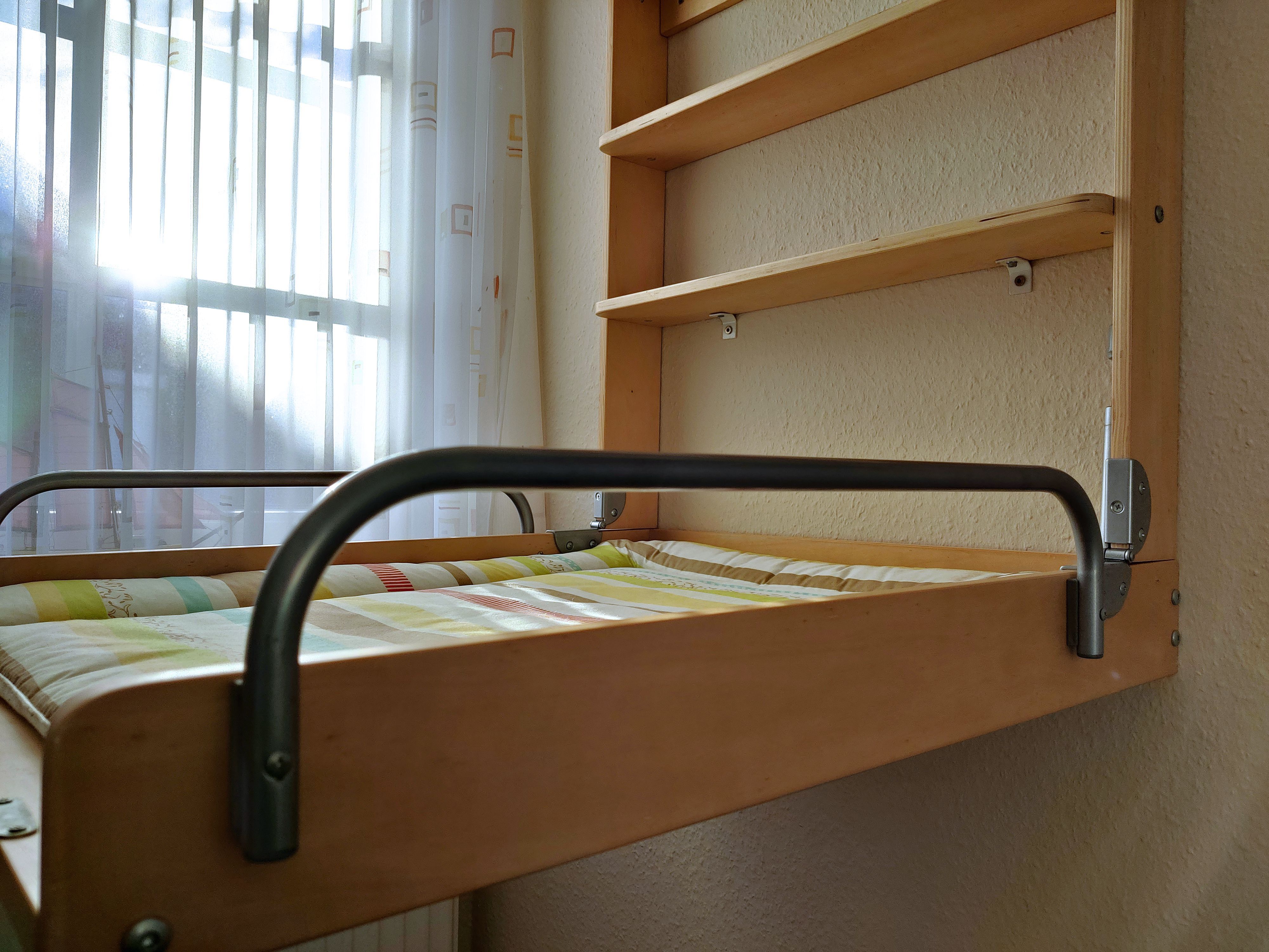 ein Schlafzimmer mit einem Einzelbett (90cm x 200cm), Wickeltisch und Kommode