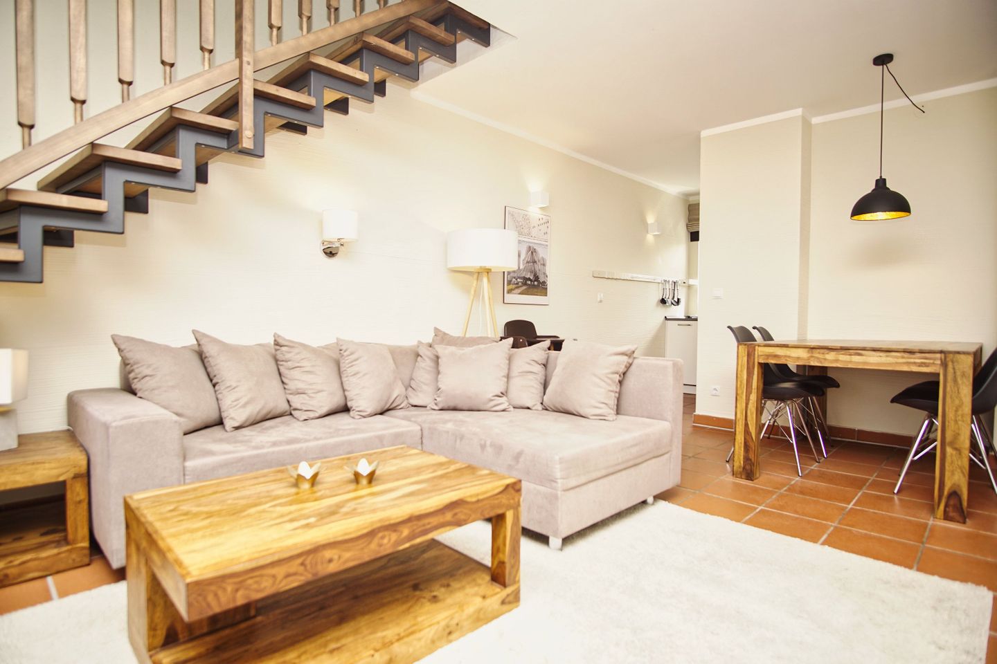 WOHNEN // Wohnraum mit bequemer Couch, Flachbildfernseher, Essbereich ++