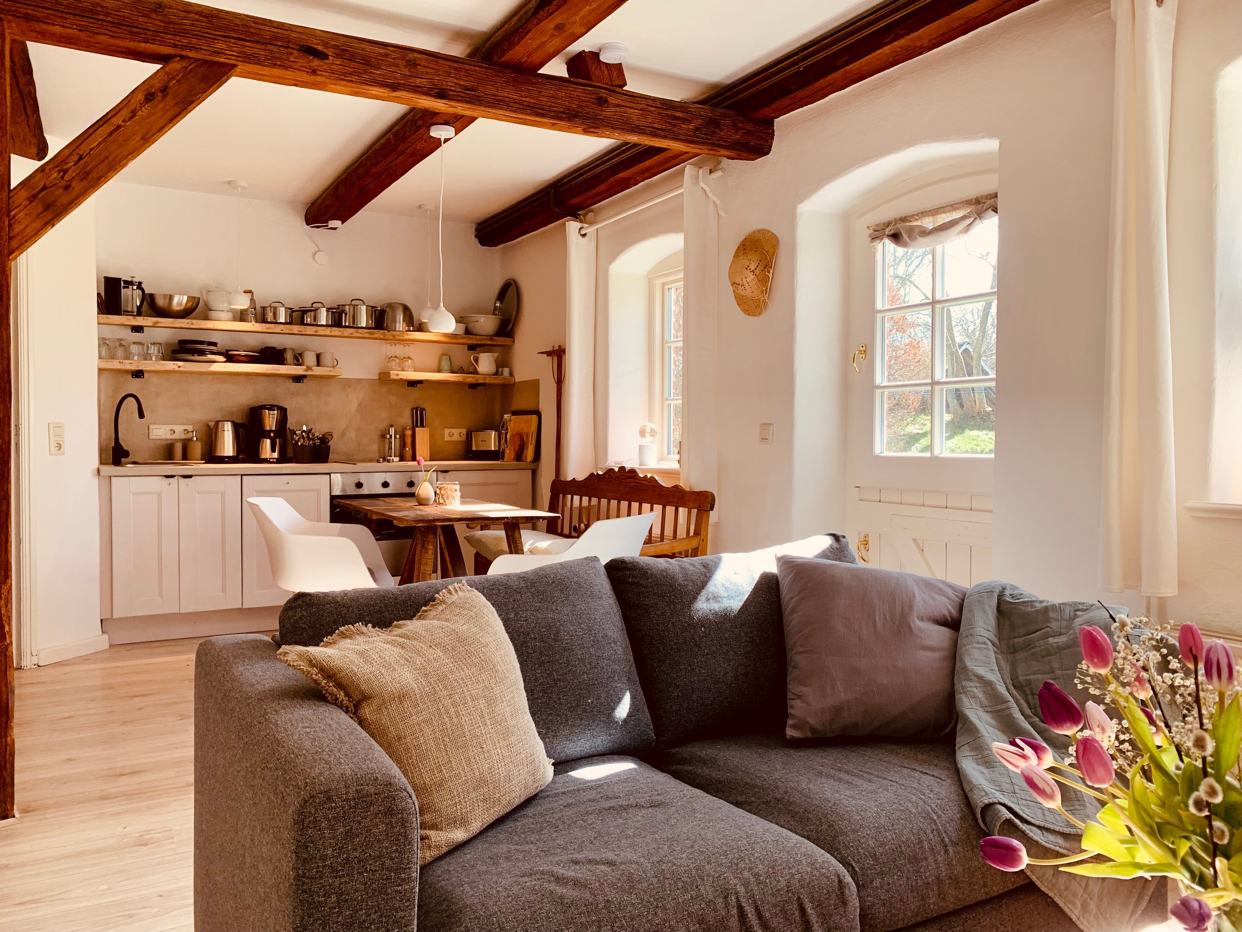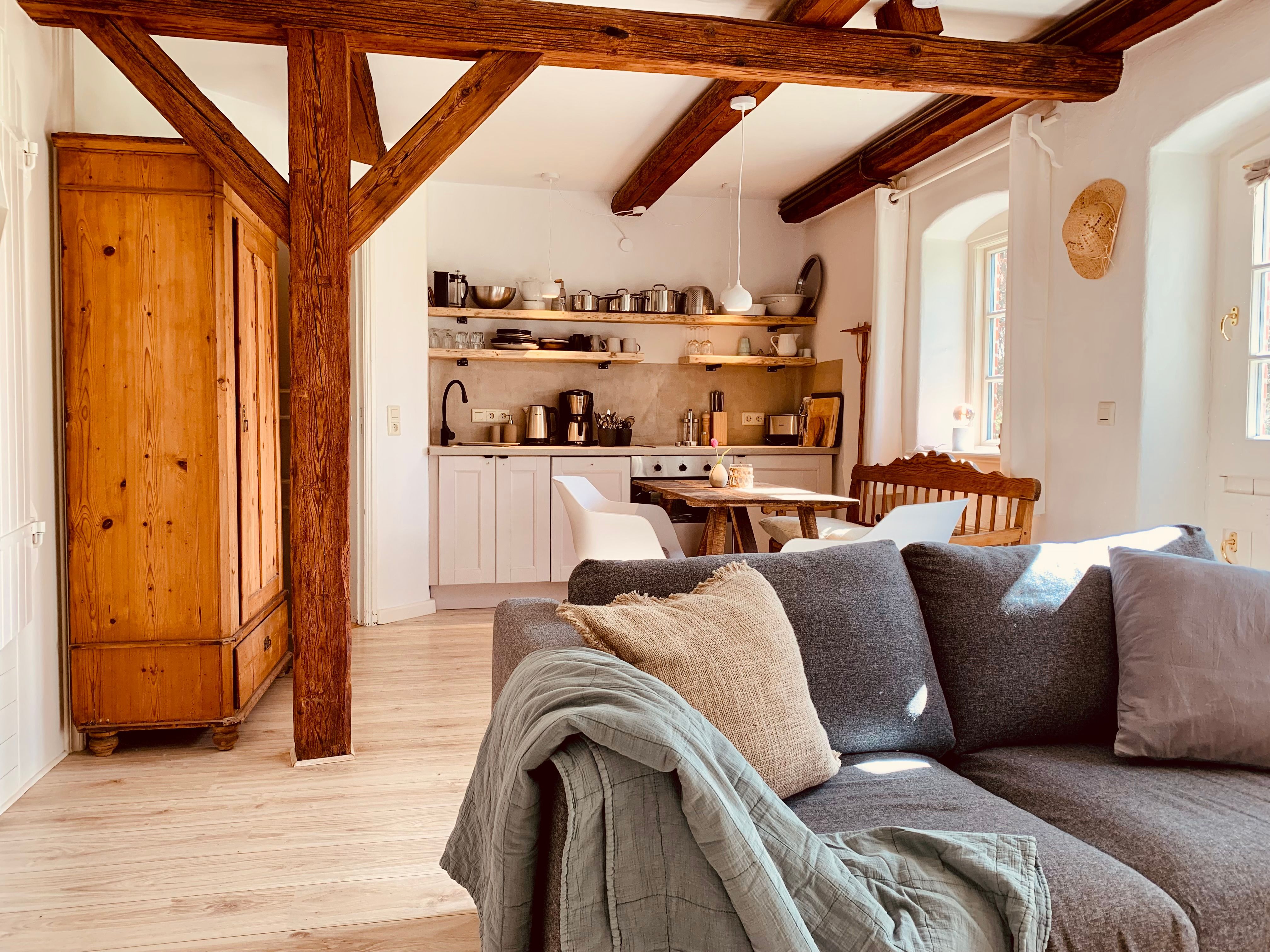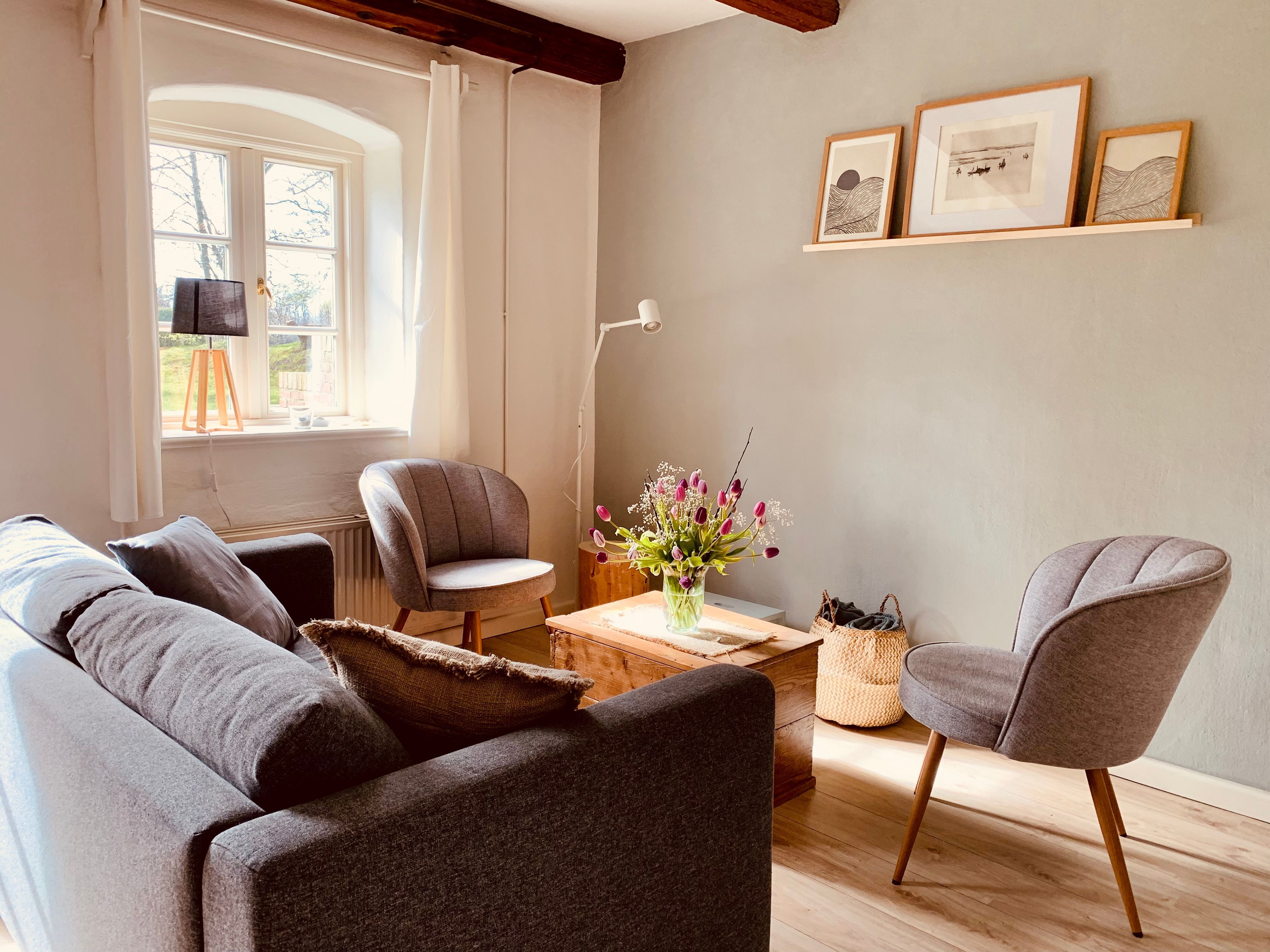 Die Ferienwohnung Een befindet sich im Erdgeschoss der ausgbauten Scheune und ist liebevoll in einem individuellen MIx aus Modern und Antik gestaltet.