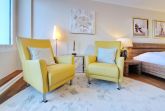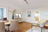 Penthouse-Wohnung in der 10. Etage im Haus Sylter Welle mit schönem Blick auf den Strand und das Meer. Hell und freundlich eingerichteter Wohnraum mit vorgelagerter West-Dachterrasse mit hochwertigen Balkonmöbeln von Kettler. Der Essplatz mit 4 Stühlen steht direkt am Fenster und es gibt eine bequeme Sitzgruppe (mit Schlafcouchfunktion) und einen Sessel. Eine Schrankwand bietet viel Stauraum für ihre persönlichen Dinge. Im Schlafzimmer gibt es ein Doppelbett, 2 Sessel und einen zusätzlichen Flachbildfernseher. Einen sehr großzügigen Kleiderschrank gibt es im Flur. Ein Badezimmer verfügt über eine Badewanne, das Gäste-Bad über eine Dusche. Sep. Einbauküche mit Backofen, Geschirrspüler, zusätzlicher Nespresso Maschine und Mikrowelle. Zur technischen Ausstattung gehört: ein Flachbildfernseher und ein Bluetoothanlage mit CD Spieler von Sony. Das freie WLAN Netzwerk (WEG Haus Sylter Welle - Passwortfrei - ohne Gewähr) steht ihnen kostenfrei zur Verfügung. Das Penthouse ist nur über eine Treppe erreichbar. Der Aufzug geht bis zur 9. Etage. Wohnungsgröße: ca. 60 m².