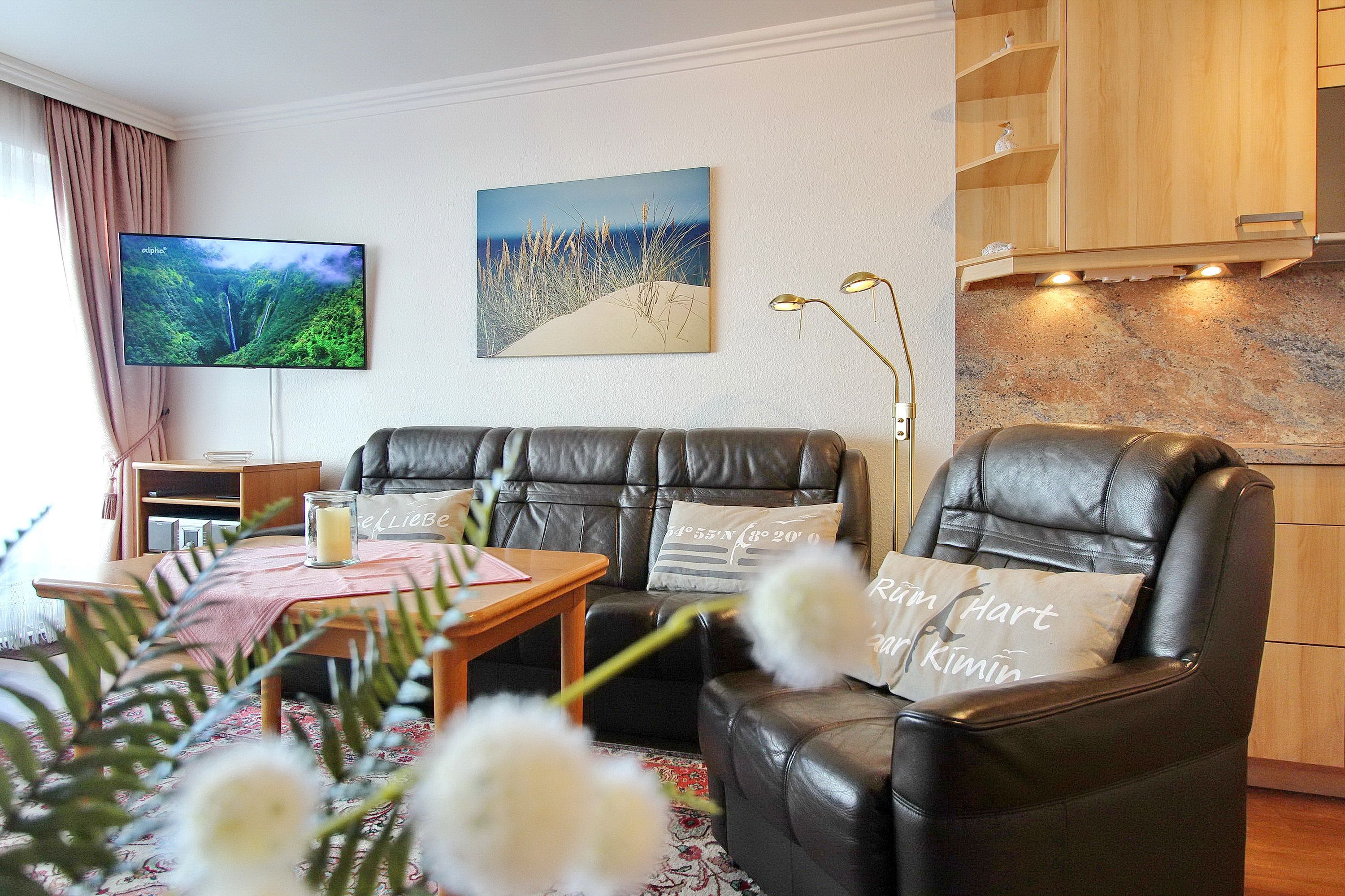Einzimmerwohnung im Haus Westerhörn in der 1. Etage in direkter Strandlage. Nur wenige Schritte trennen Sie von der Promenade in Westerland und dem Meer. Der kombinierte Wohn-/Schlafraum mit vorgelagertem Westbalkon (Balkonmöbel mit Auflagen sind vorhanden) verfügt über ein Doppelschrankbett, 2 Fernsehsessel und eine Schrankwand mit viel Stauraum. Die offene, moderne Küchenzeile mit Mikrowelle, Ceranfeld und Spülmaschine bietet ihnen alles um sich selbst zu versorgen. In der Wohnung wurde Laminatfußboden verlegt. Im Badezimmer gibt es eine Dusche. Zur technischen Ausstattung der Wohnung gehört: ein Smart-TV und ein Radio. Den kostenfreien WLAN Zugang des Eigentümers können Sie nutzen (die Zugangsdaten finden Sie im App. - ohne Gewähr). Diese Nichtraucherwohnung hat eine Größe von ca. 30 m².