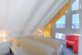 Beide Schlafzimmer (Doppelbett und Einzelbetten) sowie das Duschbad befinden sich oberhalb des Wohnzimmers. Beide Räume sind durch eine gut begehbare Zimmerwendeltreppe miteinander verbunden.