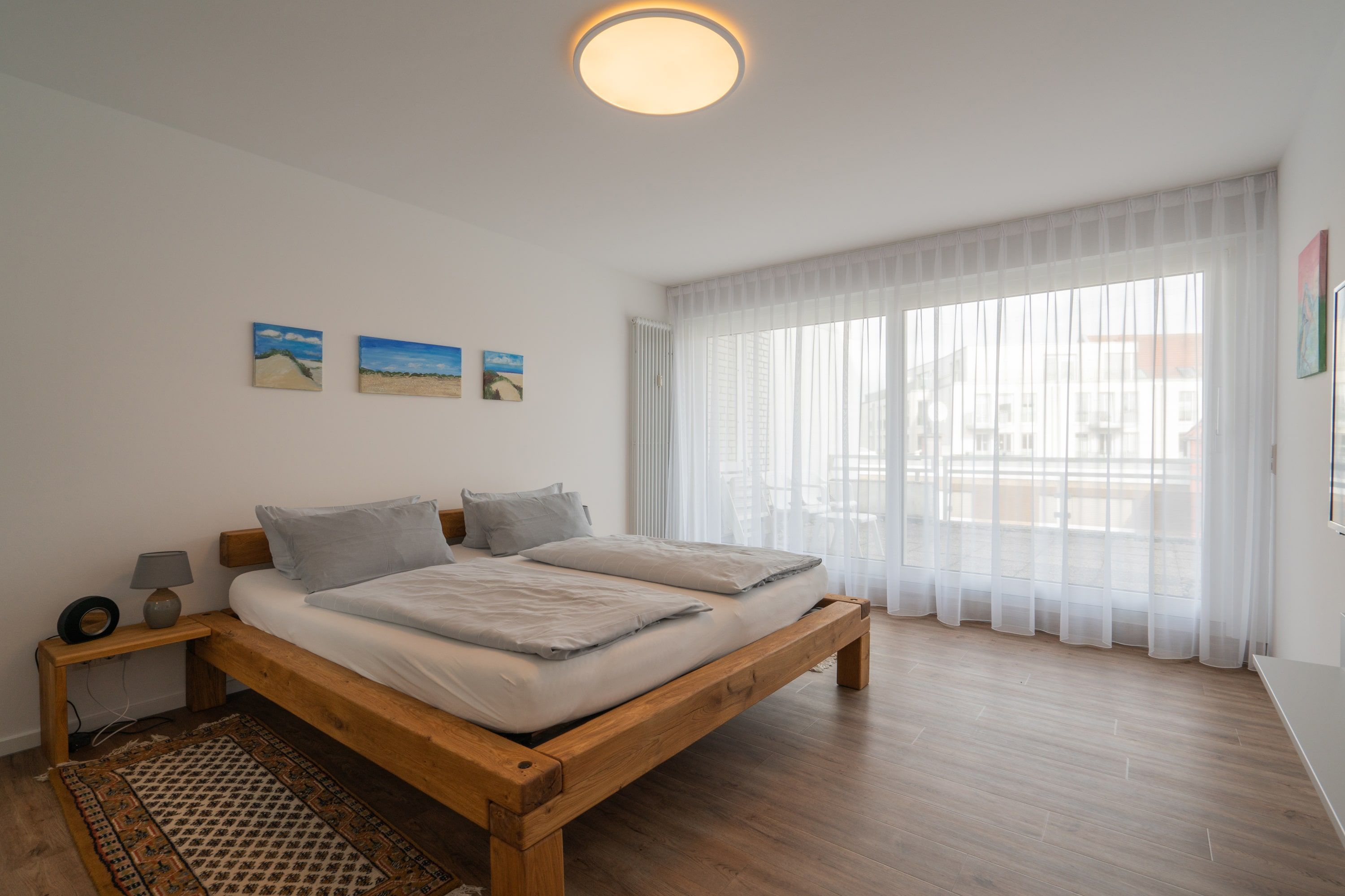 Vom Schlafzimmer aus haben Sie Zugang zum zweiten Balkon des Apartments - Richtung Stadt gelegen.