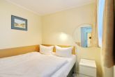 Hell und freundlich eingerichtete Zweizimmerwohnung in der 1. Etage im Haus Eydum mit Balkon zur Westseite. Das Wohnzimmer verfügt über eine Ledercouch und einen Sessel mit Fußhocker, einen Essplatz mit 4 Stühlen , eine Schrankwand mit viel Stauraum und zwei Einzelschrankbetten. Im Schlafzimmer gibt es ein Boxspringbett. In der offenen Küchenzeile mit Mikrowelle und Geschirrspüle können sie sich selbst verpflegen. Das Badezimmer hat eine Dusche. Zur technischen Ausstattung dieser Wohnung gehört: ein Flachbildfernseher, ein Radio mit CD Spieler, sowie ein kostenfreier WLAN Internetzugang (Passwort steht auf der Rückseite des Routers). Nichtraucherwohnung. Wohnungsgröße ca. 45 m².