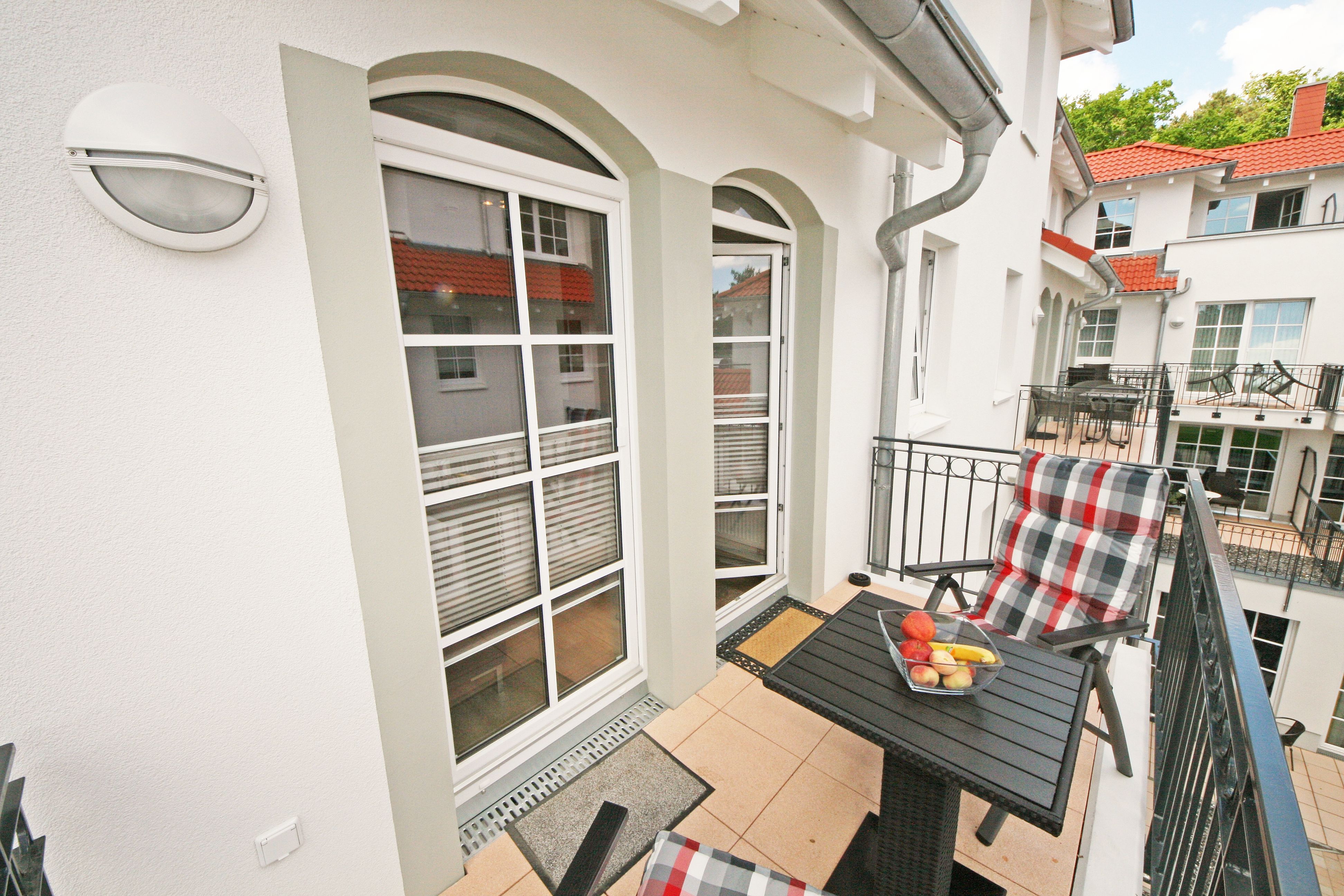 Unmittelbar am Kurpark des Ostseebades Baabe, umgeben von Kiefern befindet sich die neue Appartementanlage Meeresblick. Die Ferienanlage besteht aus 3 freistehenden Häusern und ist nur ca. 80 Meter vom feinen Sandstrand entfernt. An die hiesige Bäderarchitektur angelehnt fügt sich die Meeresblickanlage wohltuend in die Umgebung ein. Die Ferienwohnungen verfügen über einen hohen Komfort und lassen Ihren Urlaubstraum wahr werden. Im Haupthaus befindet sich ein Wellnessbereich mit Innenpool, Sauna und Ruheraum (inklusive) der zur Entspannung einlädt. Eine hauseigene Tiefgarage sorgt dafür, dass Ihr PKW sicher untergebracht ist. Cafés und Restaurants laden in der Anlage zum Verweilen ein. Ein weiteres Highlight ist der Müther Schalenbau (Restaurant Inselparadies Baabe), welches saniert, restauriert und in die Meeresblickanlage liebevoll integriert wurde. Die Wohnung (A 2.05) befindet sich im Haupthaus A im 2. Obergeschoss und verfügt über einen Balkon mit Blick Richtung Inselparadies und etwas Meerblick.