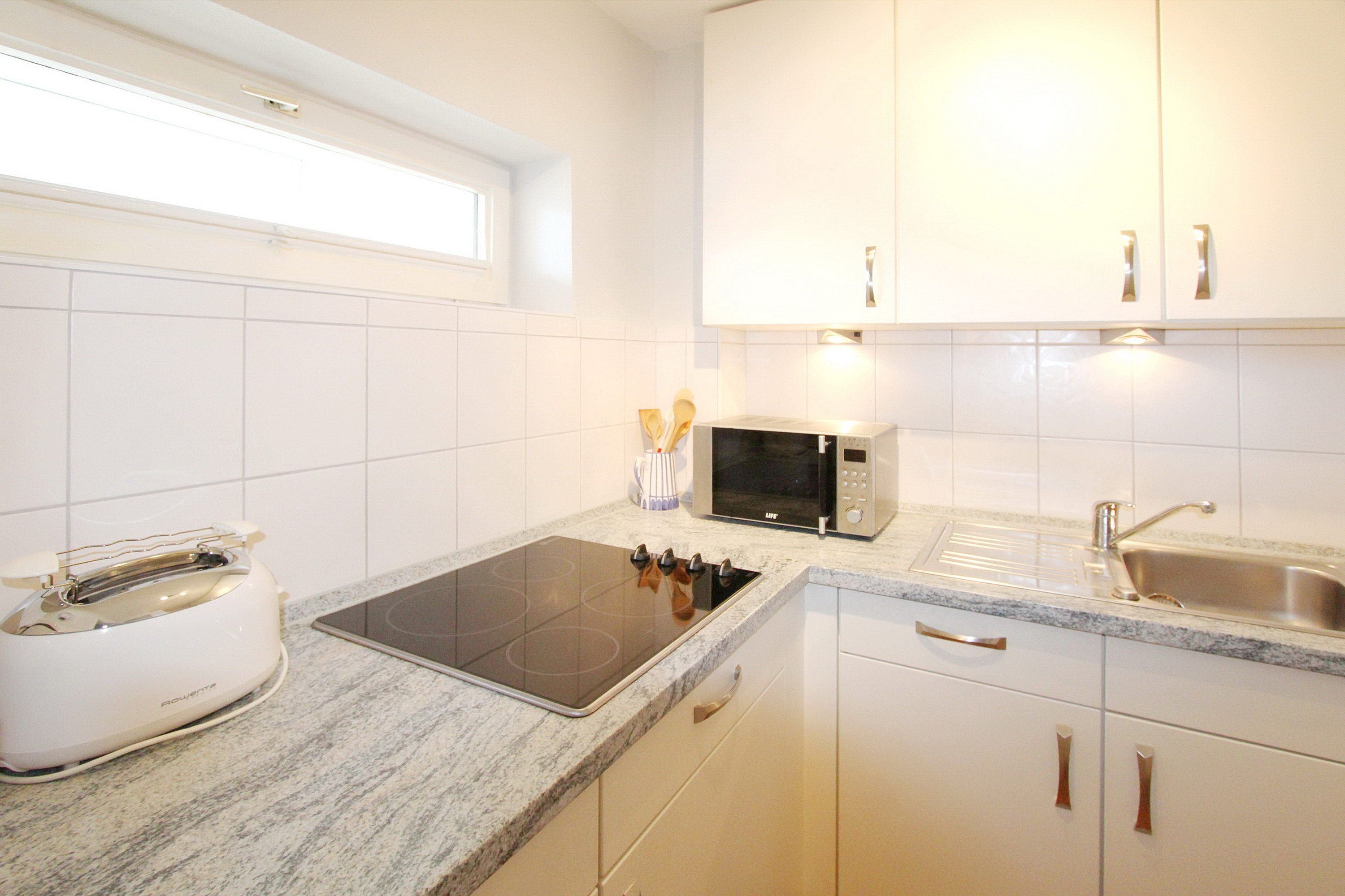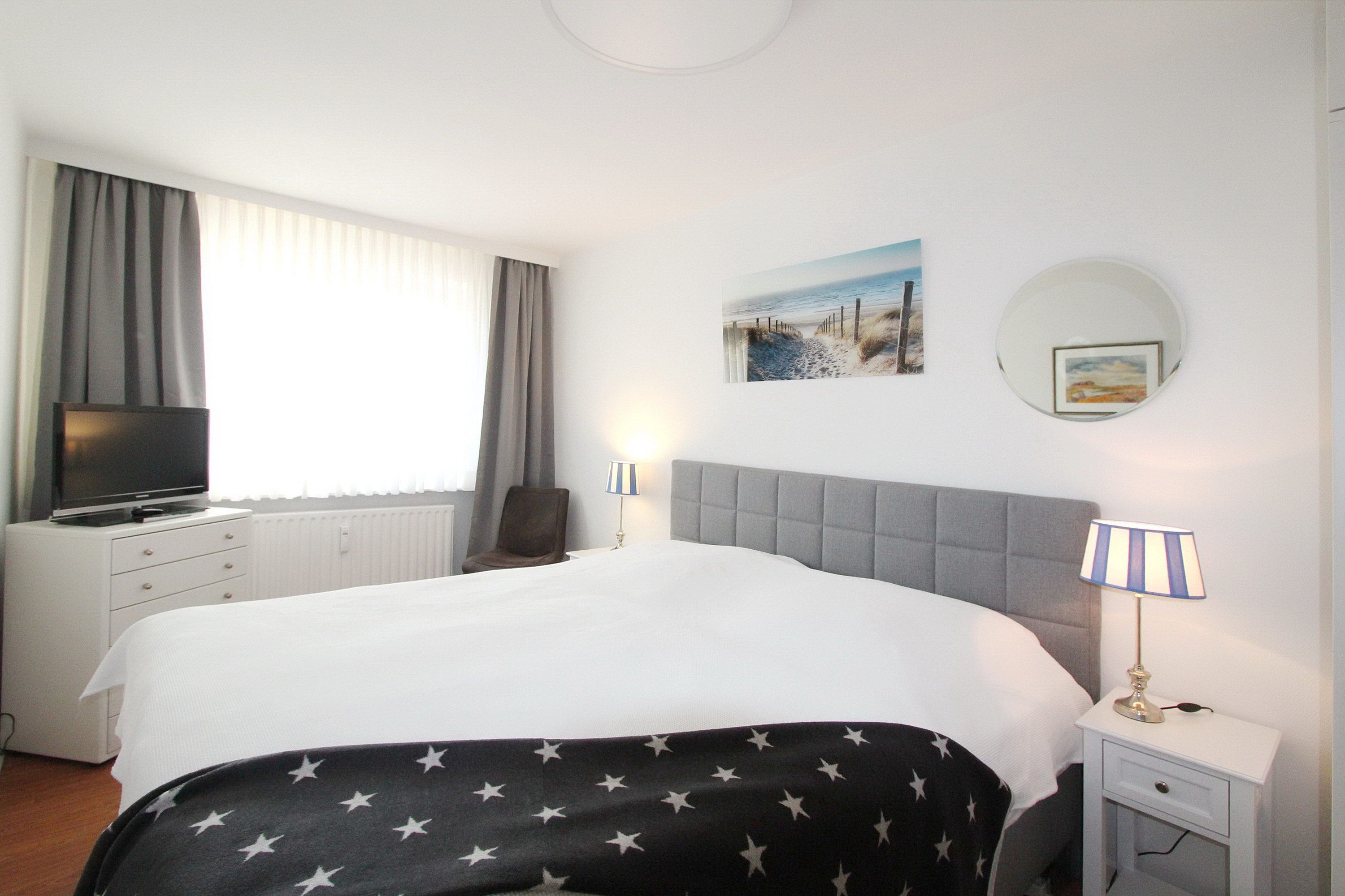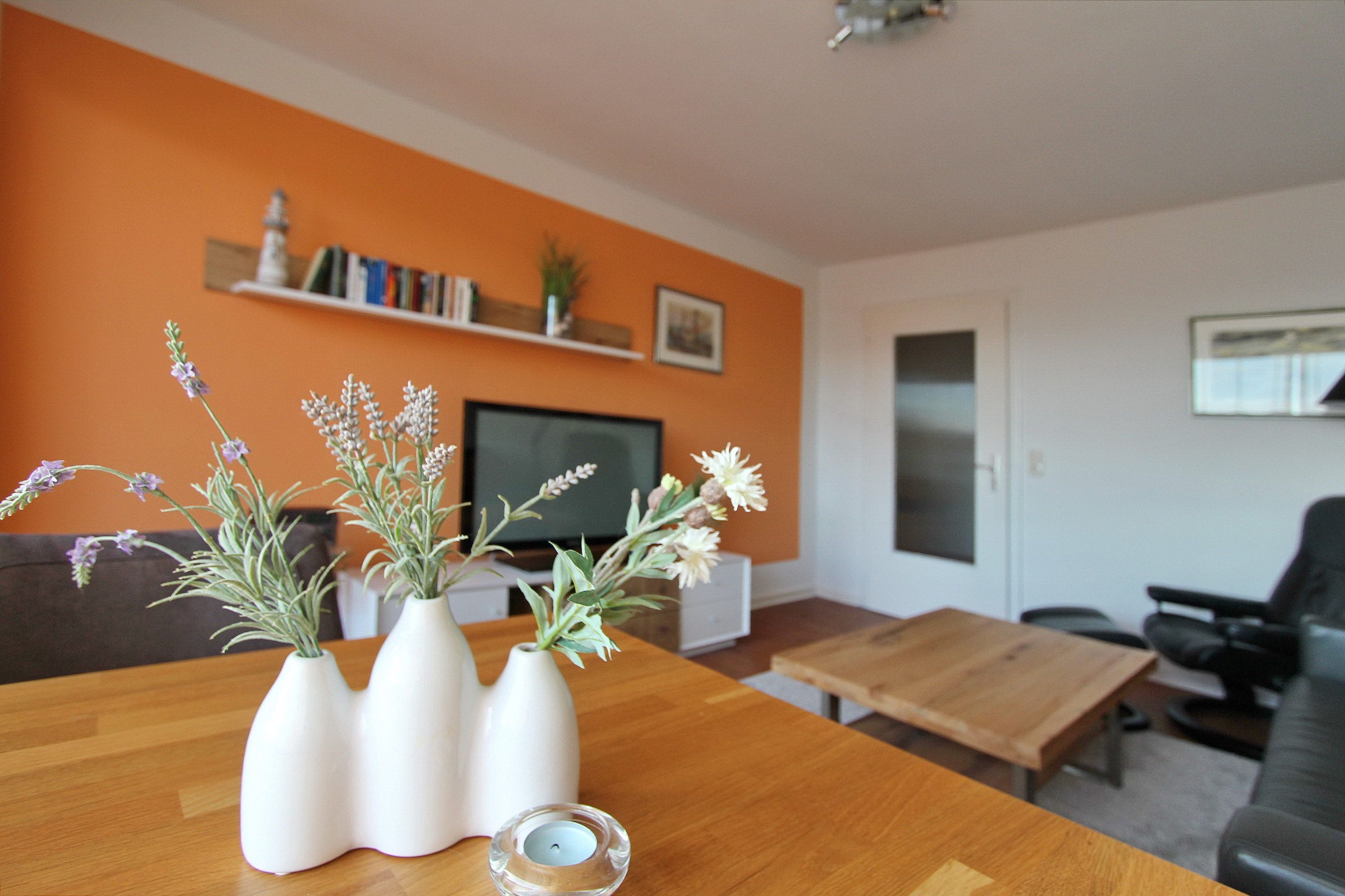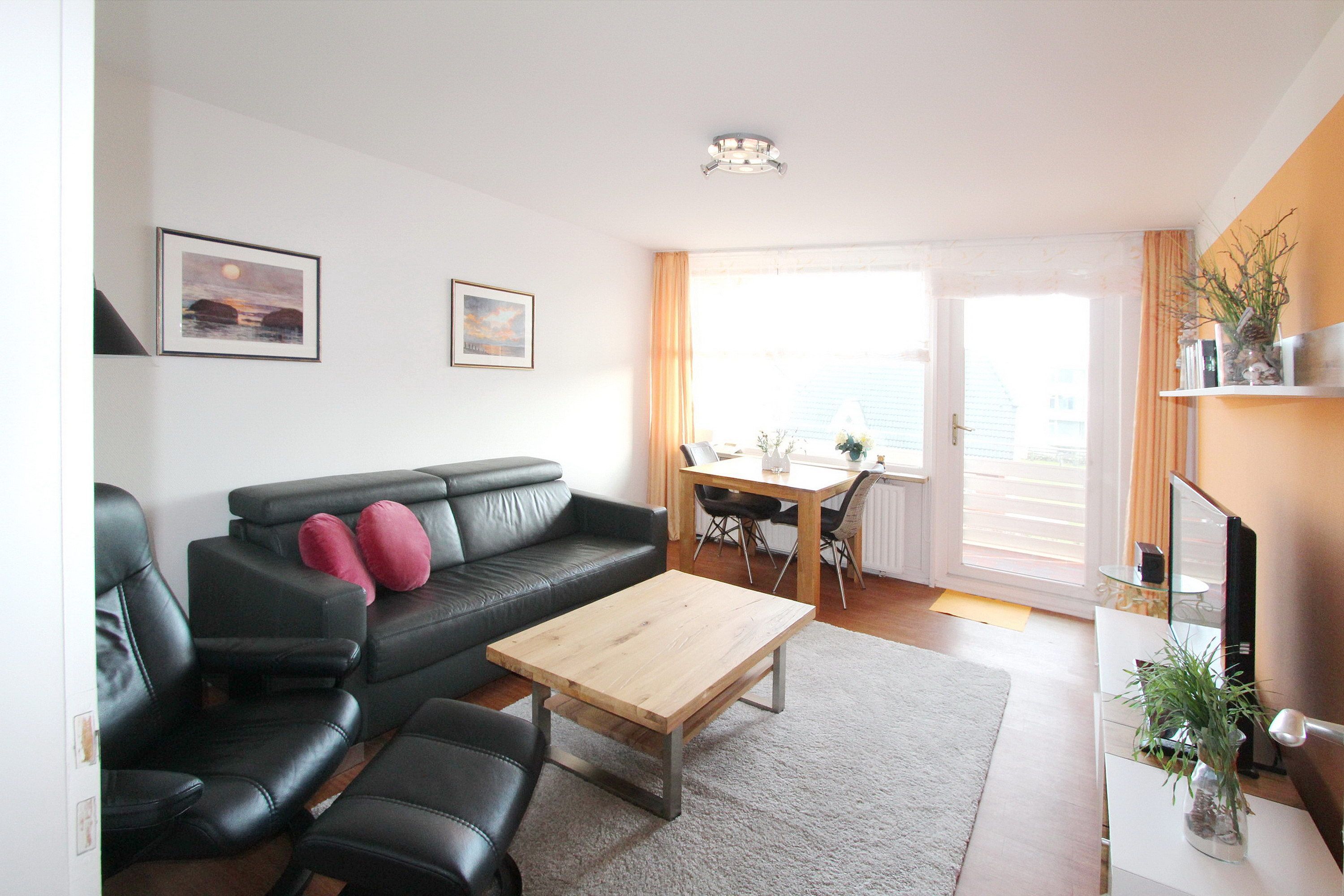 Hell und freundlich eingerichtete Nichtraucherwohnung in der 1. Etage im Haus Eidum, mitten im Herzen von Westerland gelegen. Im neu möblierten Wohnzimmer finden sie eine Ledercouch und einen Fernsehsessel der Marke Stressless, der höchsten Sitzkomfort bietet, vor. Der Essplatz mit 2 Stühlen befindet sich ebenfalls in diesem Raum, direkt am Fenster. Die Sonne genießen Sie auf dem Südbalkon auf bequemen Balkonmöbeln. In der ganzen Wohnung wurde Designfussboden verlegt, der nicht nur optisch gut aussieht, sondern die Wohnung auch für Hausstauballergiker geeignet macht. Im Schlafzimmer gibt es ein modernes Boxspringbett und einen zusätzlichen Flachbildfernseher. Das Tageslichtbadezimmer hat eine Dusche und die separate Küche verfügt über eine Spülmaschine und eine Mikrowellen/Backkombination. Hier finden sie alles vor um sich selbst zu verpflegen. Zur technischen Ausstattung dieser Wohnung gehören zwei Flachbildfernseher, ein Telefon sowie kostenfreies WLAN. Die Zugangsdaten befinden sich auf der Rückseite des Routers. Die Nutzung der Garage Nr. 107 ist inklusive (bitte Aushang beachten). Haustiere sind in dieser Wohnung herzlich willkommen. Wohnungsgröße: ca. 50 m².